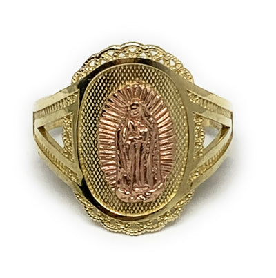 - Tri-Color Yellow & Rose Gold Virgin Mary Ring 10k solid gold guaranteed.