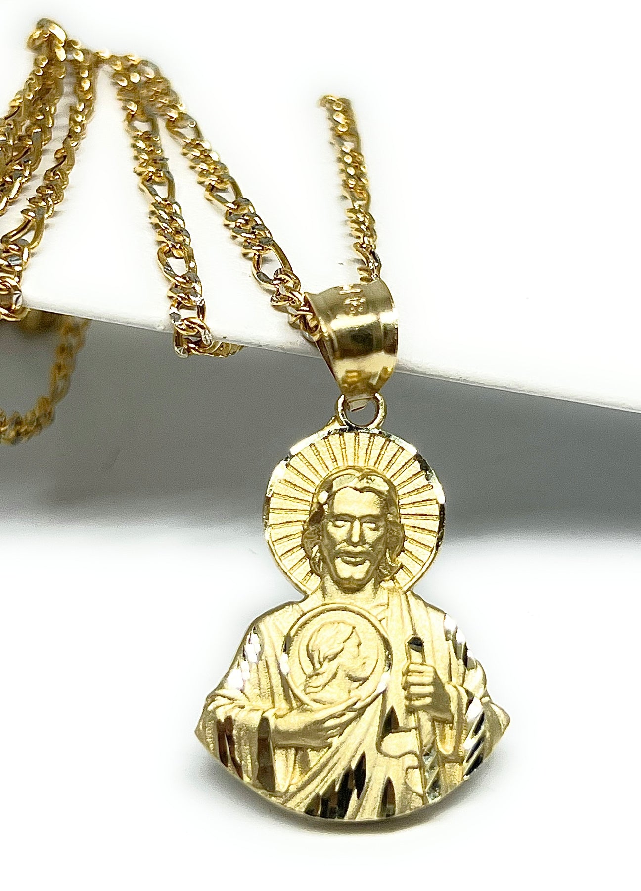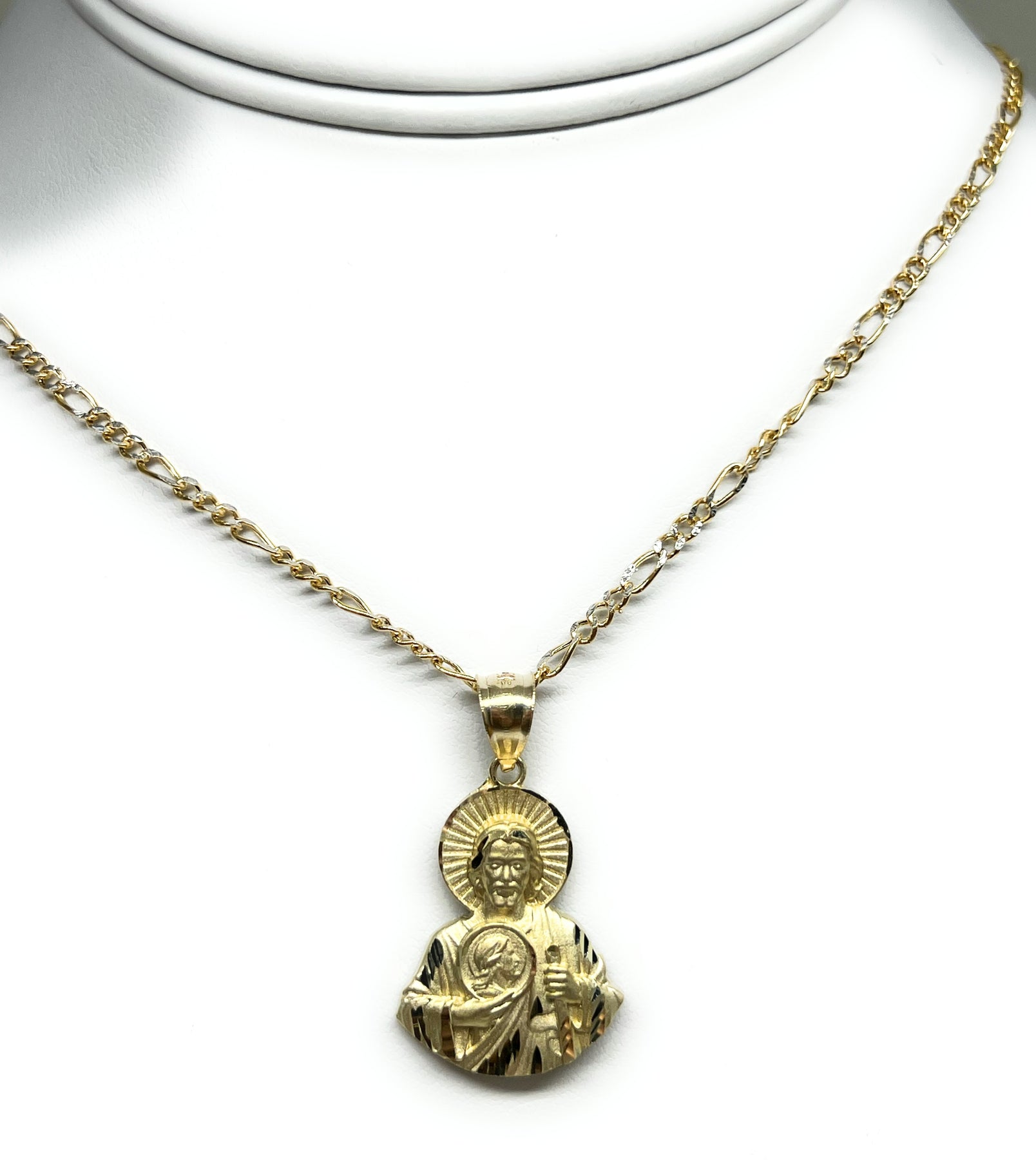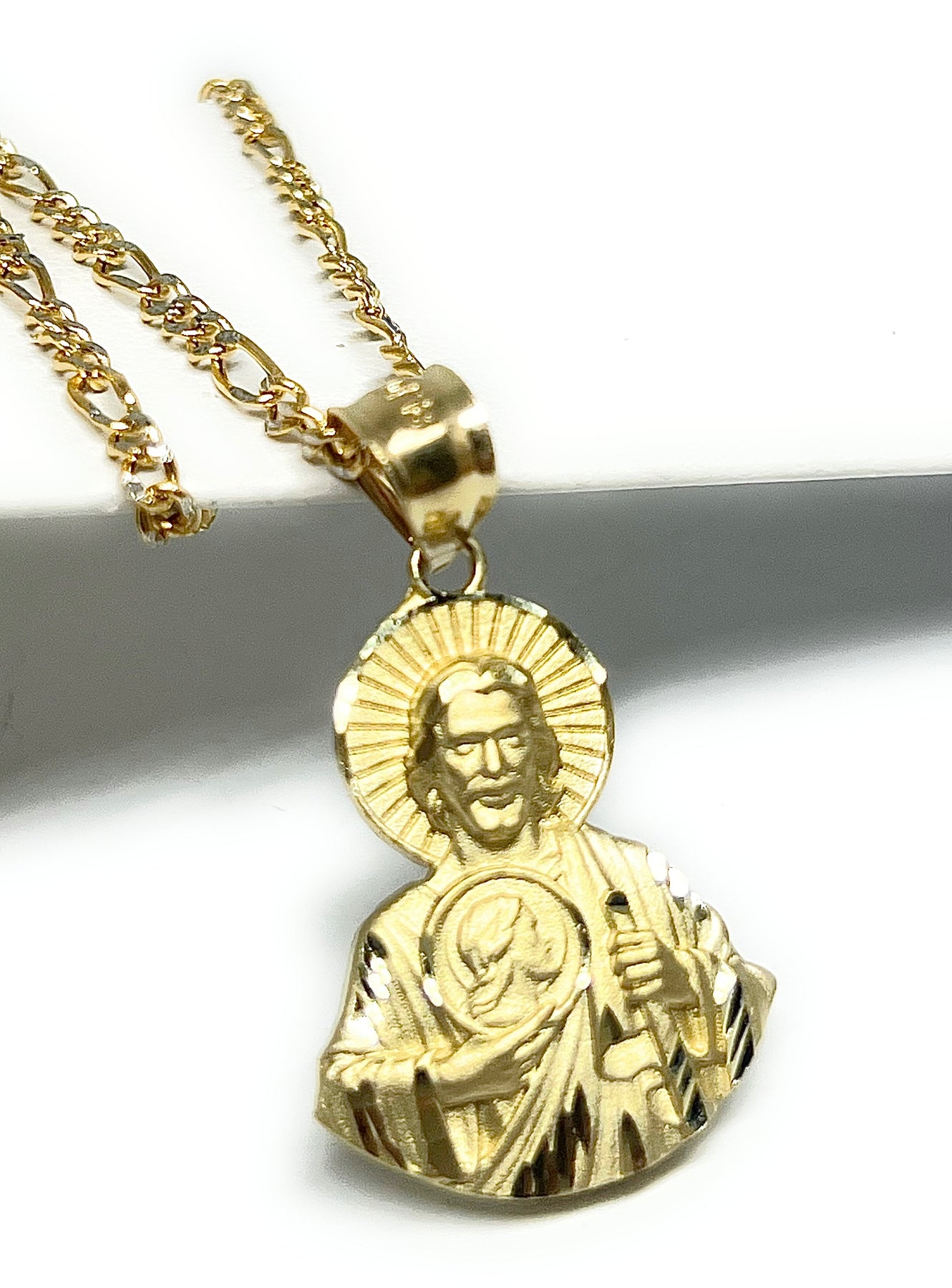 10k Solid Gold Yellow Saan Judas Saaint Jude HALF BODY Pendant Figaro Chain