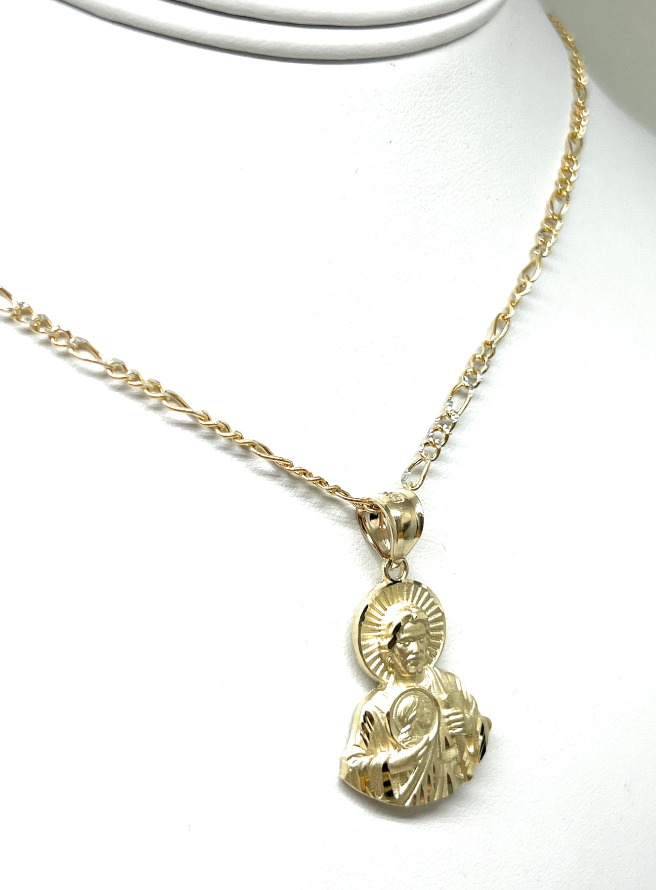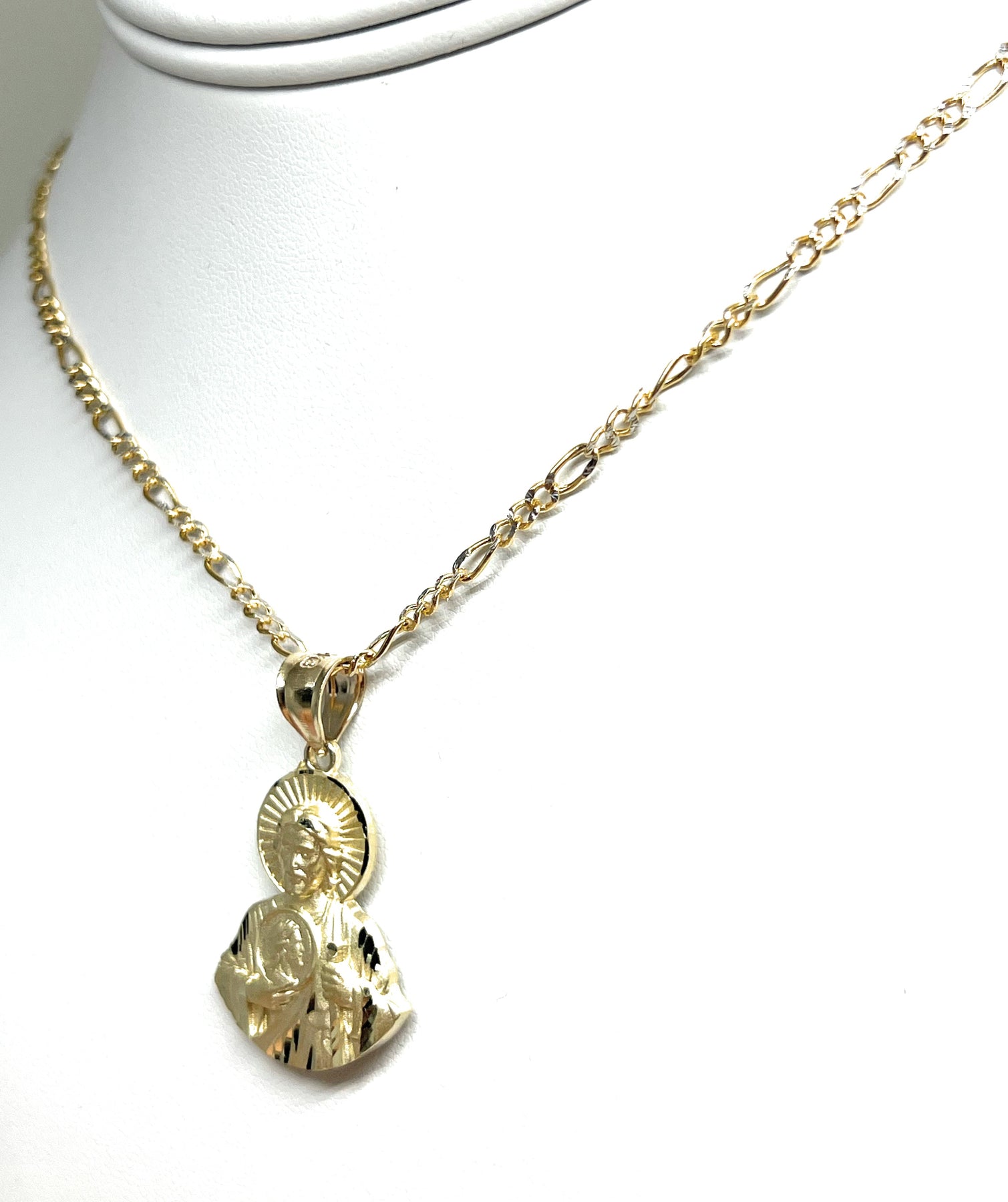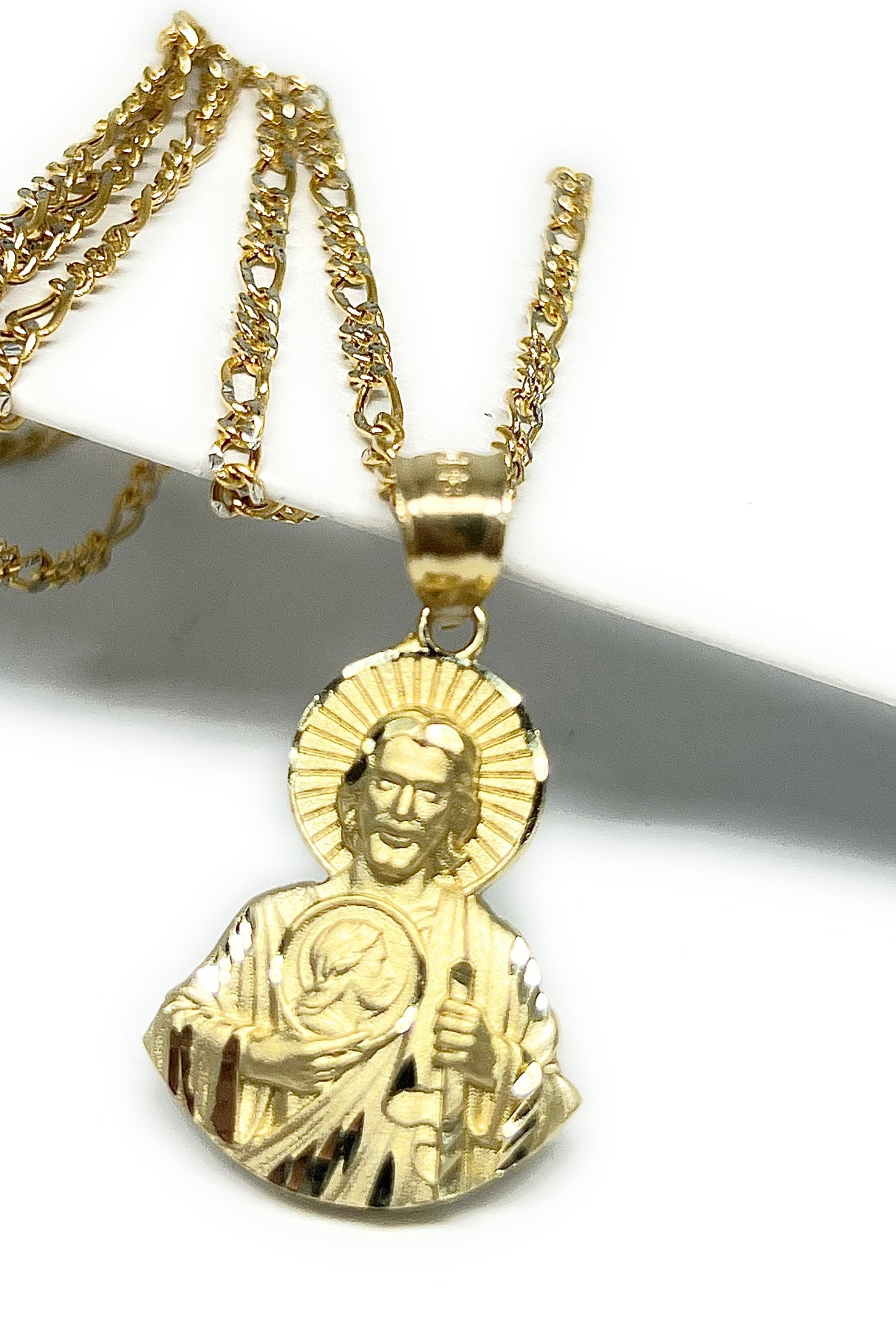 10k Solid Gold Yellow Saan Judas Saaint Jude HALF BODY Pendant Figaro Chain