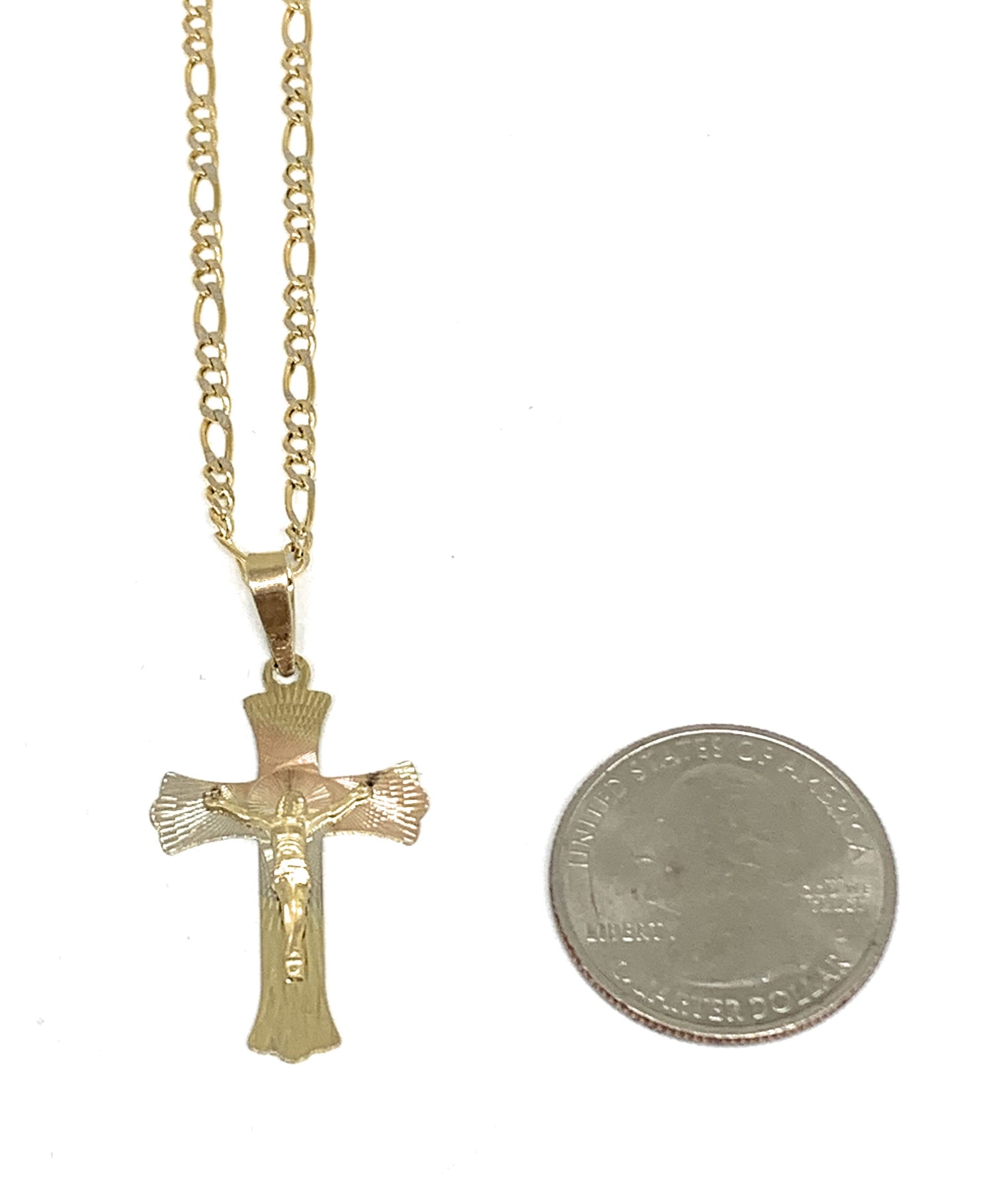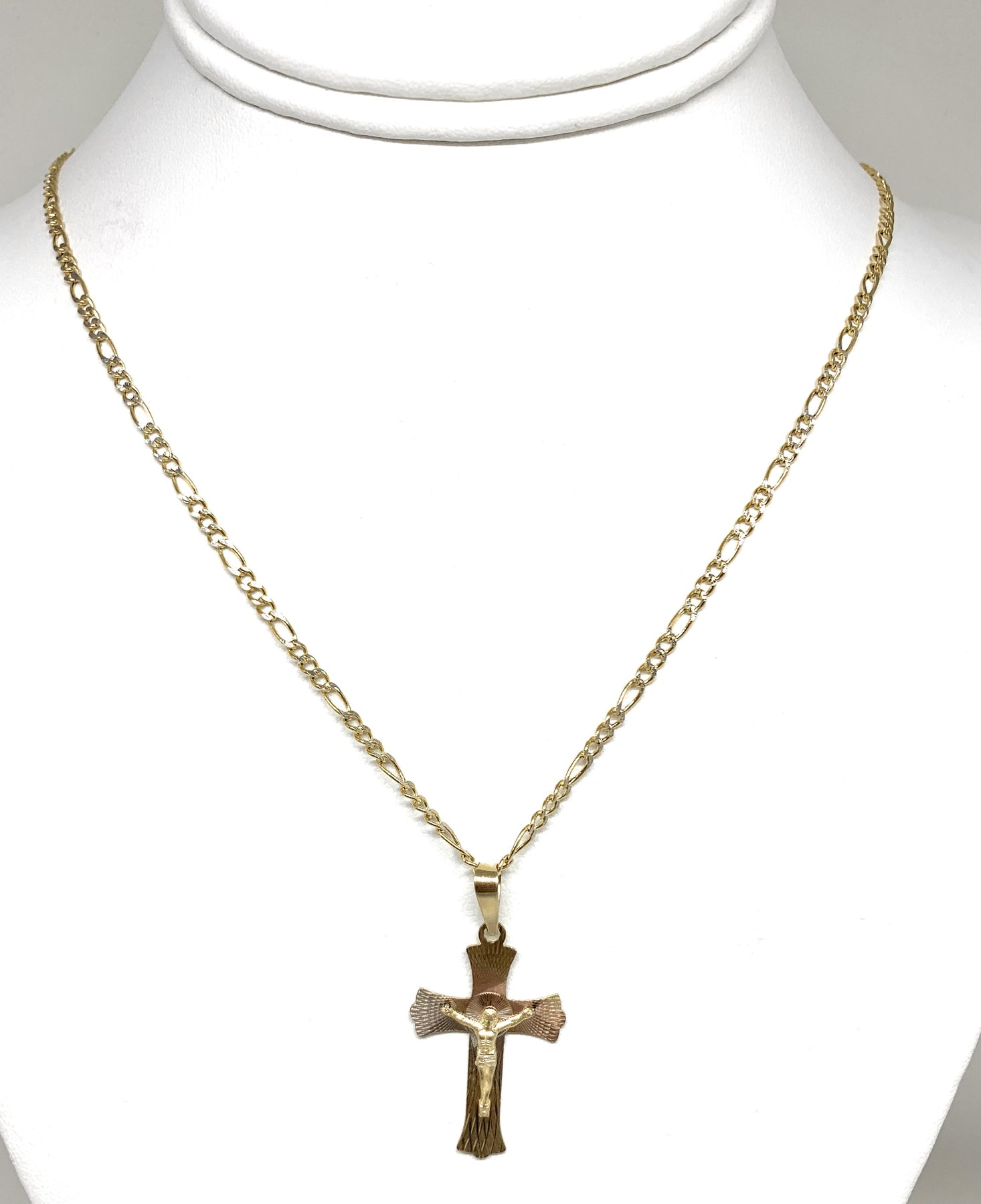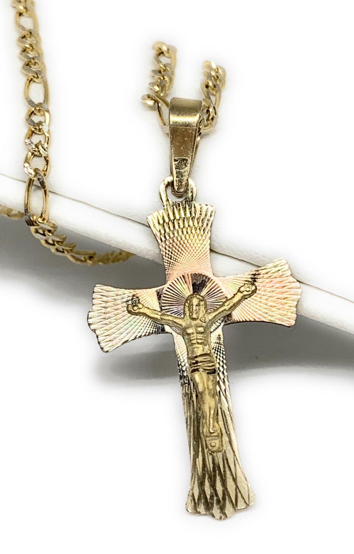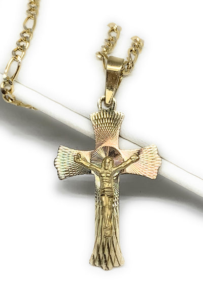10k Solid Gold Yellow Tri-Color Jesus Cross Crucifix Pendant Necklace