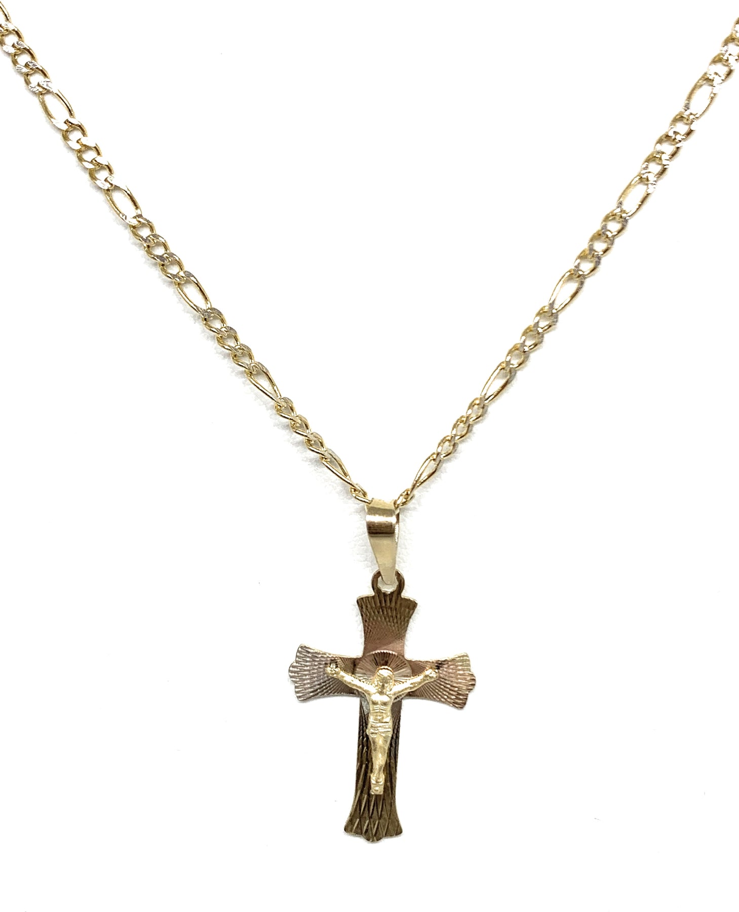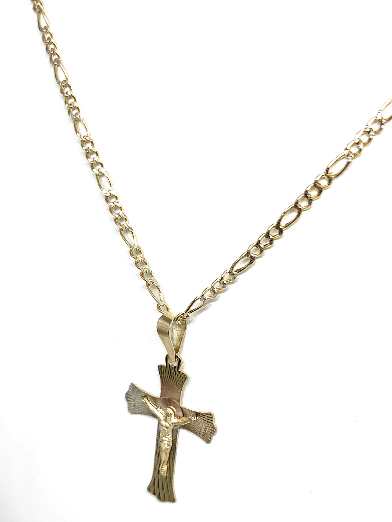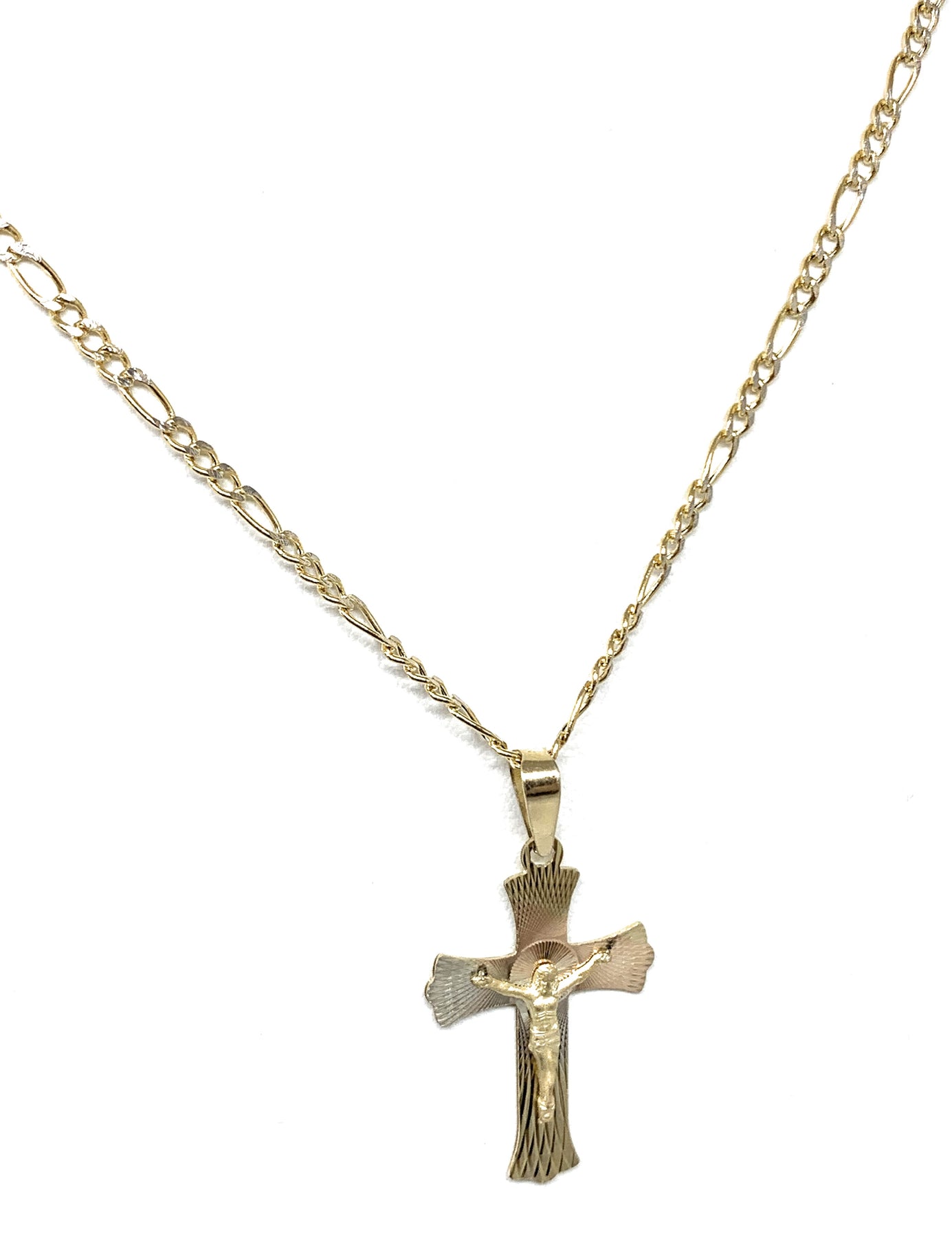 10k Solid Gold Yellow Tri-Color Jesus Cross Crucifix Pendant Necklace
