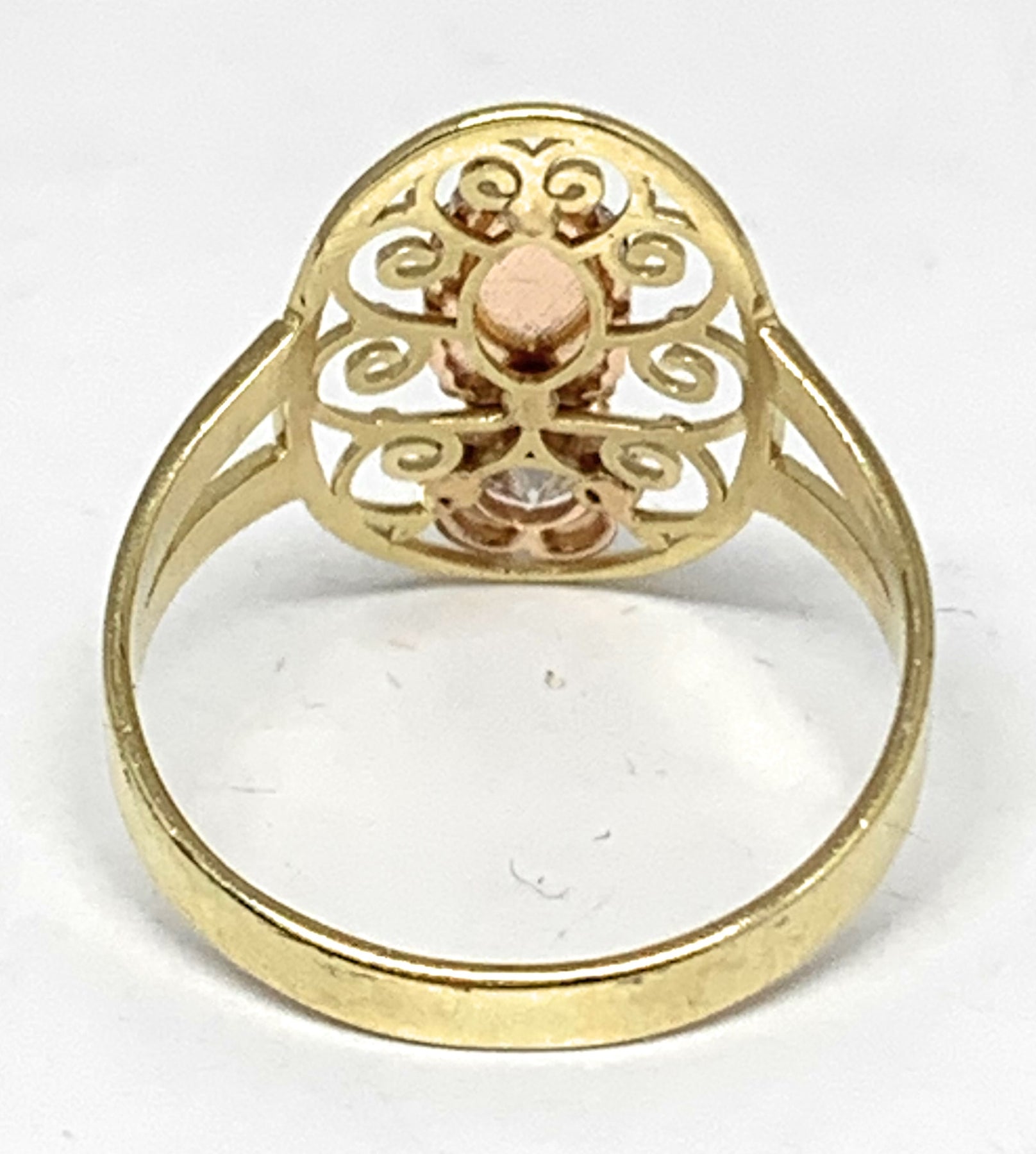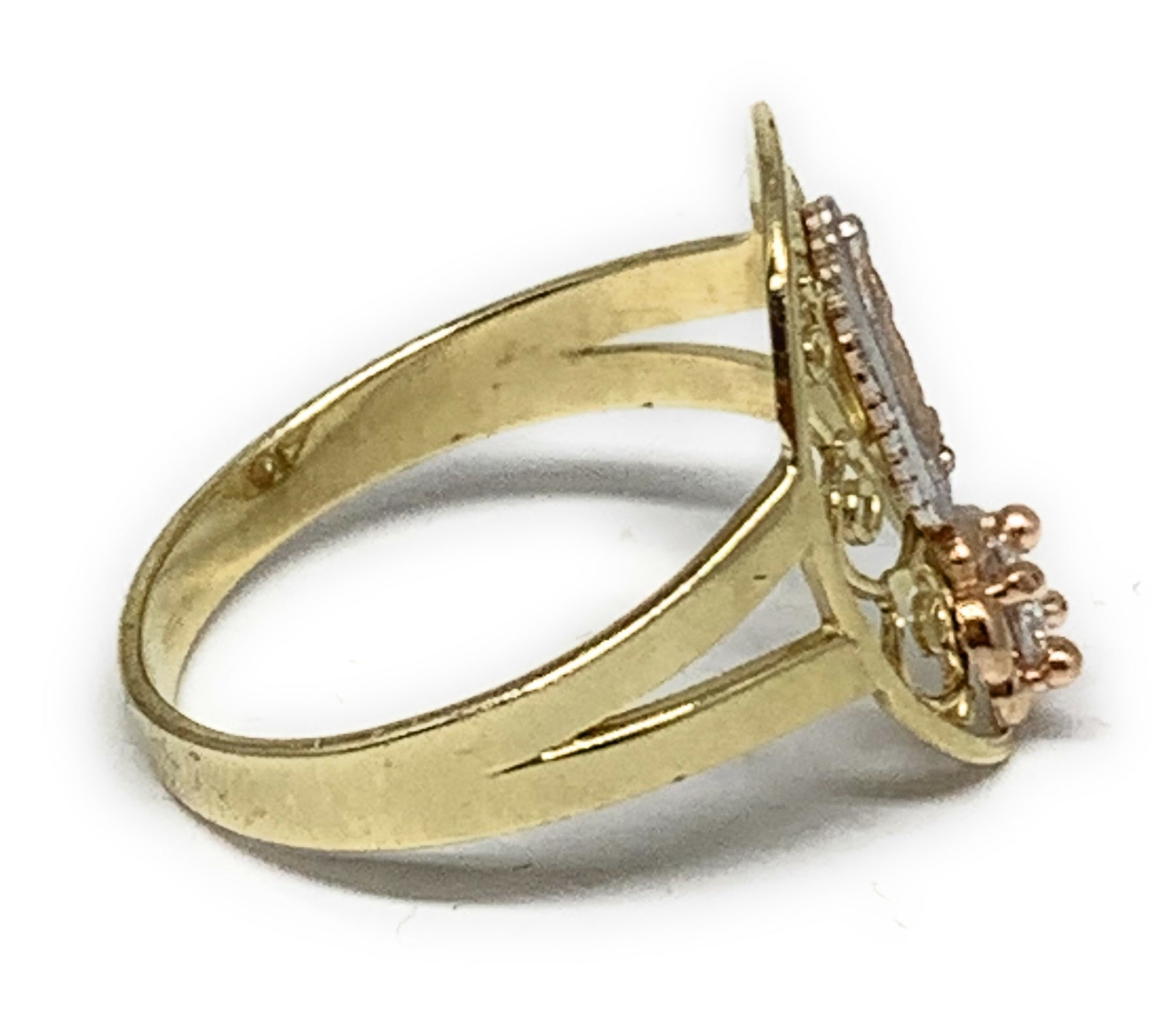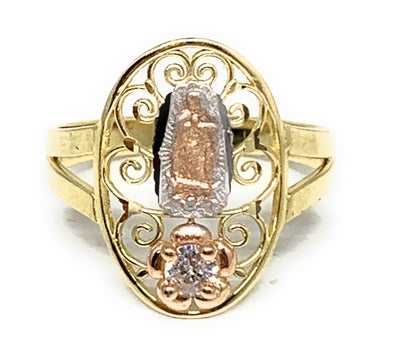 10k Solid Gold Yellow Tri-Color Virrgin Mary CZ Filigran Flower Ring