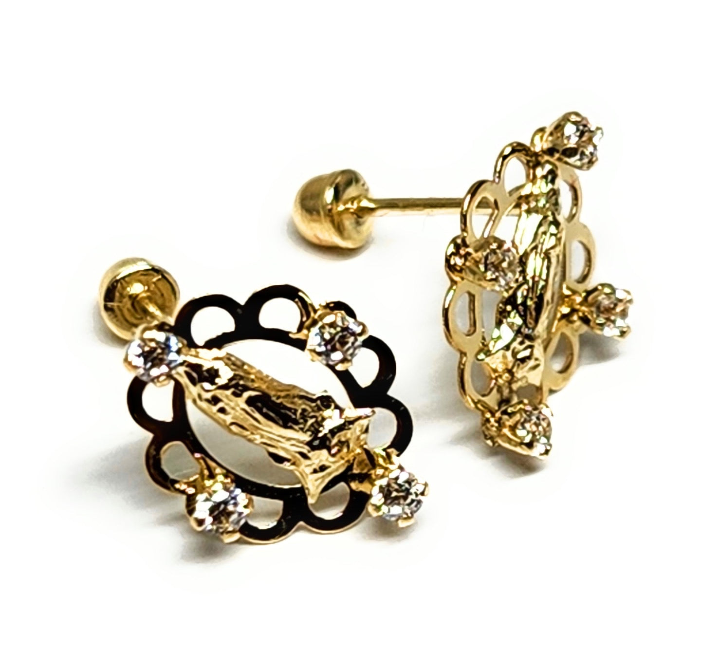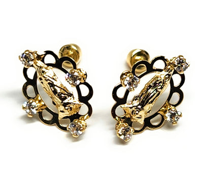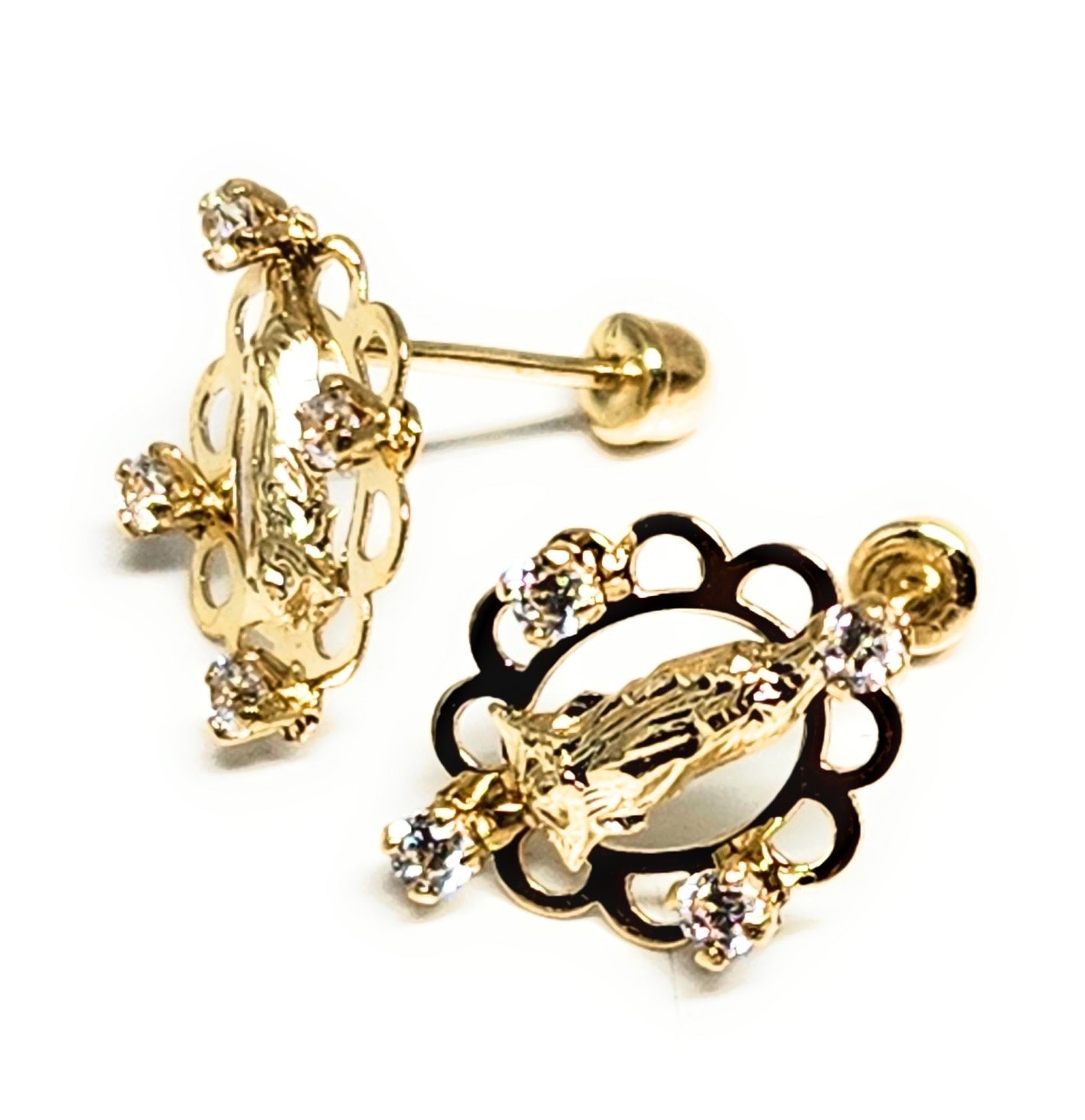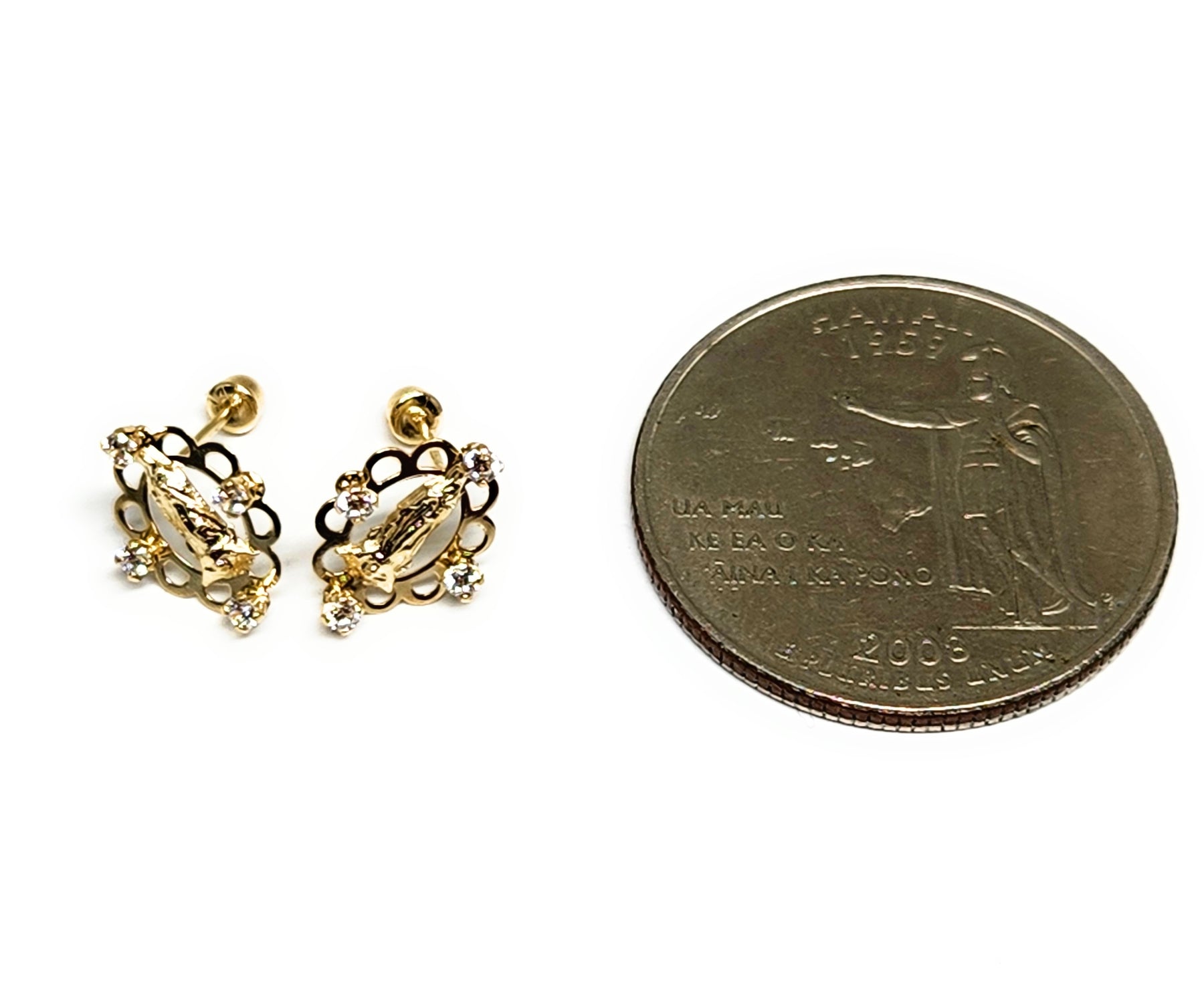 14k Solid Gold Cubic Zirconia SMALL DAINTY VIRRGIN MARY Stud Earrings (FCE 36) (MADE IN MX)