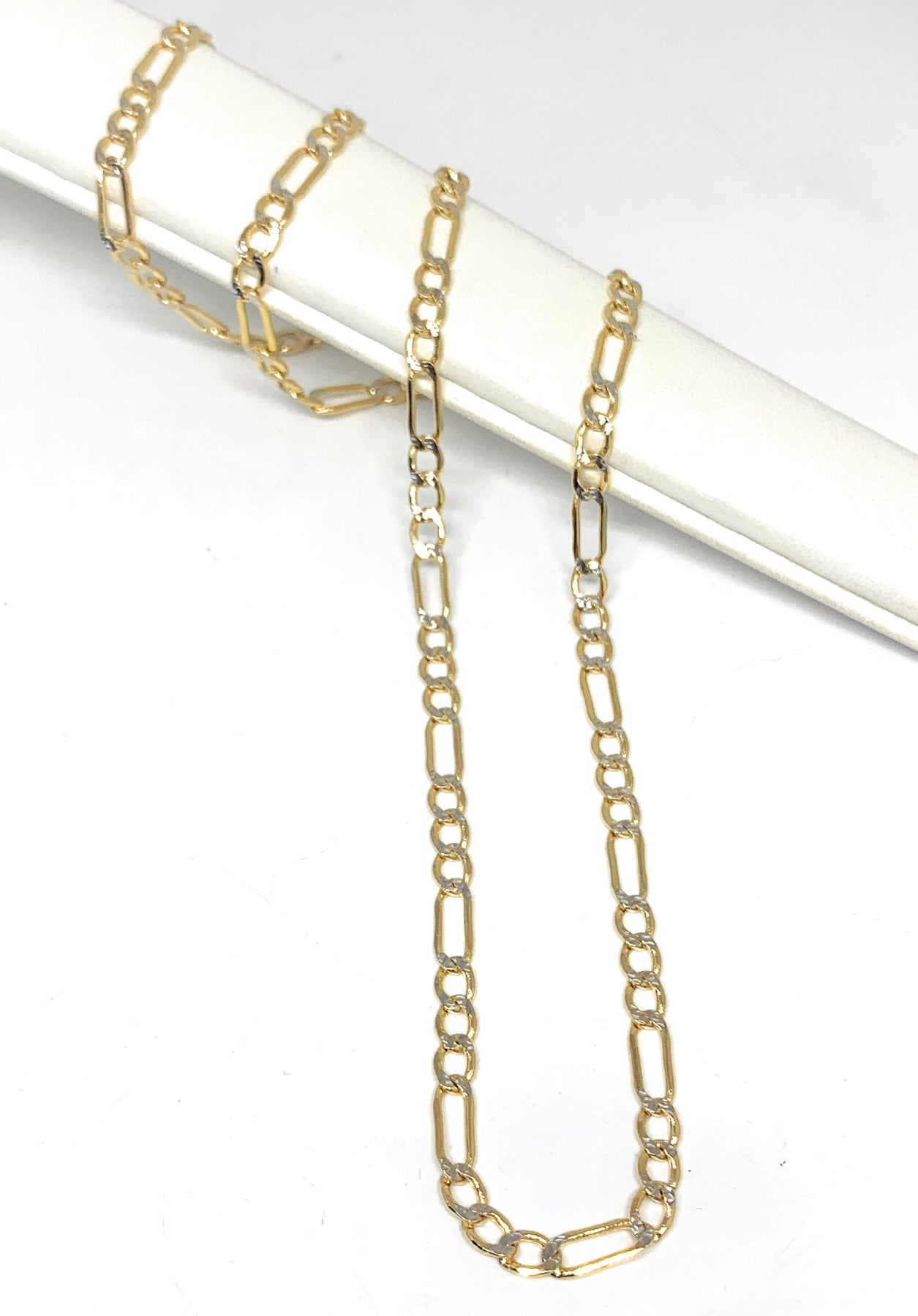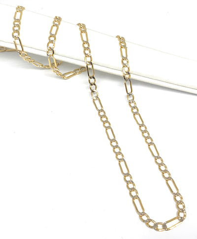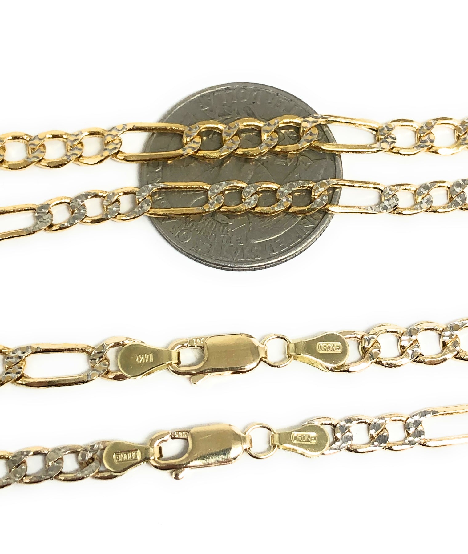 14k Solid Gold Diamond Cut (White Gold) Figaro Chain 18-26 inches 4.5-5mm (Semi-Hollow Style)