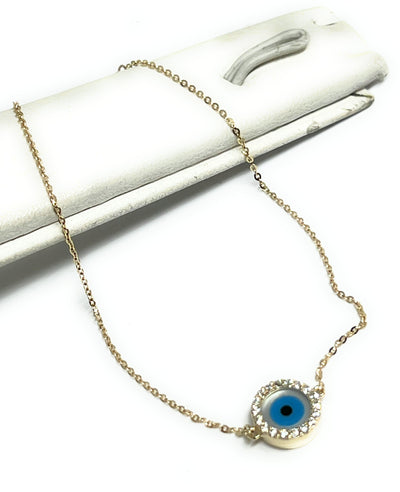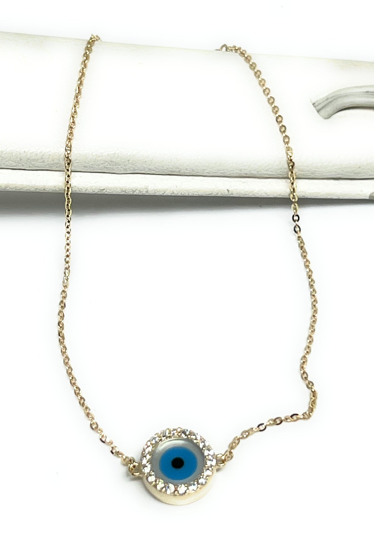 14k Solid Gold Evil Eye CZ Brracelet 8 INCH 1mm Width (THIN & DELICATE) (FC)