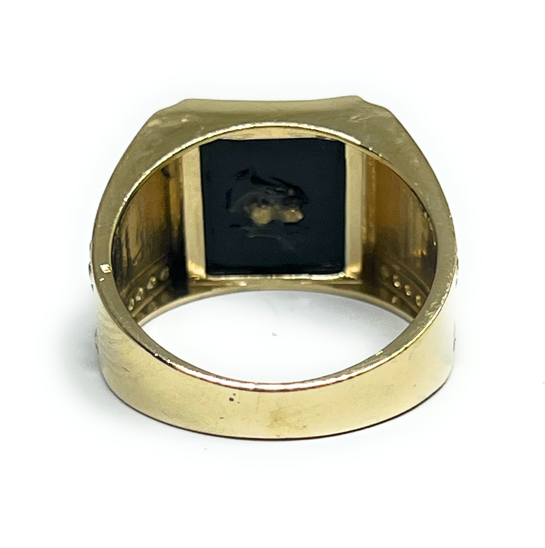 - Horse and Horseshoe ONYX Greek Border ring 14k solid gold guaranteed.