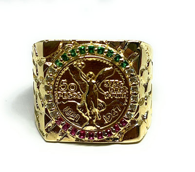 - MEXICAN CENTENARIO 50 PESOS COIN Nugget CZ ring 14k solid gold guaranteed.