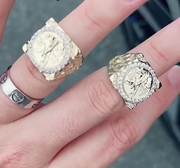 14k Solid Gold MEXICAN CENNTENARIO 50 COIN NUGGET CZ Ring (9g~)