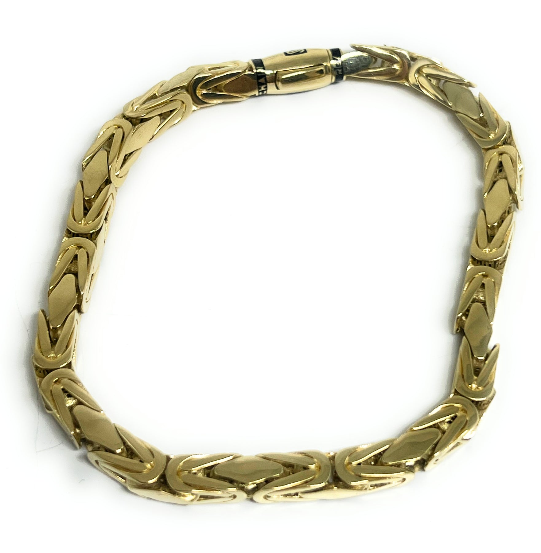 • Byzantine chain semi-hollow style chain in 14k solid gold is available in 8.5 inches at 5mm in width.