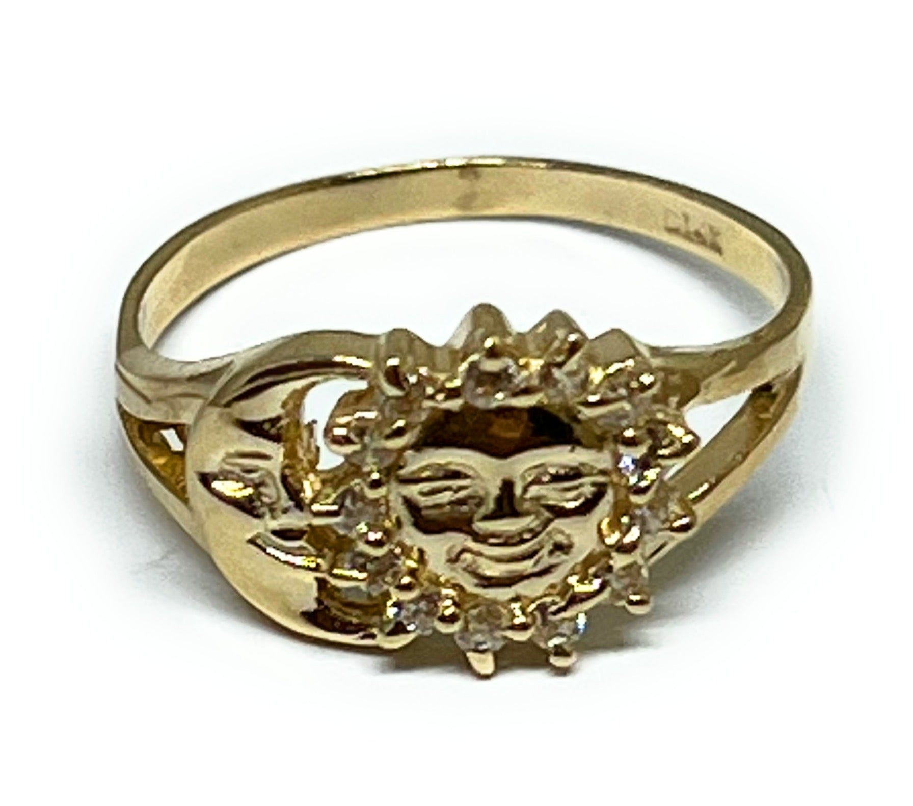 14k Solid Gold MOON & SUN CZ Ring