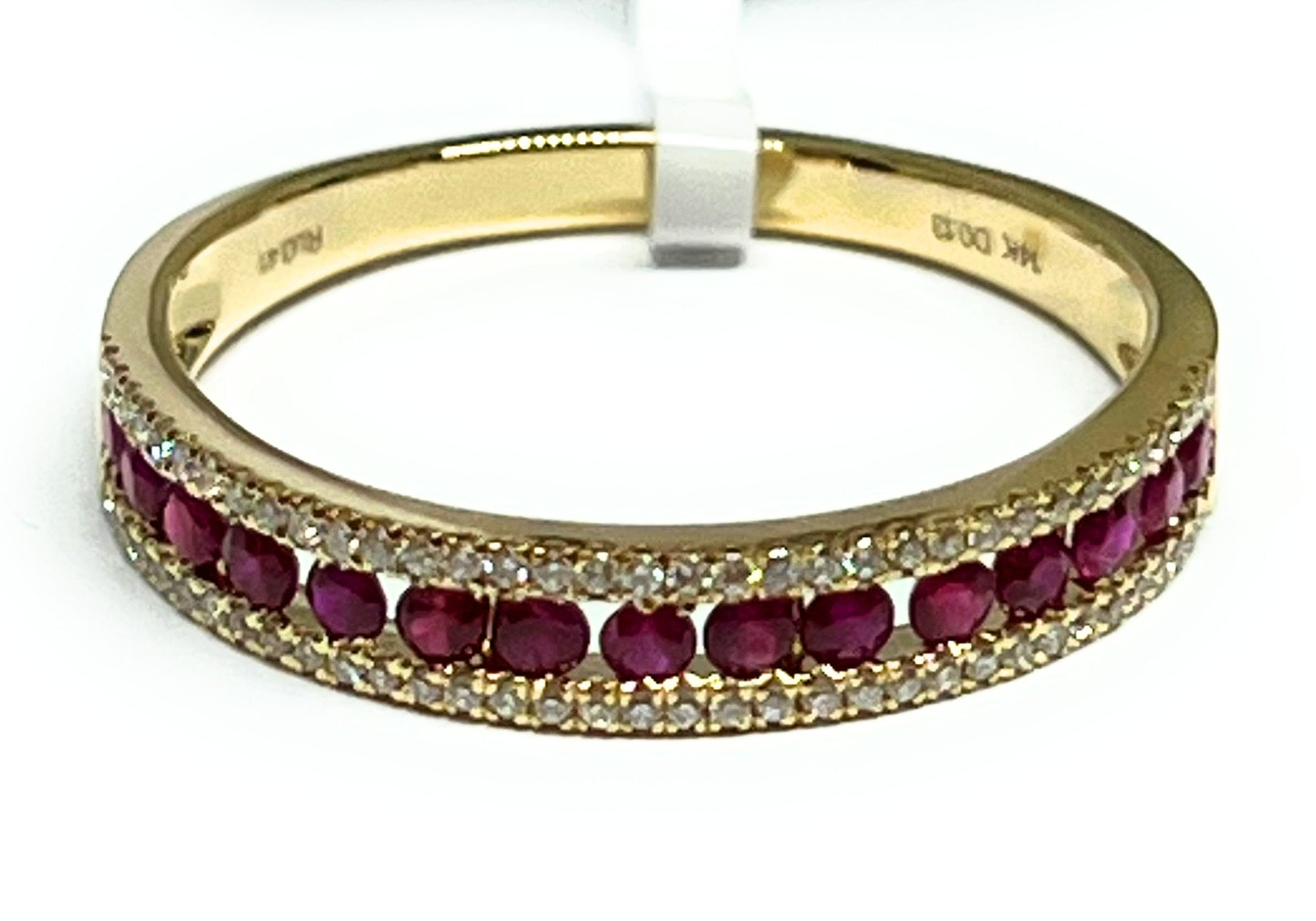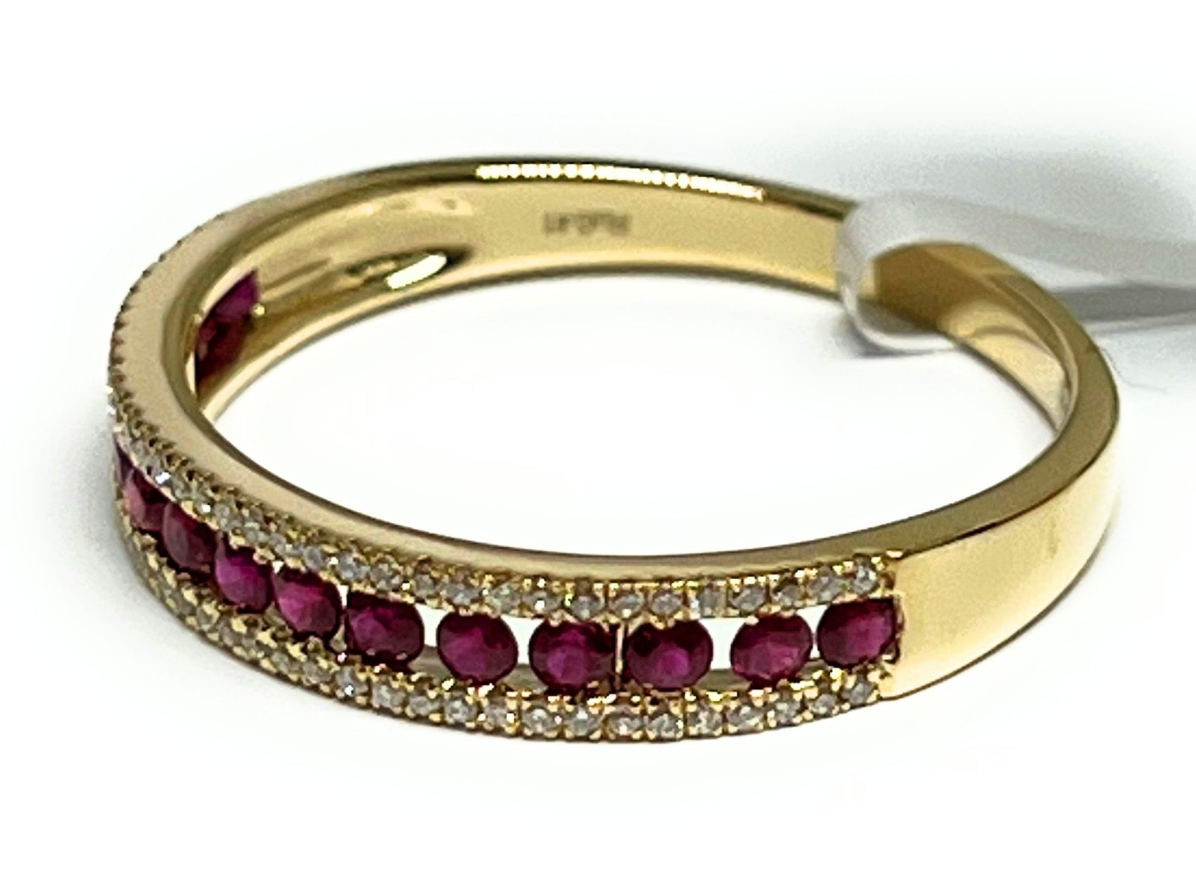 14k Solid Gold Round Brilliant Cut Diamond & Ruby Ring Band 0.54ct (FCD 28)