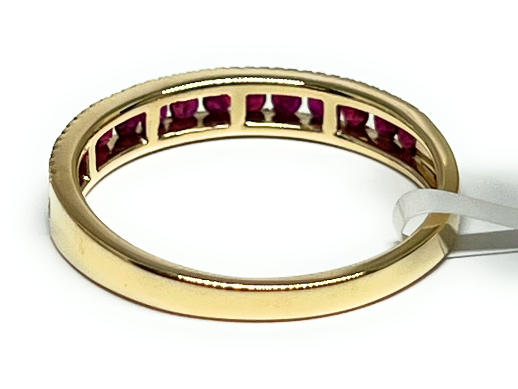 Introducing our new collection of REAL & NATURAL precious gemstones jewelry! This elegant 14k solid gold band ring features 15 natural heat treated round rubies and 70 round brilliant cut diamonds, perfect for engagement or any special occasion. Made using 14k solid gold and with a total carat weight of 0.54 ct, this ring is beautiful and crafted with the best materials for best quality, affordability, and shine!