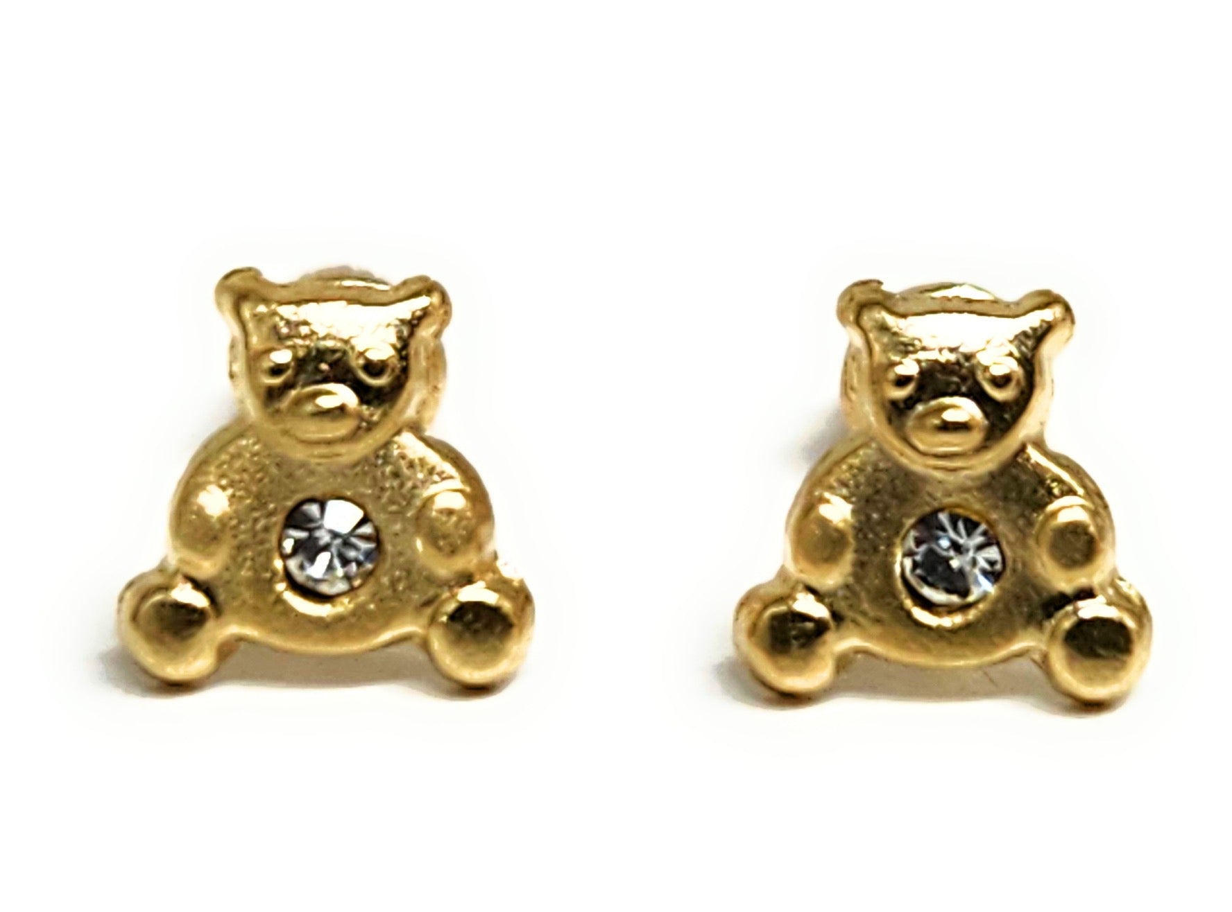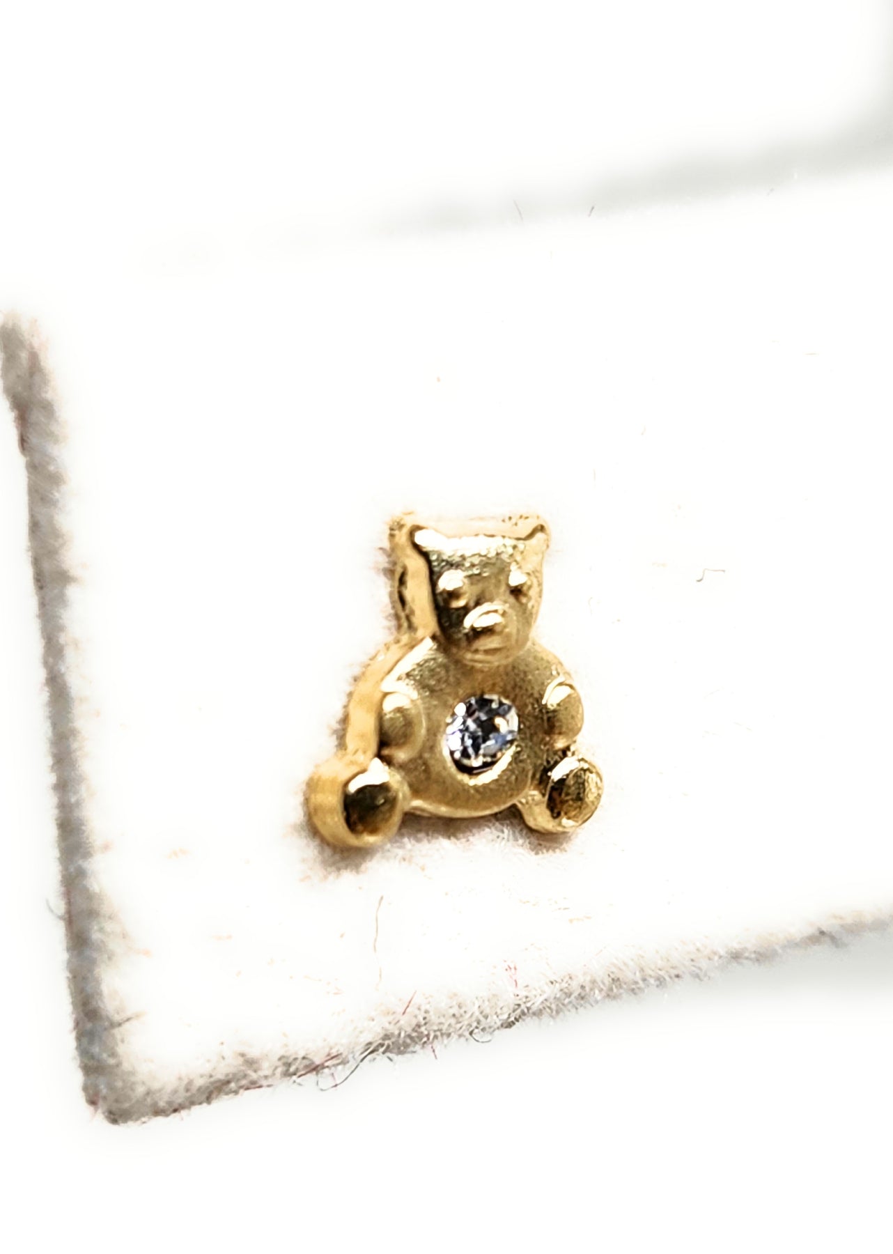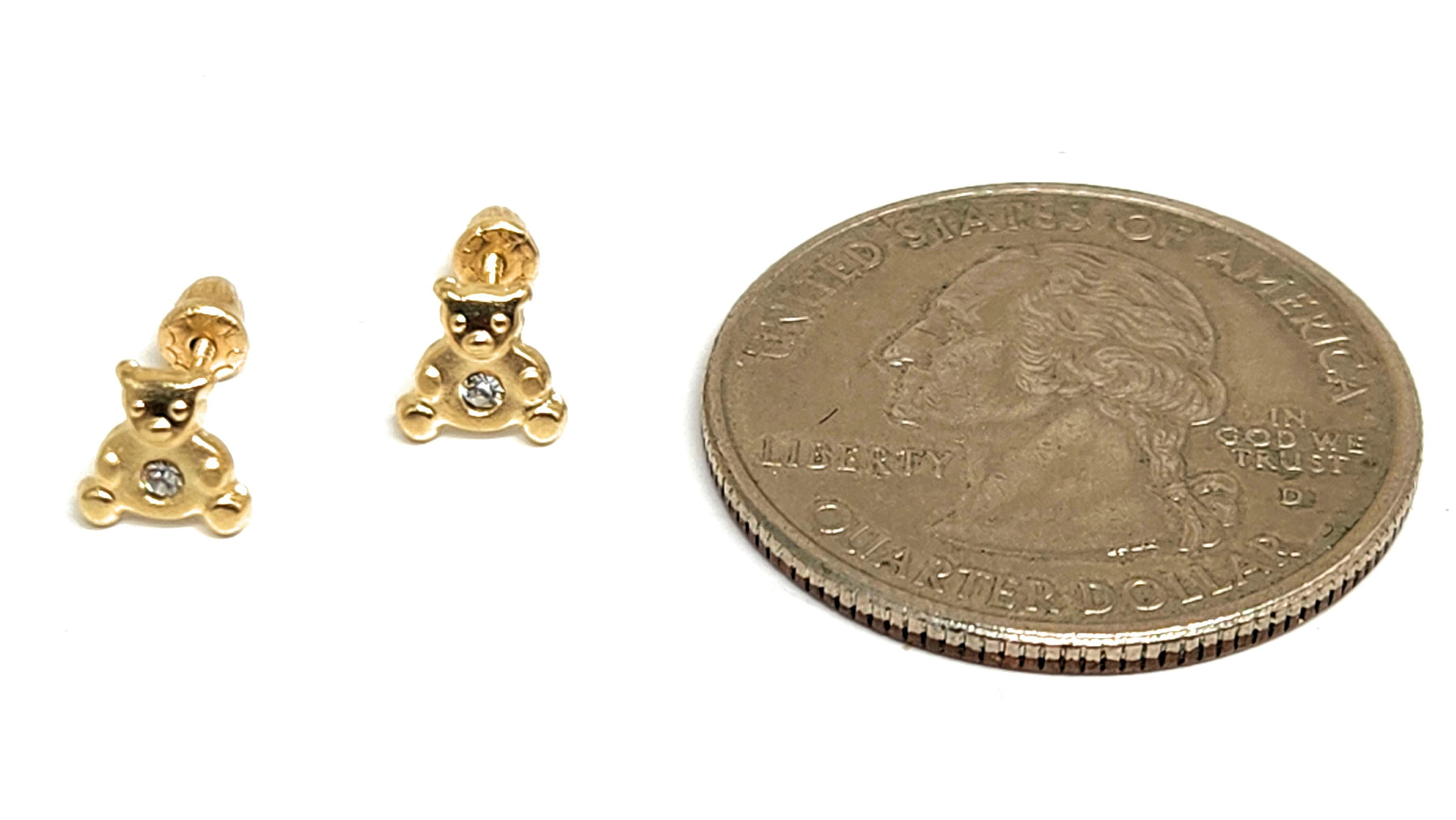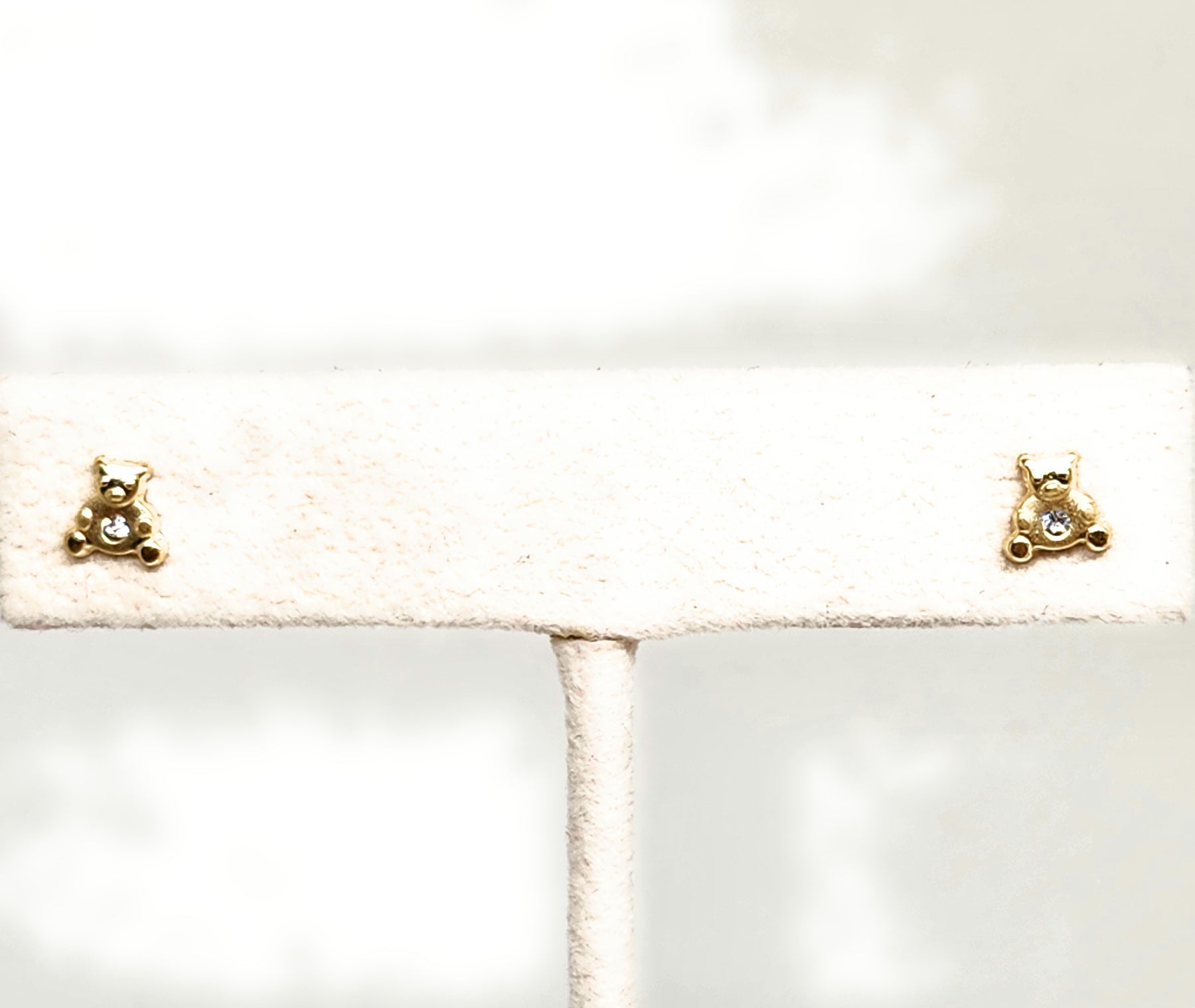 14k Solid Gold SMALL Dainty Teddy Bear CZ STUD Earrings (FCE 56) (MADE IN MX)