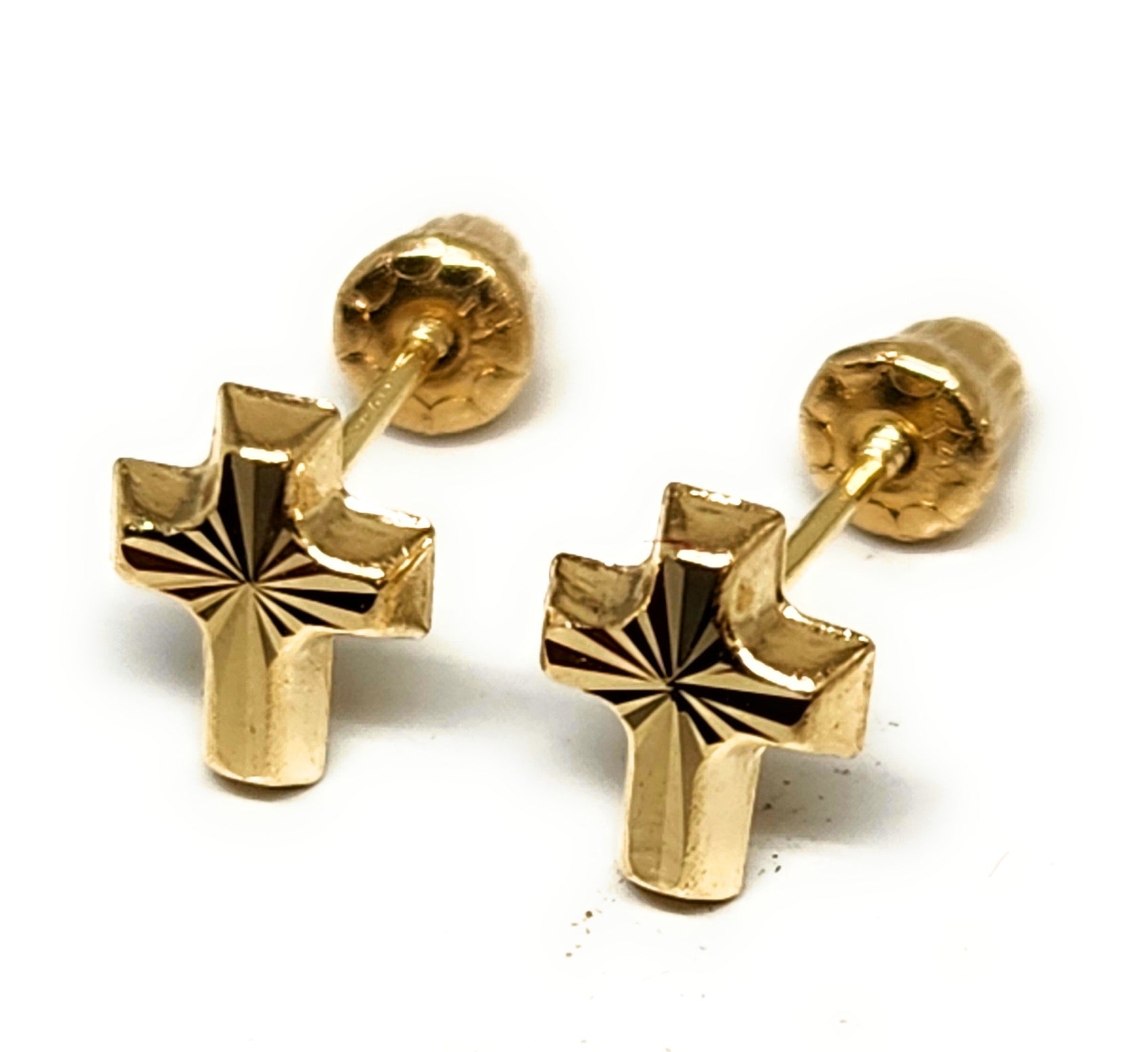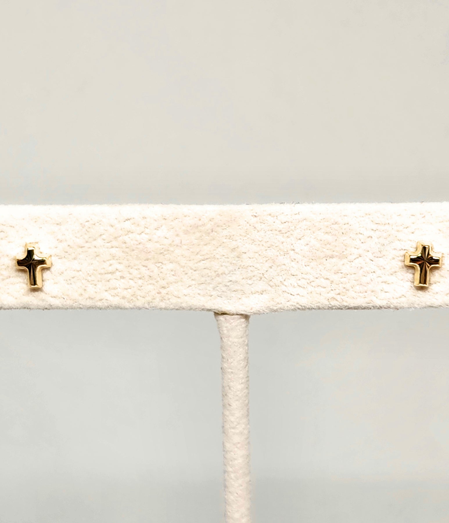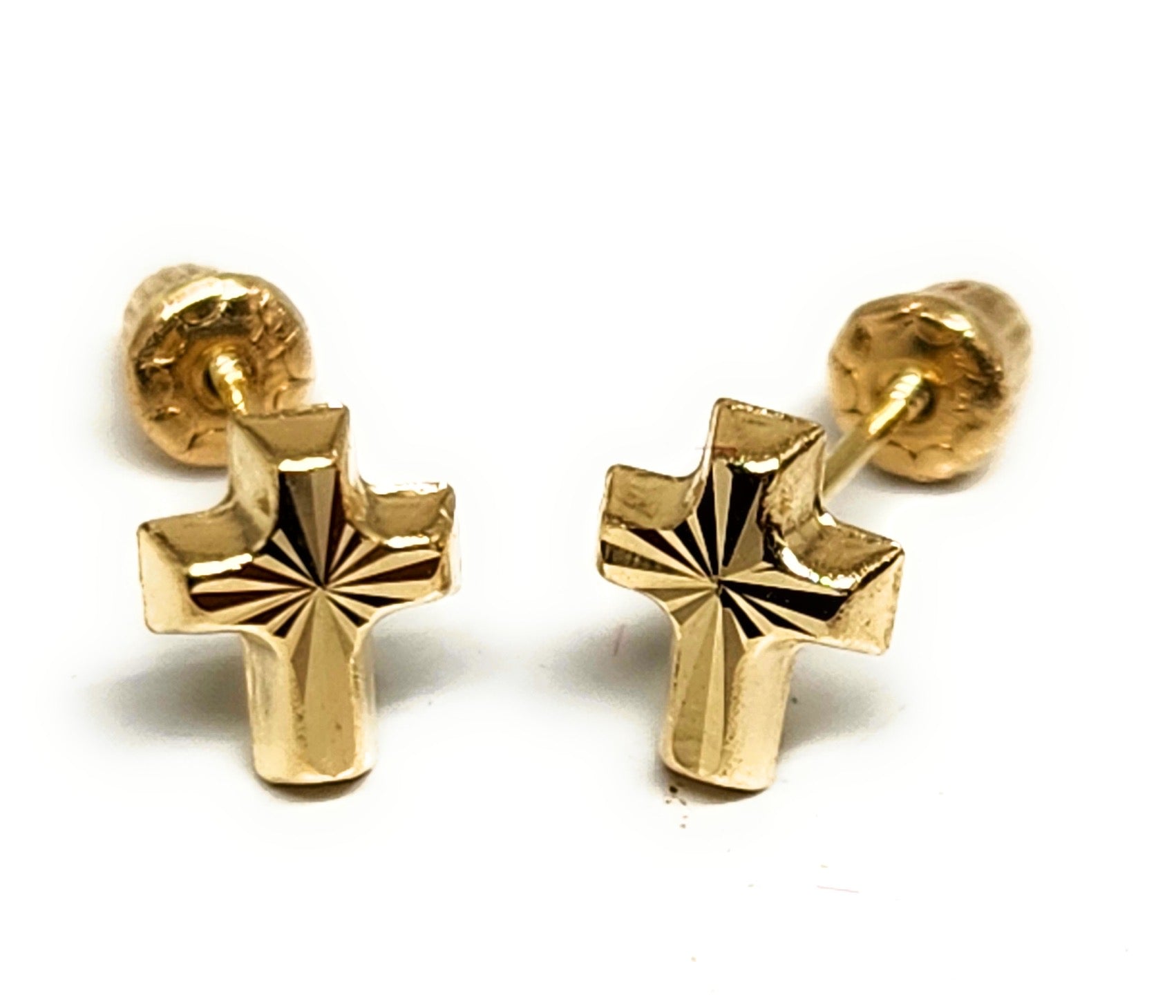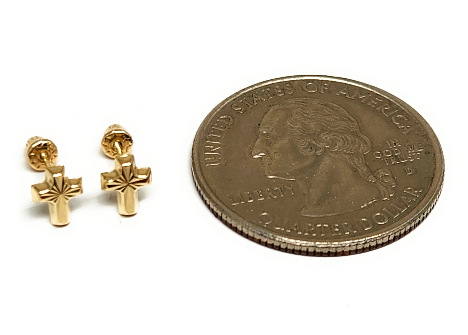 14k Solid Gold SMALL Dainty CROSS STUD Earrings (FCE 57) (MADE IN MX)