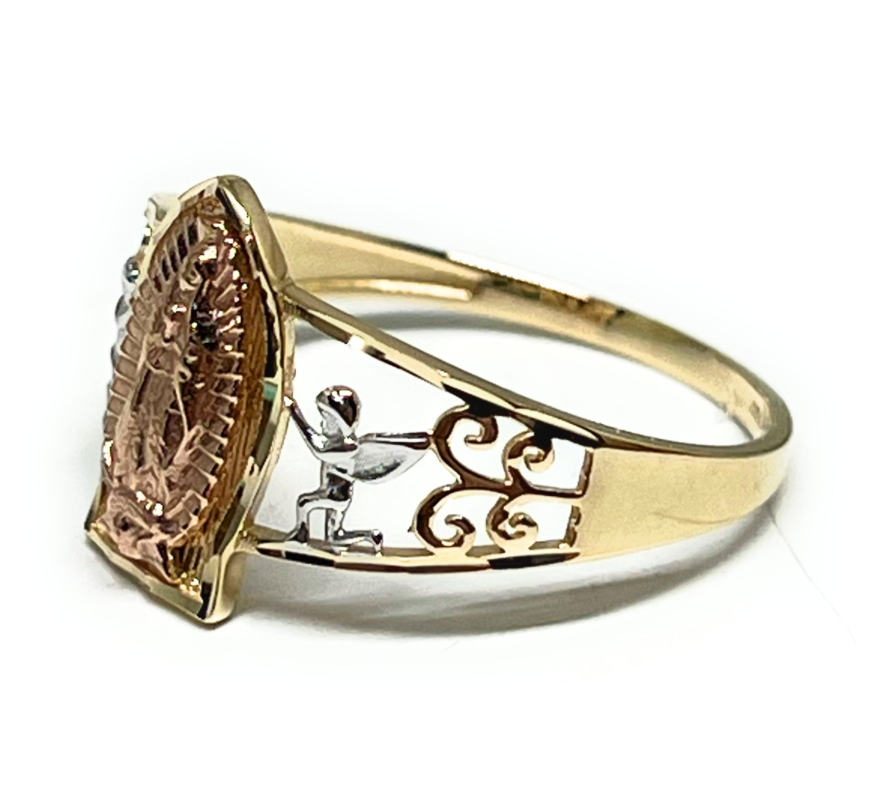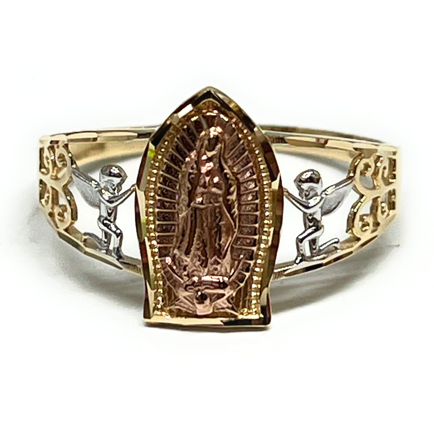 14k Solid Gold Tri-Color Virrgin Mary ANGELS Ring (FC 314)