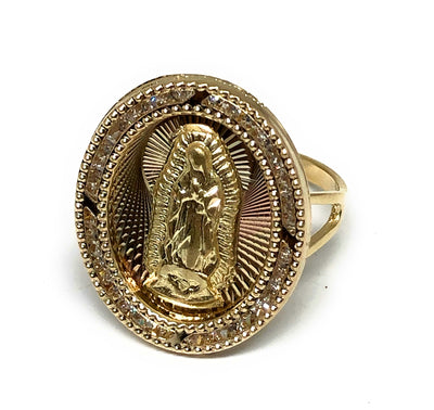 - Tri-Color Virgin Mary CZ Ring 14k solid gold guaranteed.