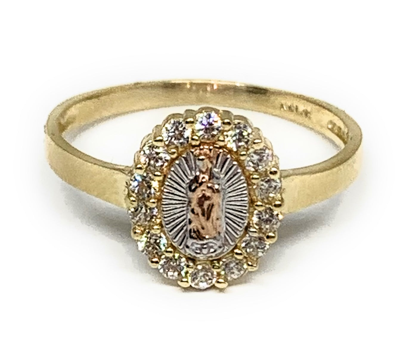 - Tri-Color Virgin Mary CZ Ring 14k solid gold guaranteed.