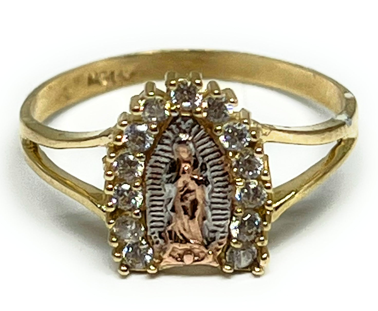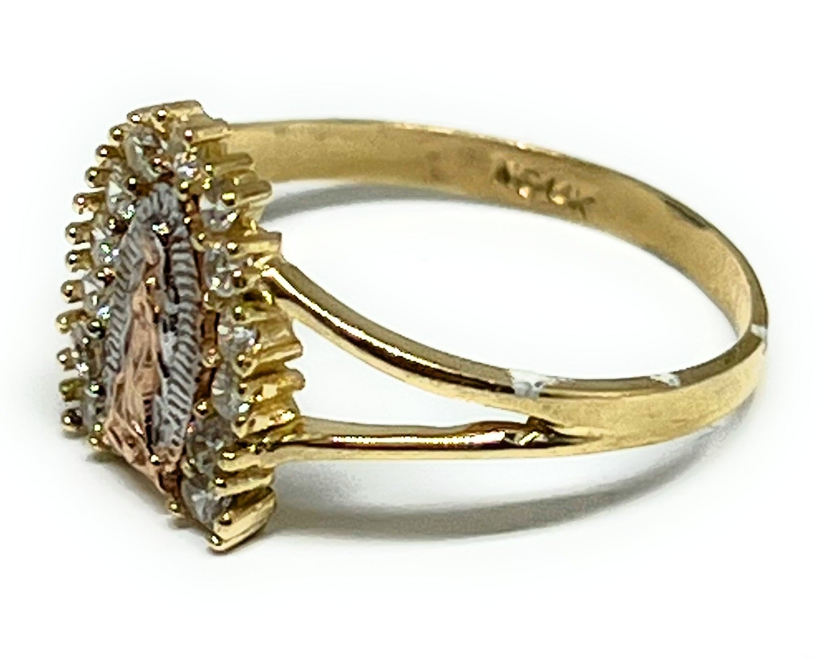 - Tri-Color Virgin Mary CZ Ring 14k solid gold guaranteed.