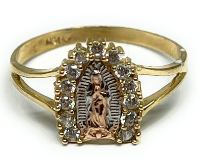 14k Solid Gold Tri-Color Virrgin Mary CZ Ring