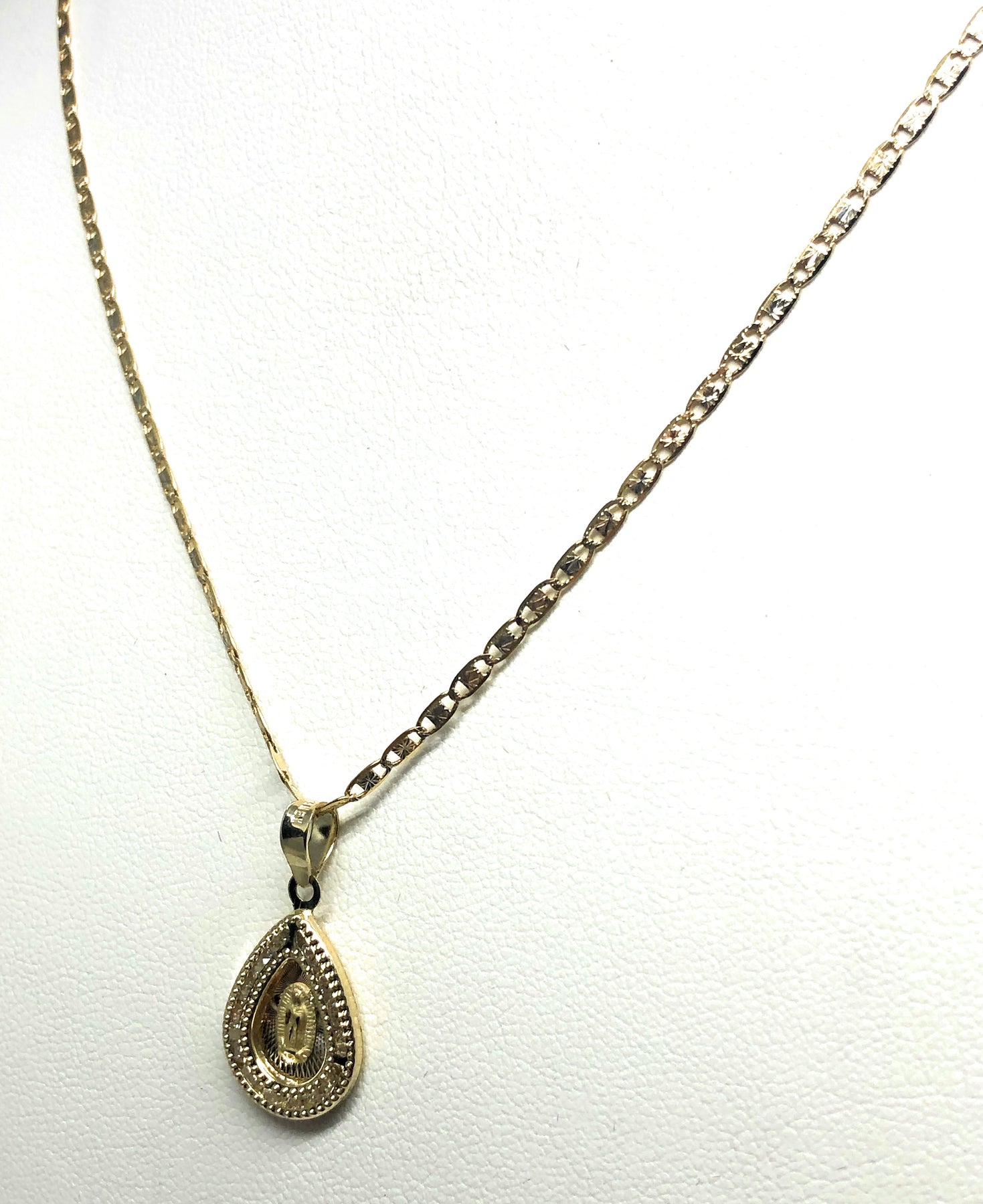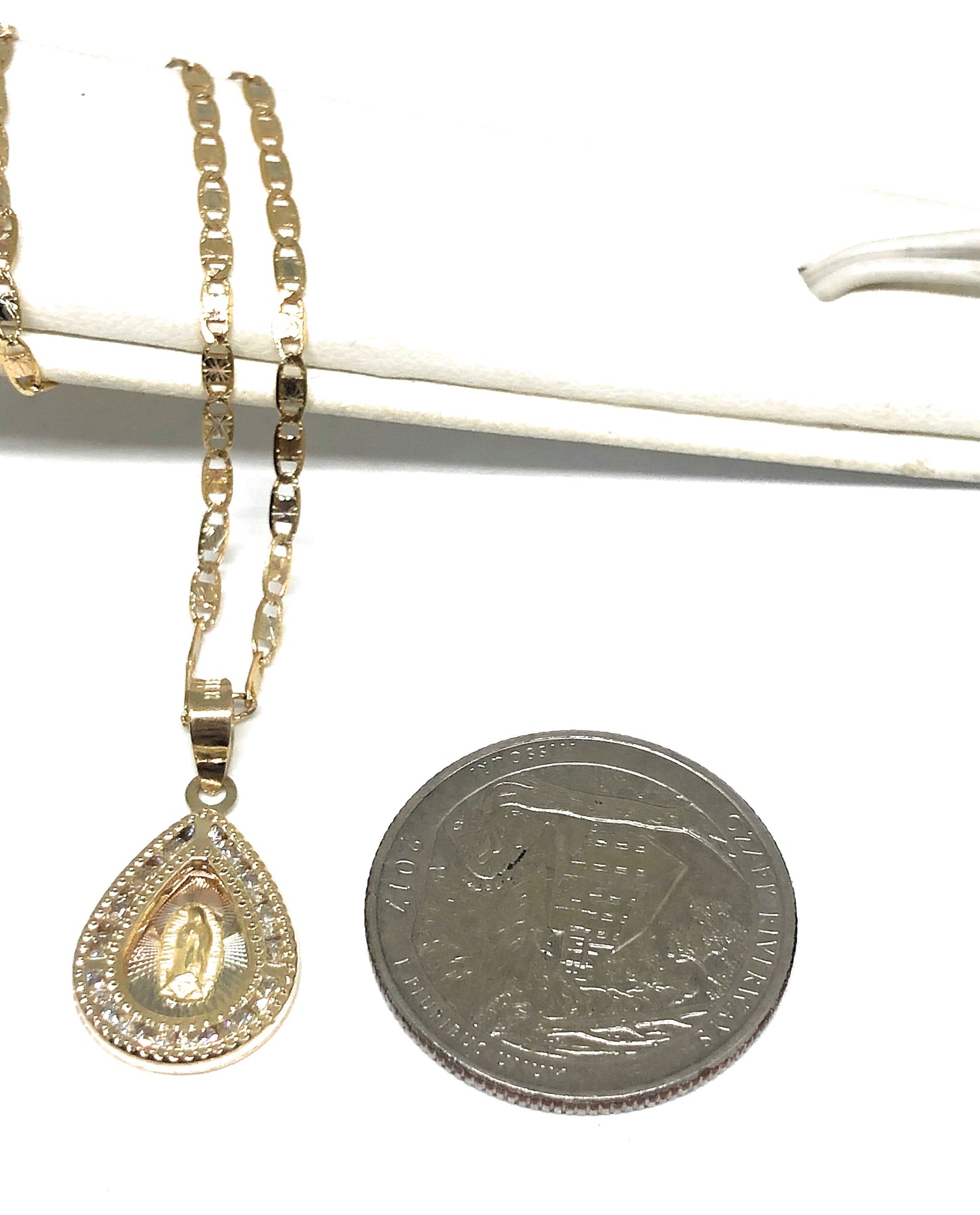 14k Solid Gold Tri-Color Virrgin Mary CZ Teardrop Pendant Necklace Virrgen Gaudalupe