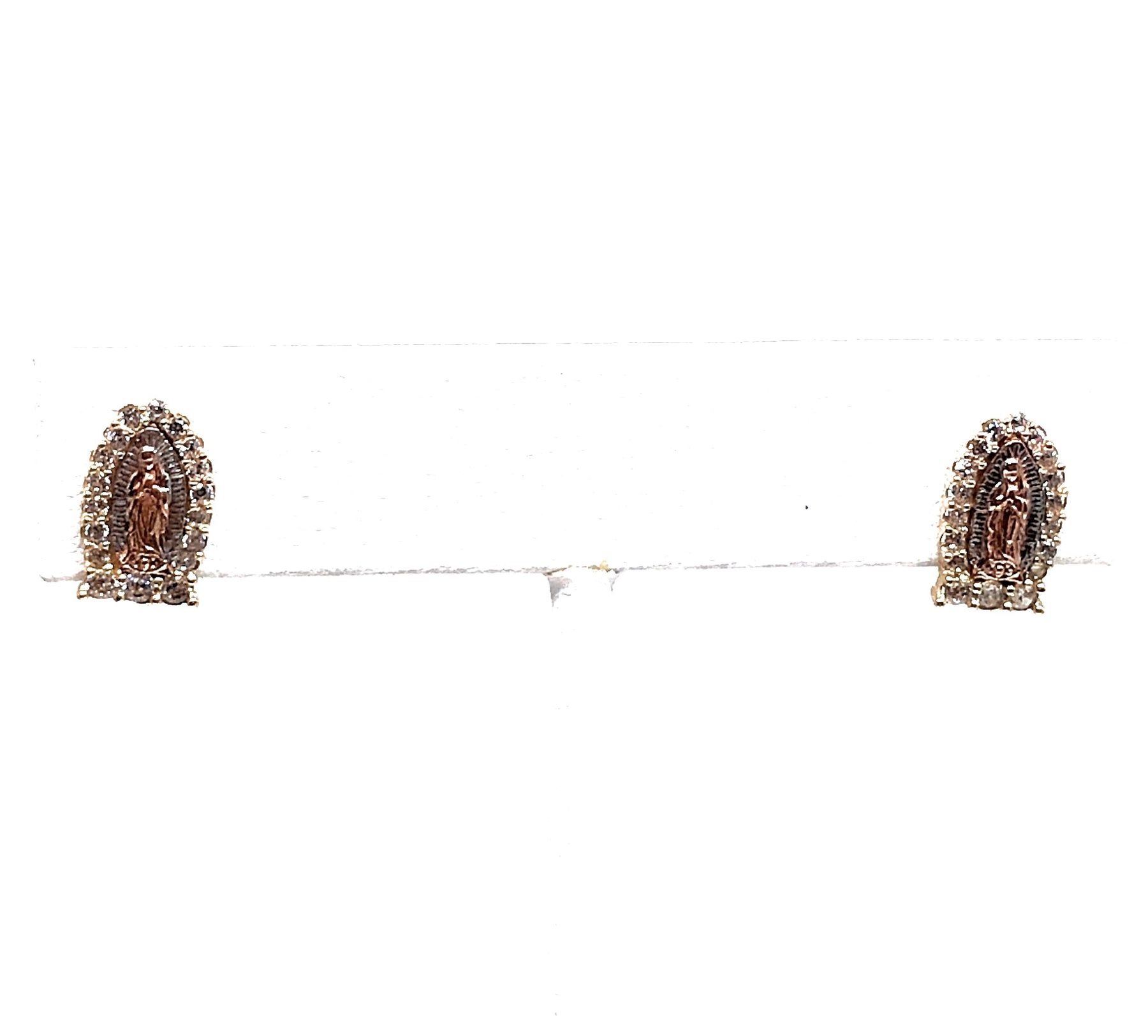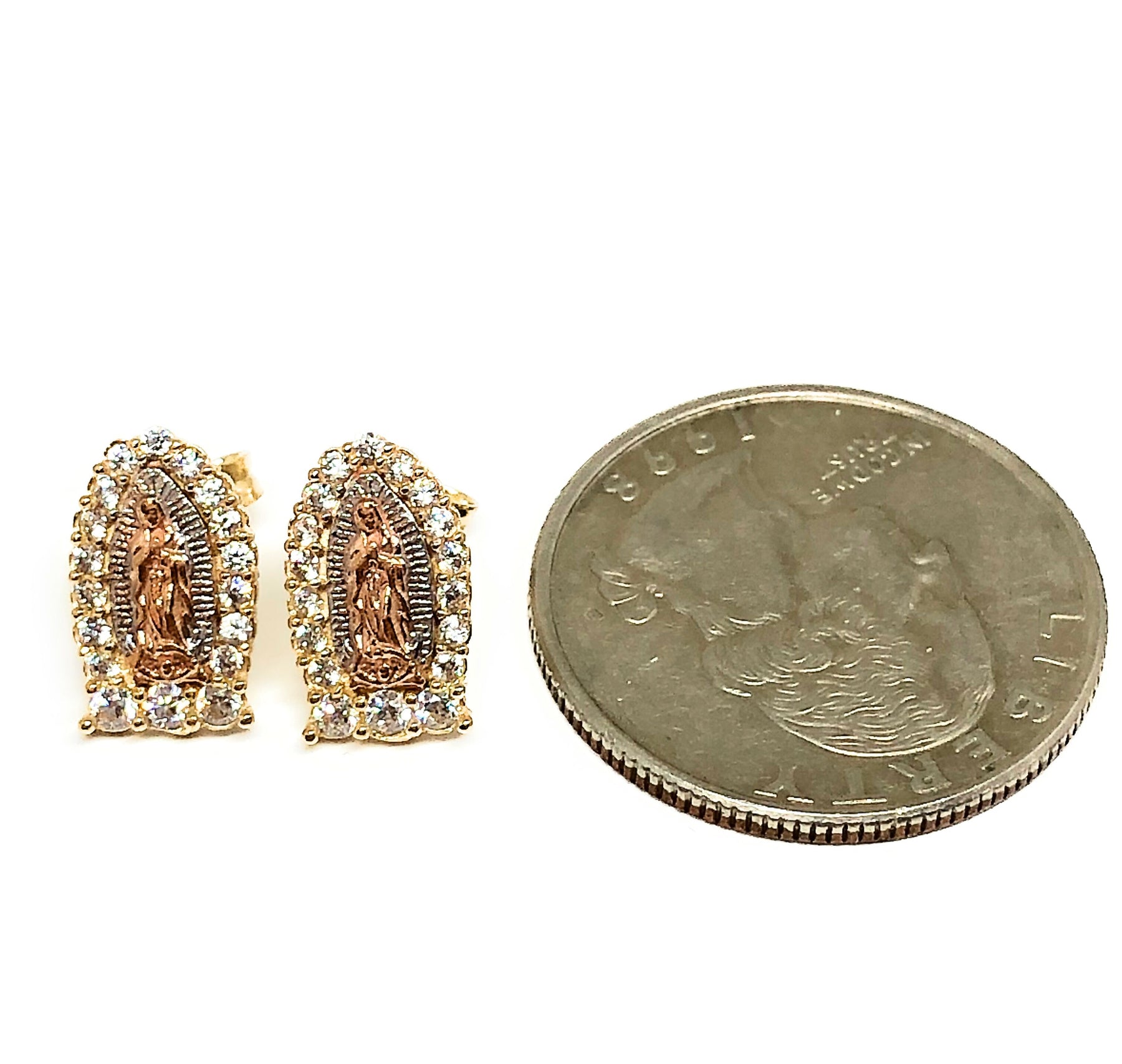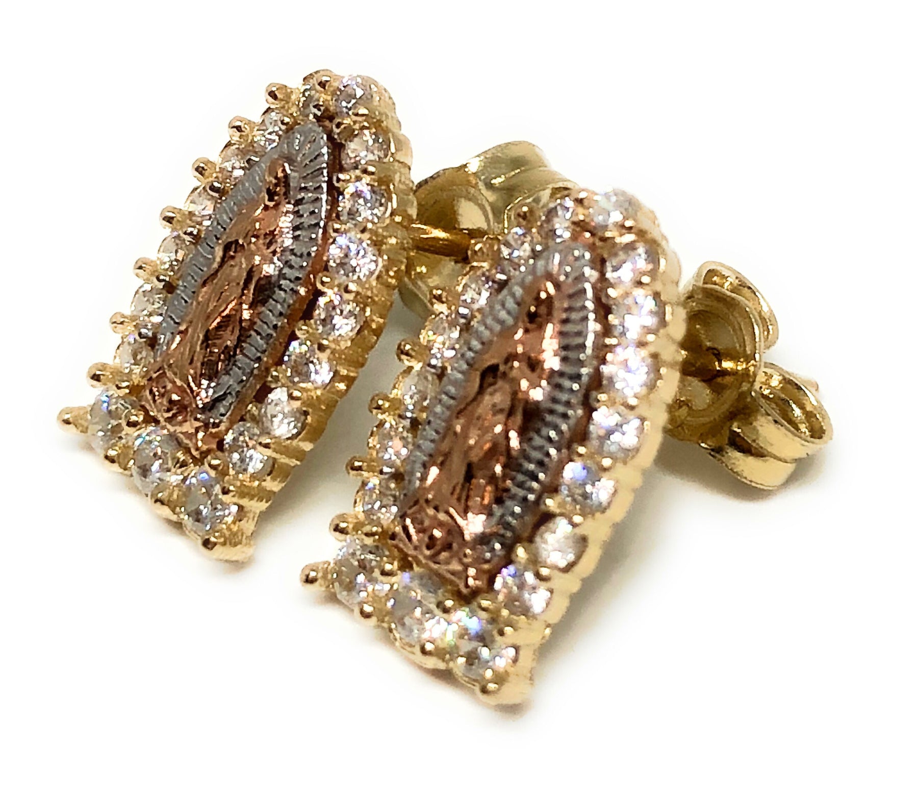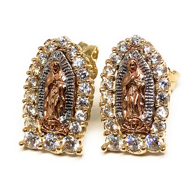 14k Solid Gold Tri-Color SMALL Virrgin Mary Earrings CZ