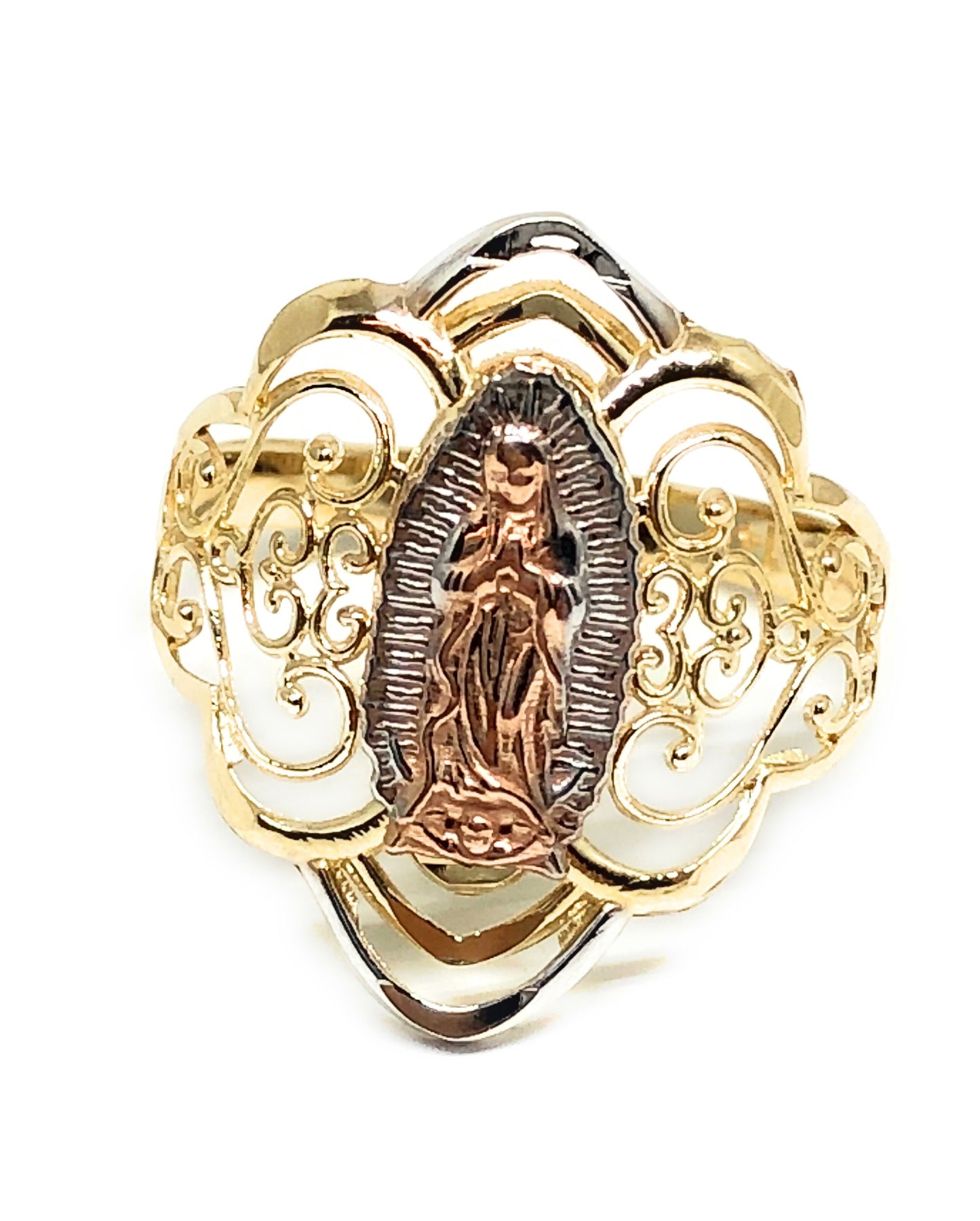 14k Solid Gold Tri-Color Virrgin Mary Filigran Ring