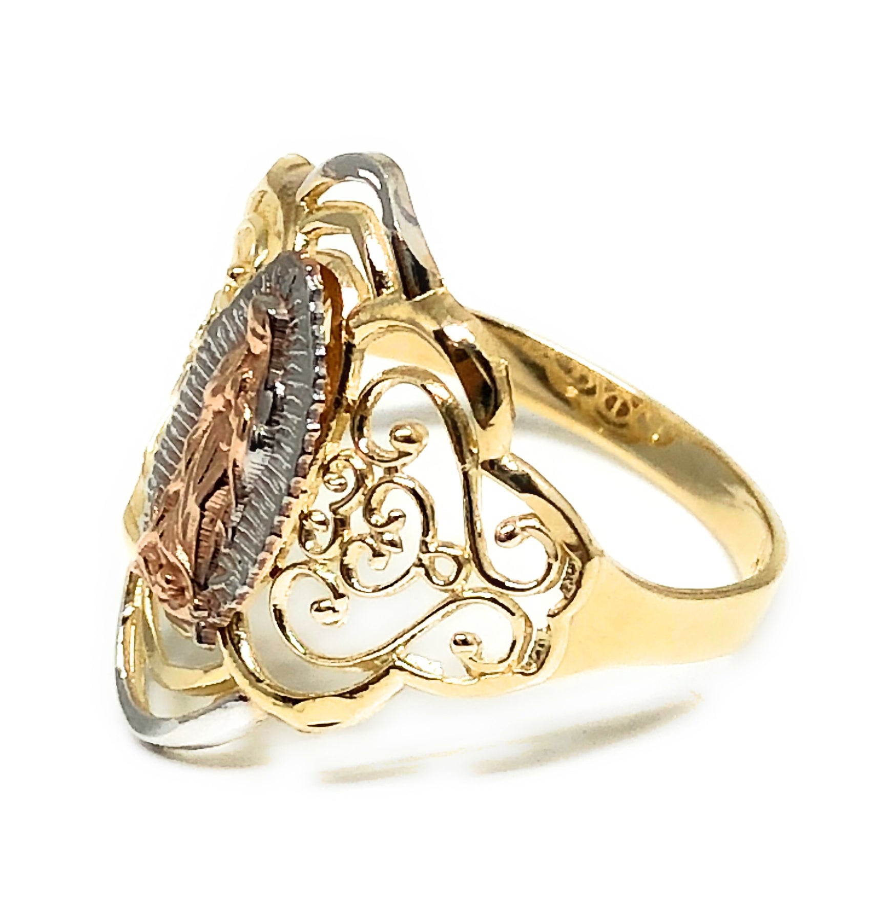 - Tri-Color Virgin Mary Filigran Ring 14k solid gold guaranteed.