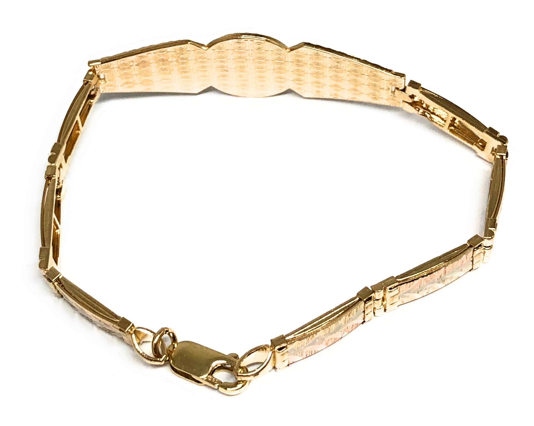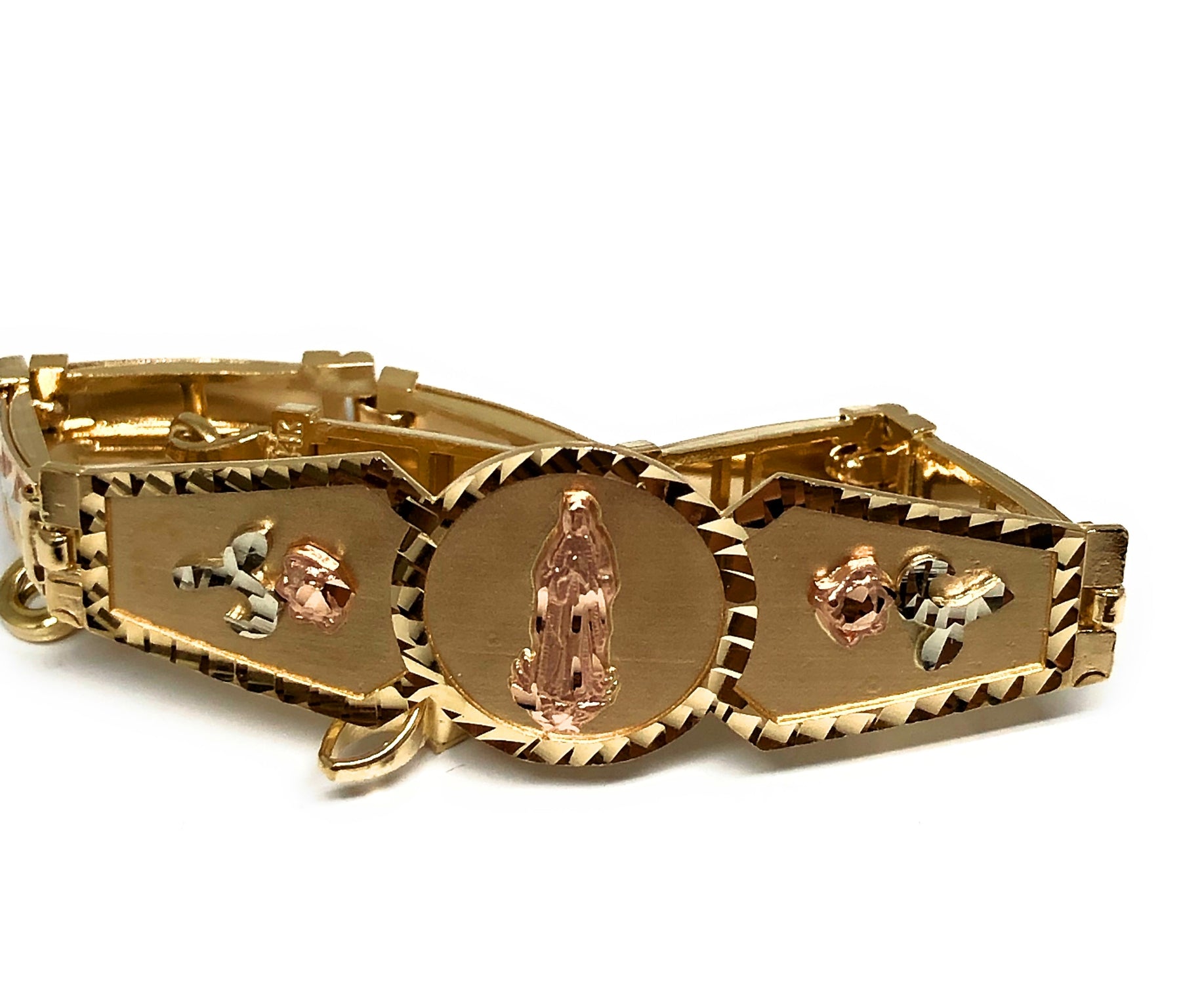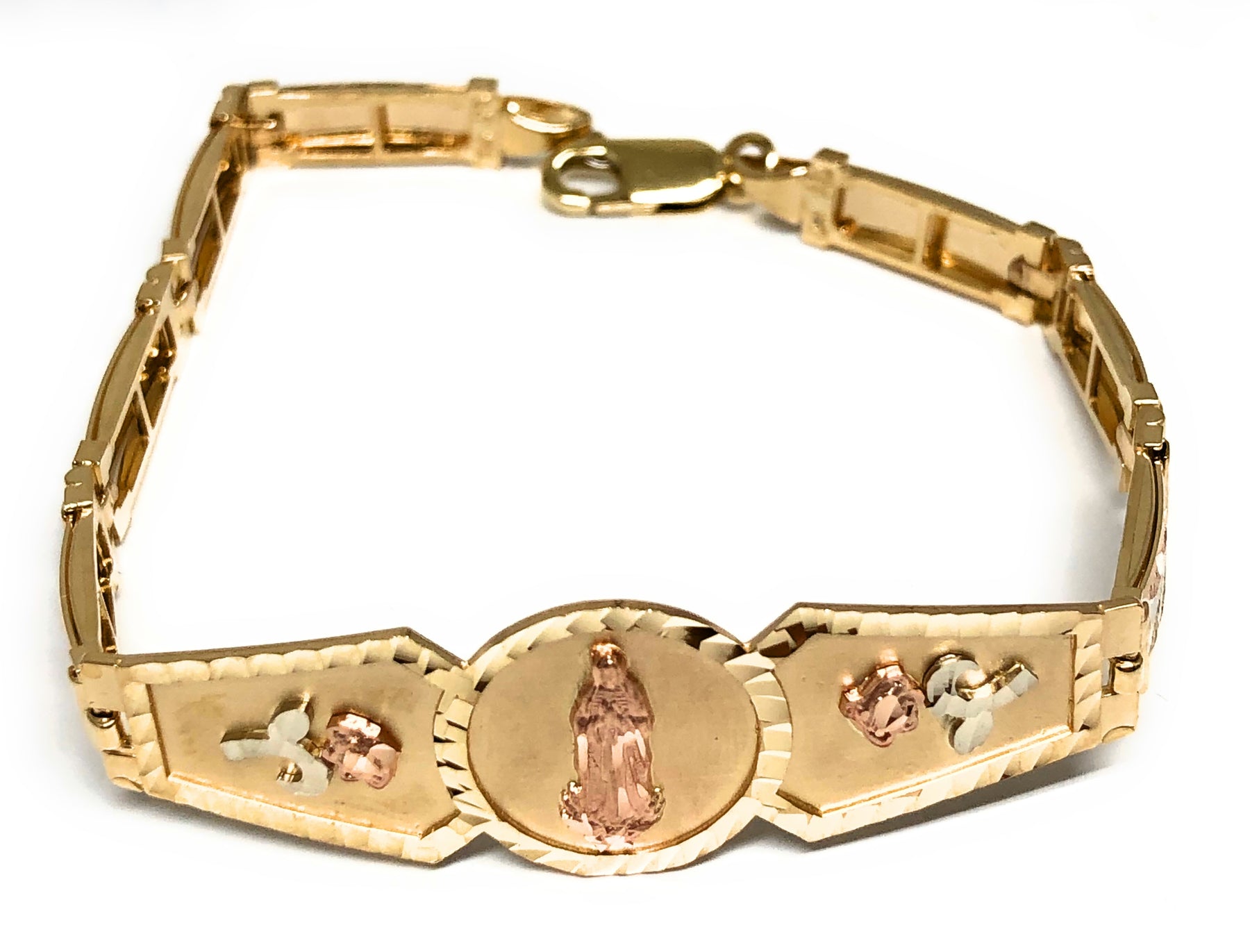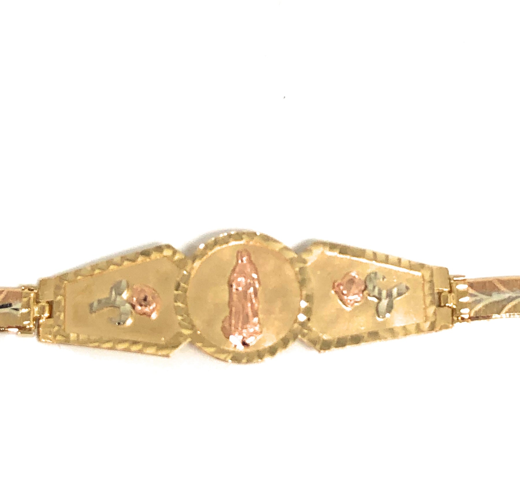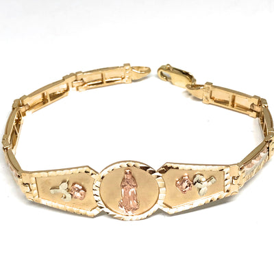 14k Solid Gold Yellow & Rose Virrgin Mary Flower Brracelet 7.1 inch Virrgen Guadalupe (13g)
