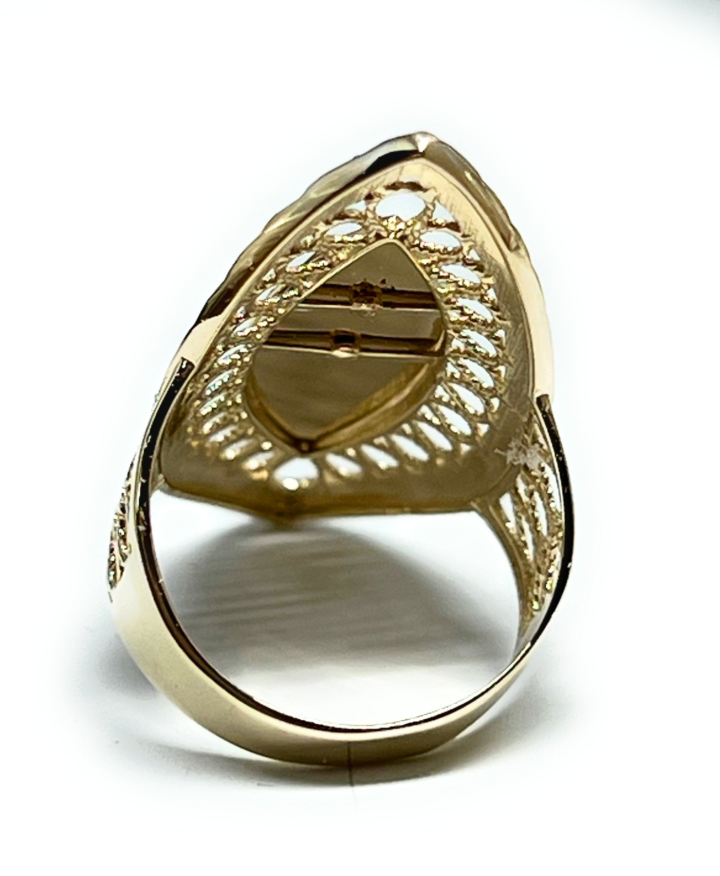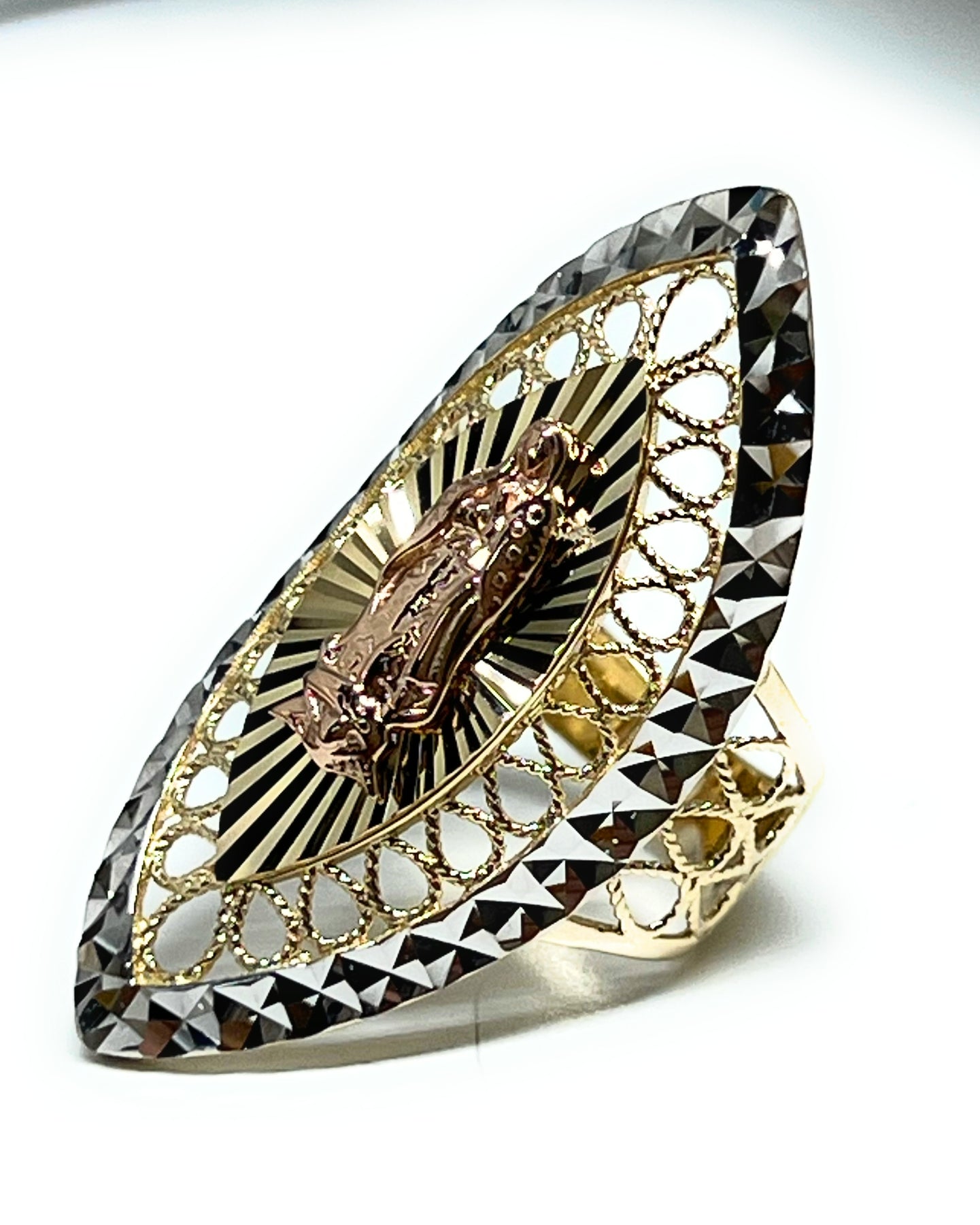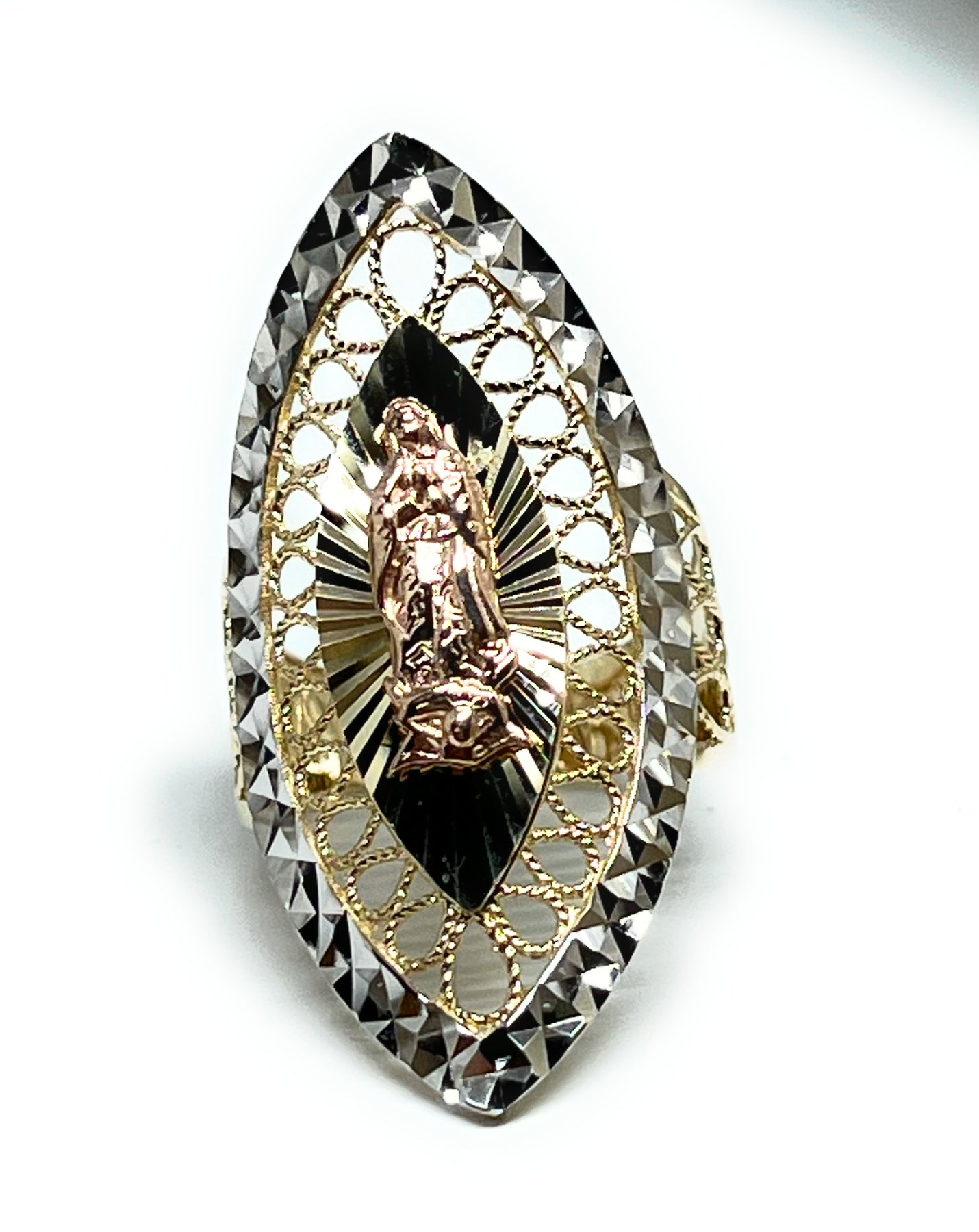 • Tri-Color Gold Virgin Mary LONG OVAL Ring 14k solid gold guaranteed.