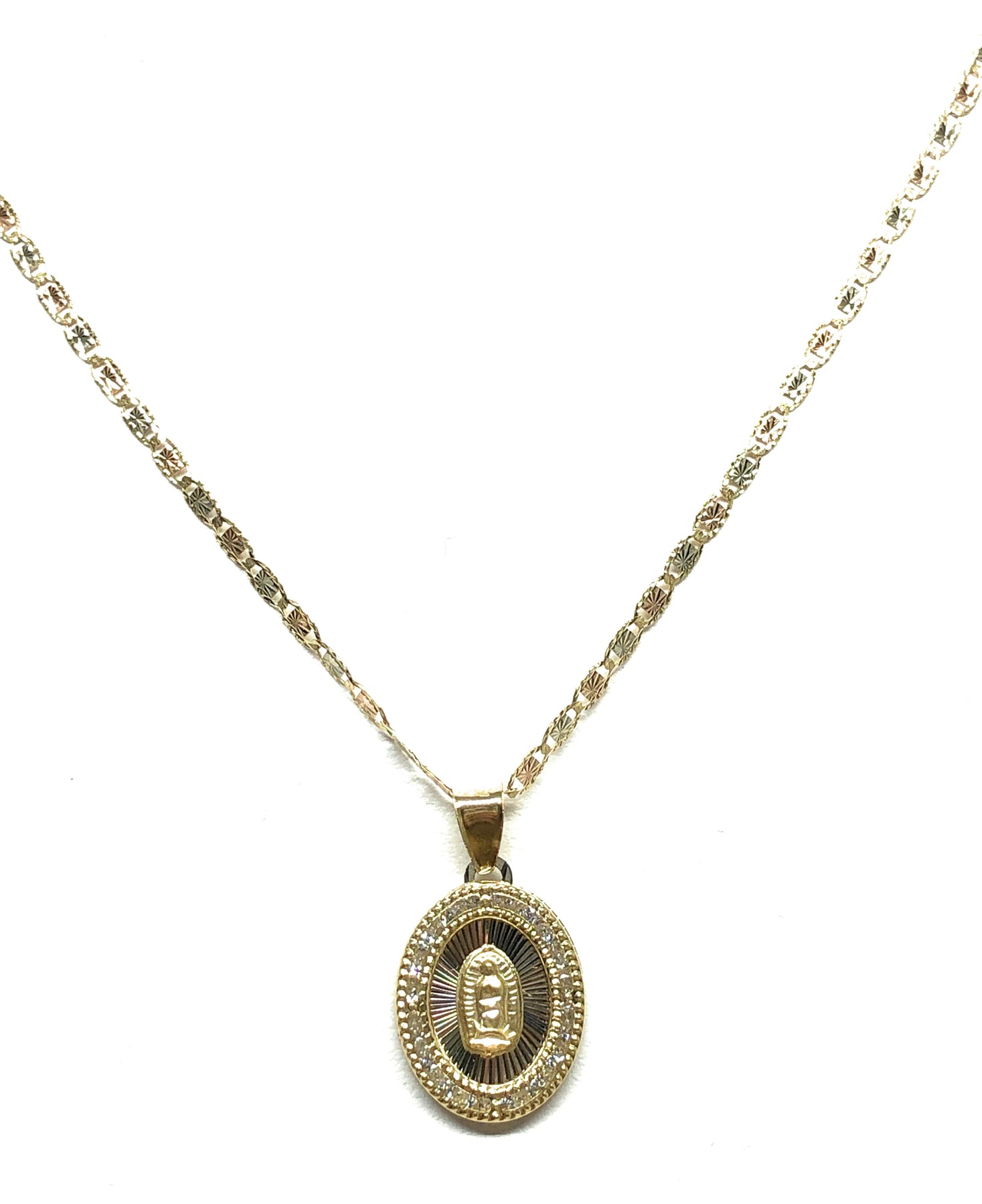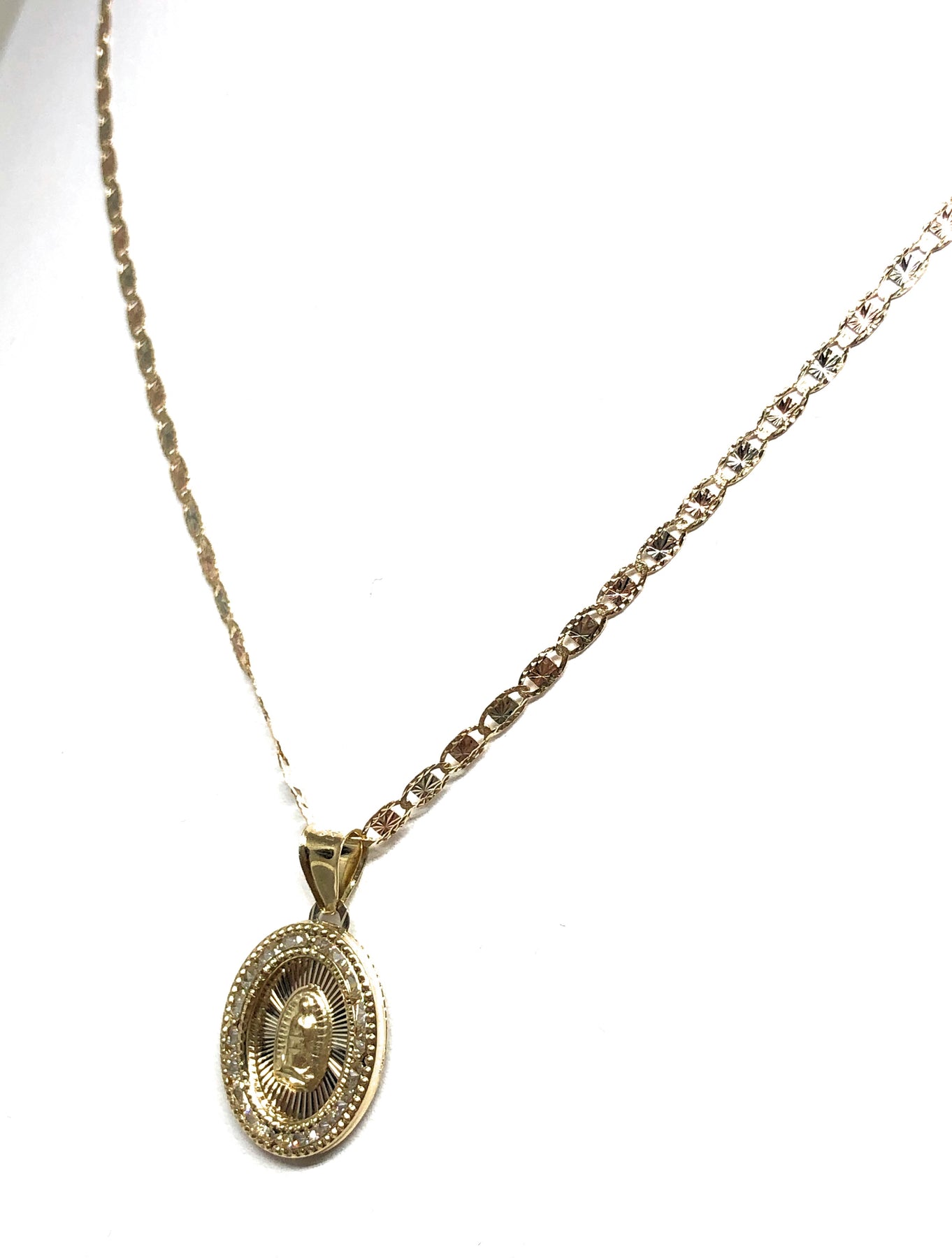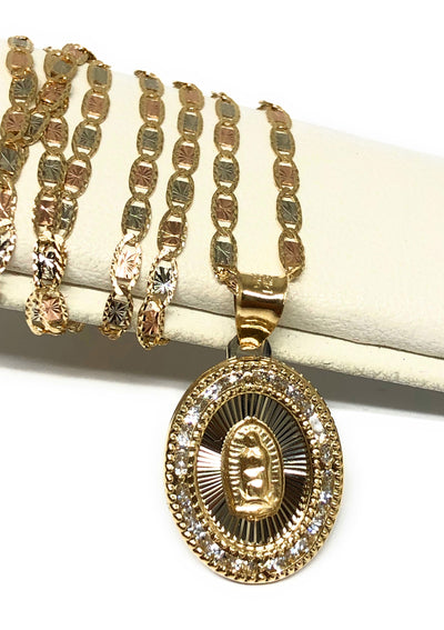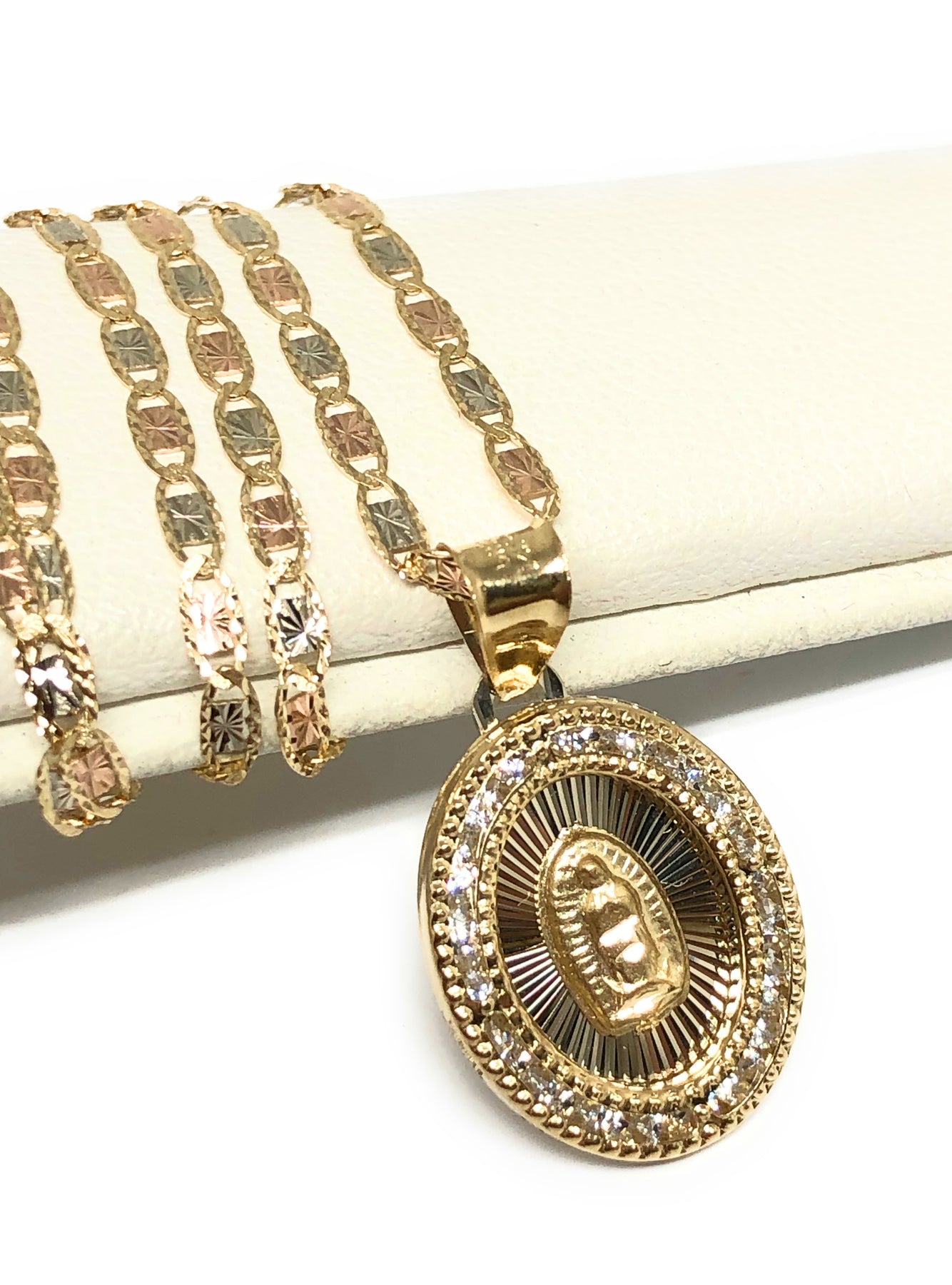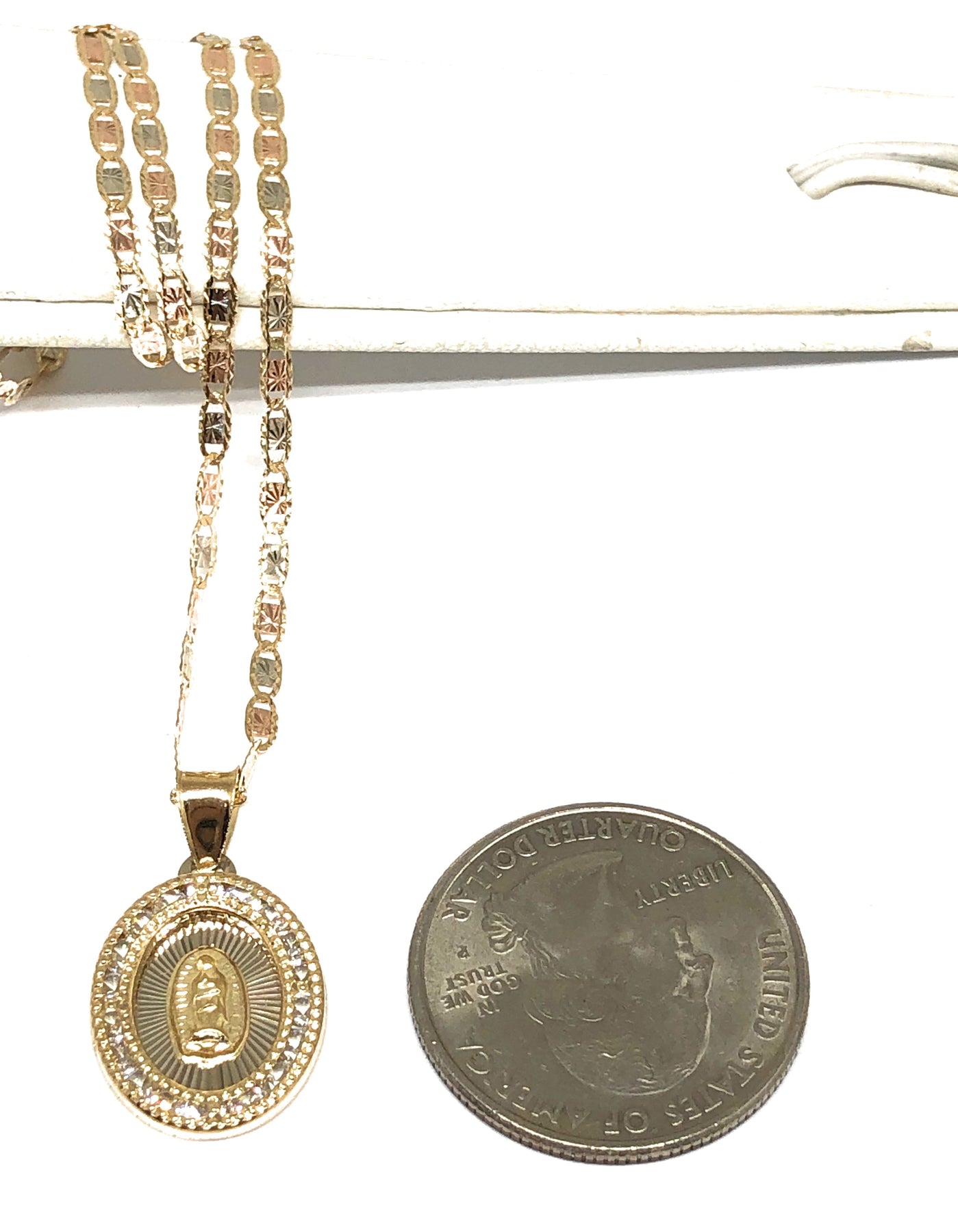 • Virgin Mary Tri-Color pendant and chain and 14k solid gold guaranteed.