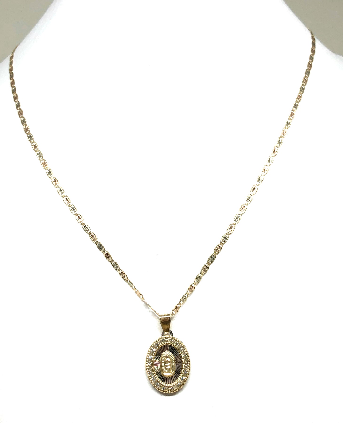 14k Solid Gold Virrgin Mary CZ Pendant Necklace Virrgen Gaudalupe Valentina Chain