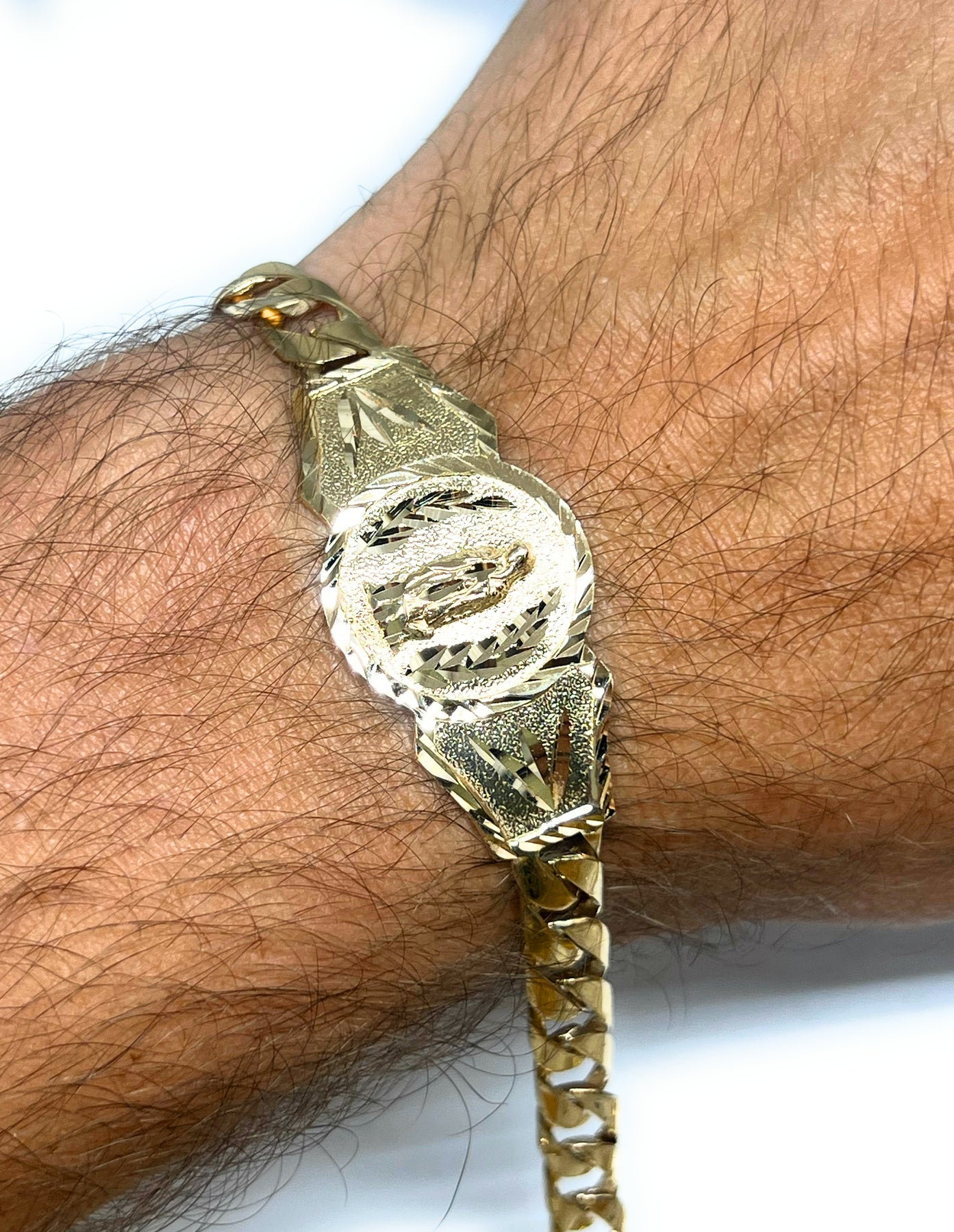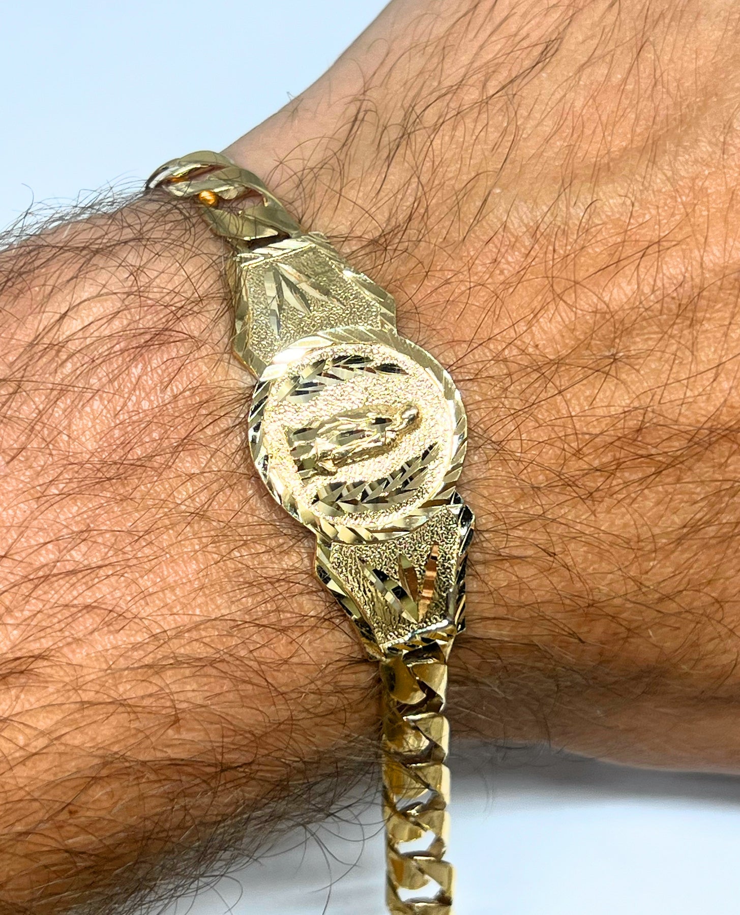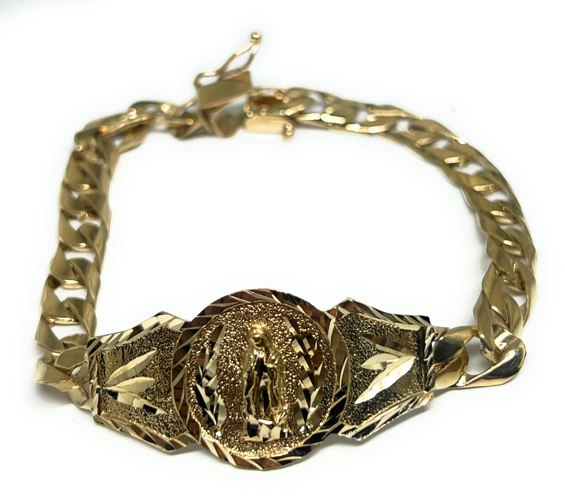 14k Solid Gold Virrgin Mary Virrgen Guadalupe Brracelet 8.5 inch 7.5mm (20g)