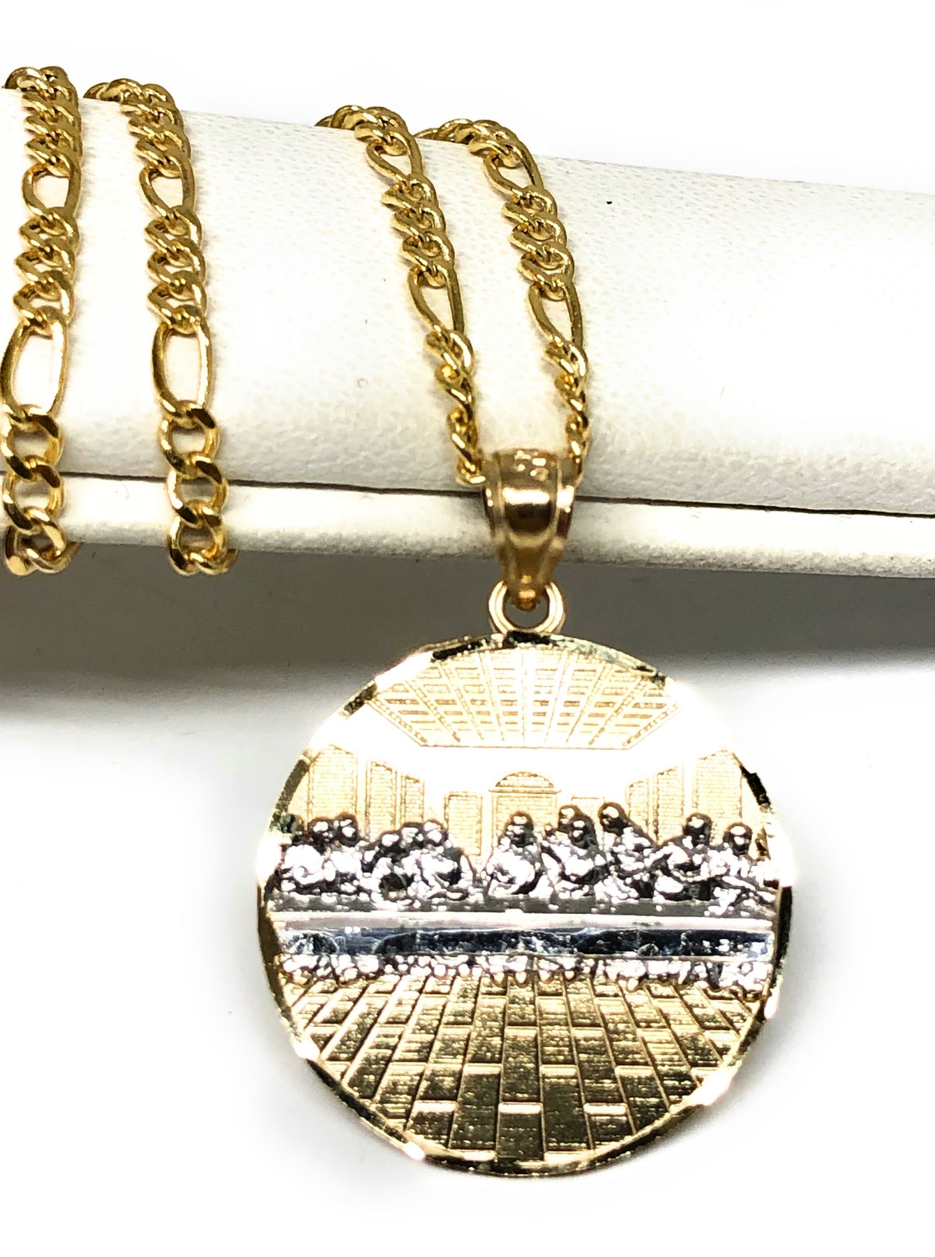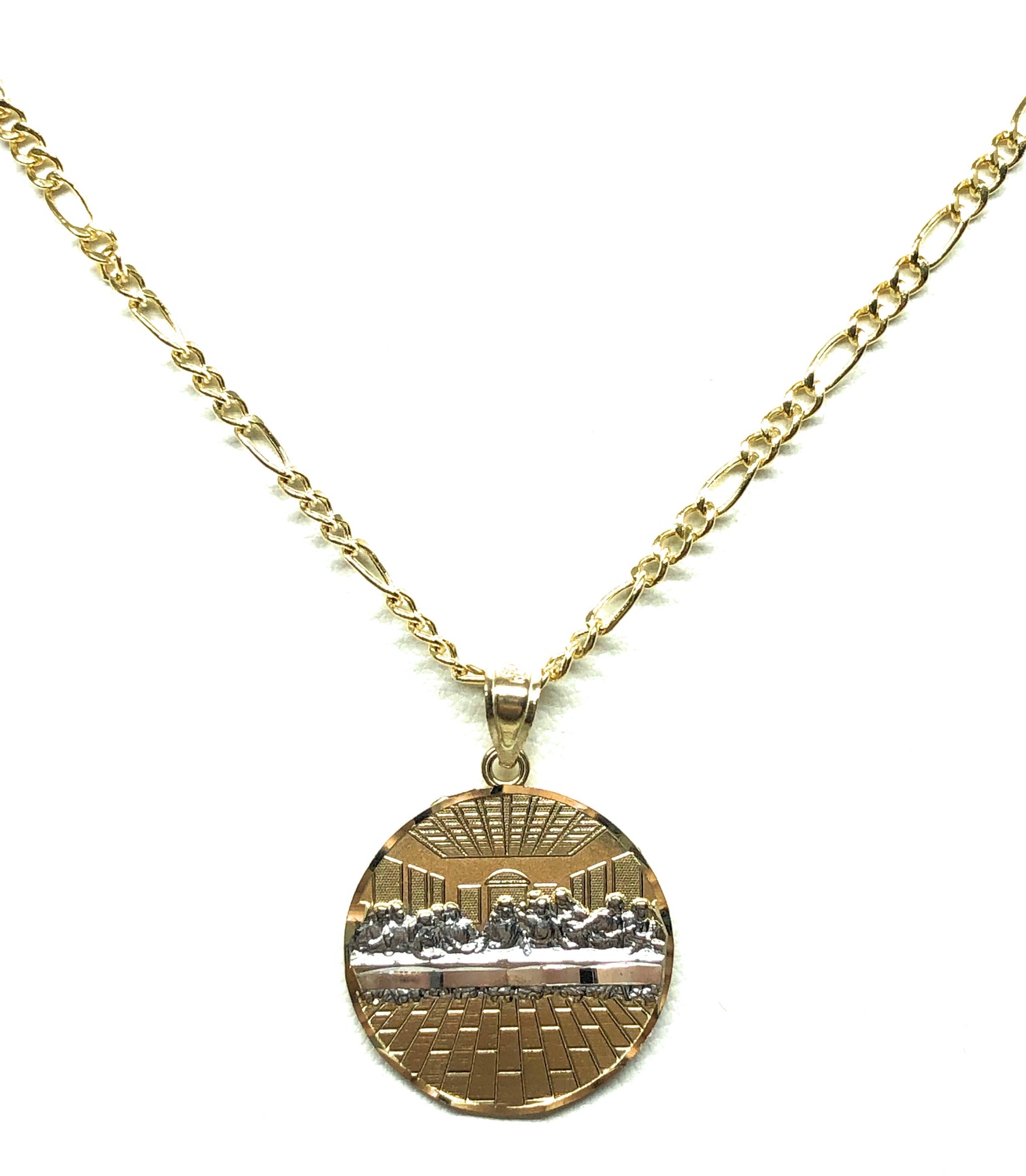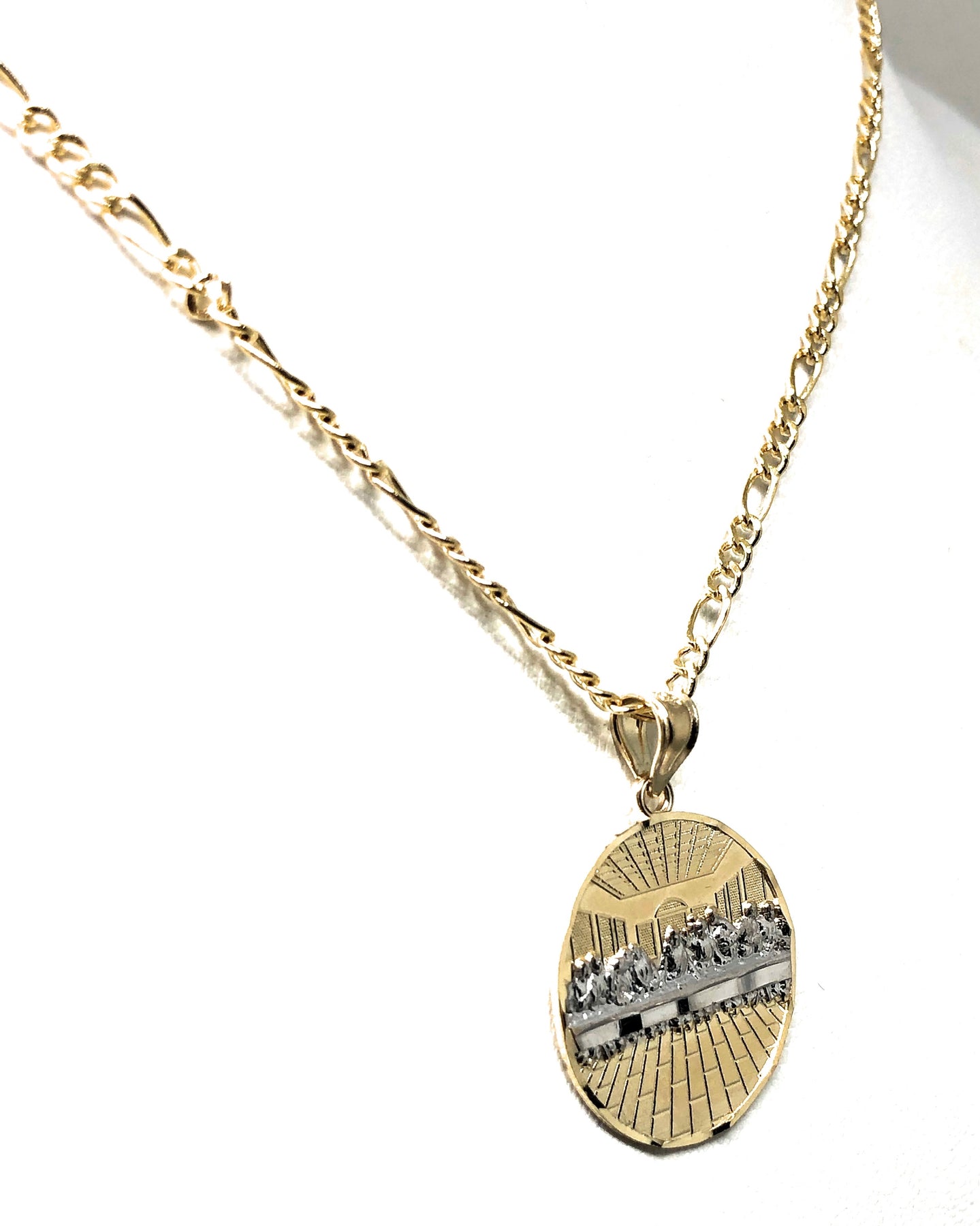 - Jesus Last supper pendants and chain and 14k solid gold guaranteed.