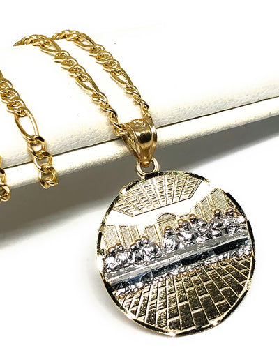 14k Solid Gold Yellow 2-Tone Jesus Last Supper Round Pendant Necklace (SM,MED,LG)
