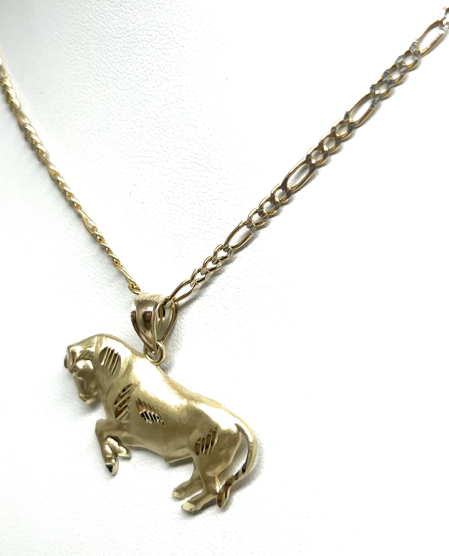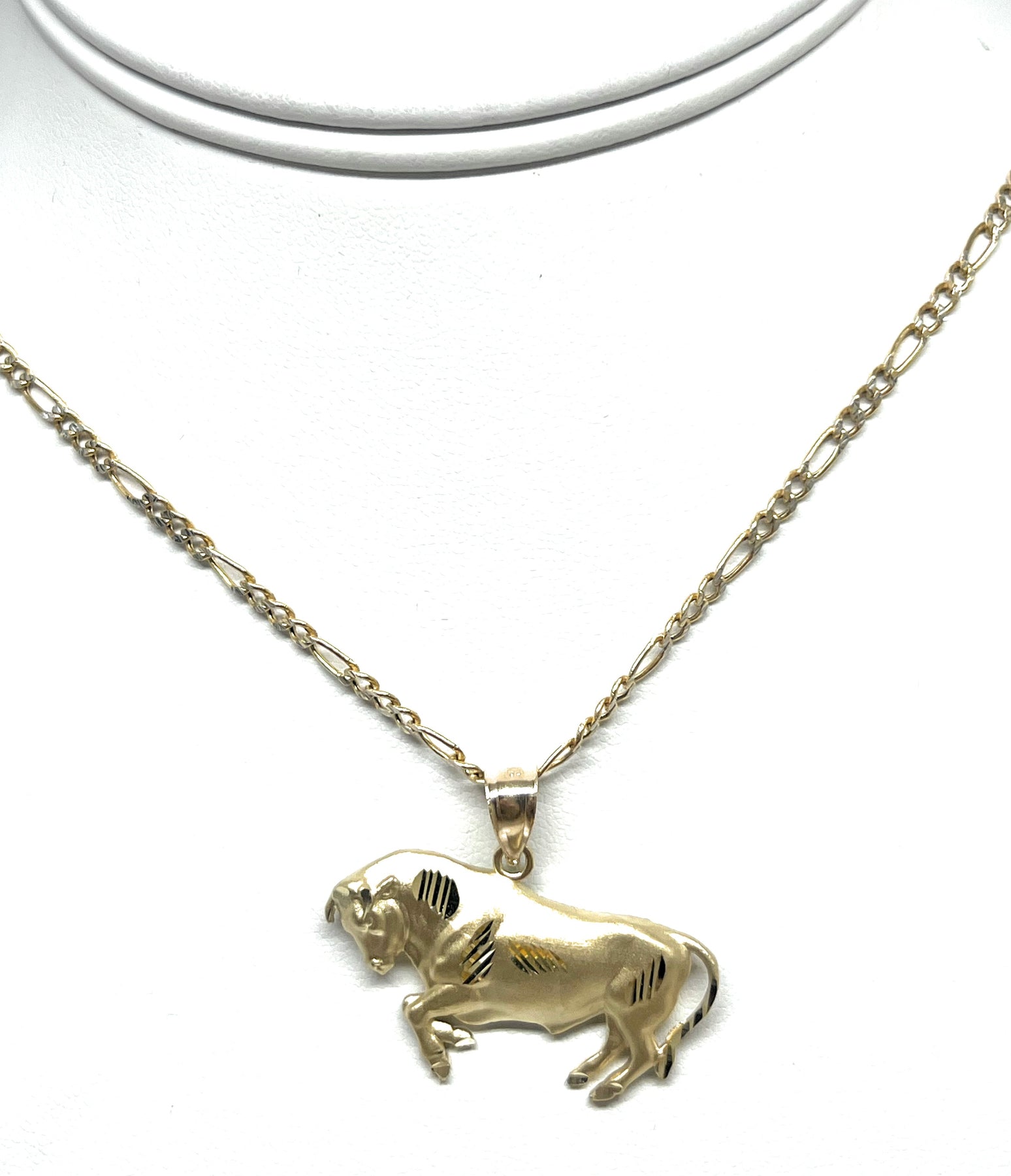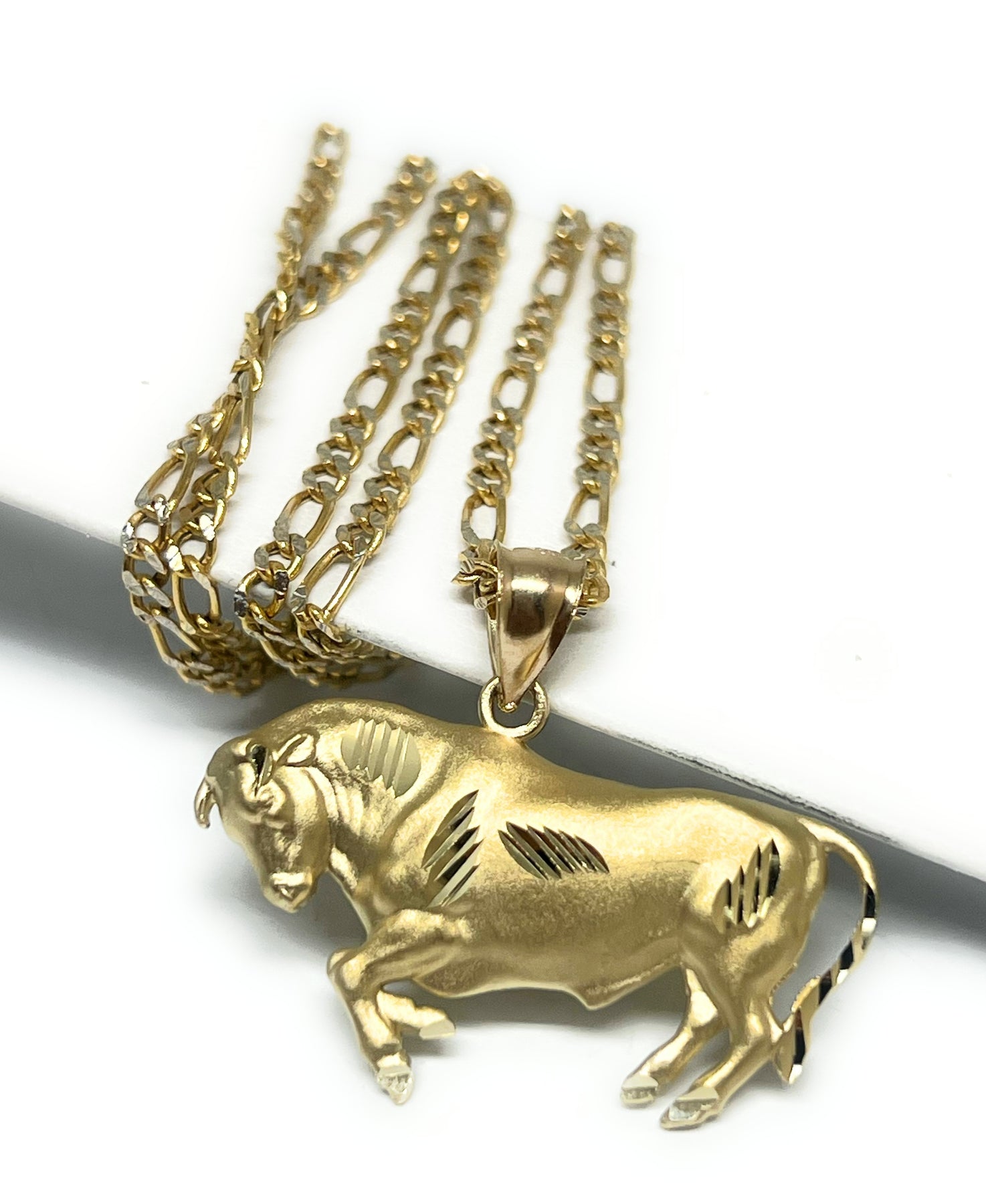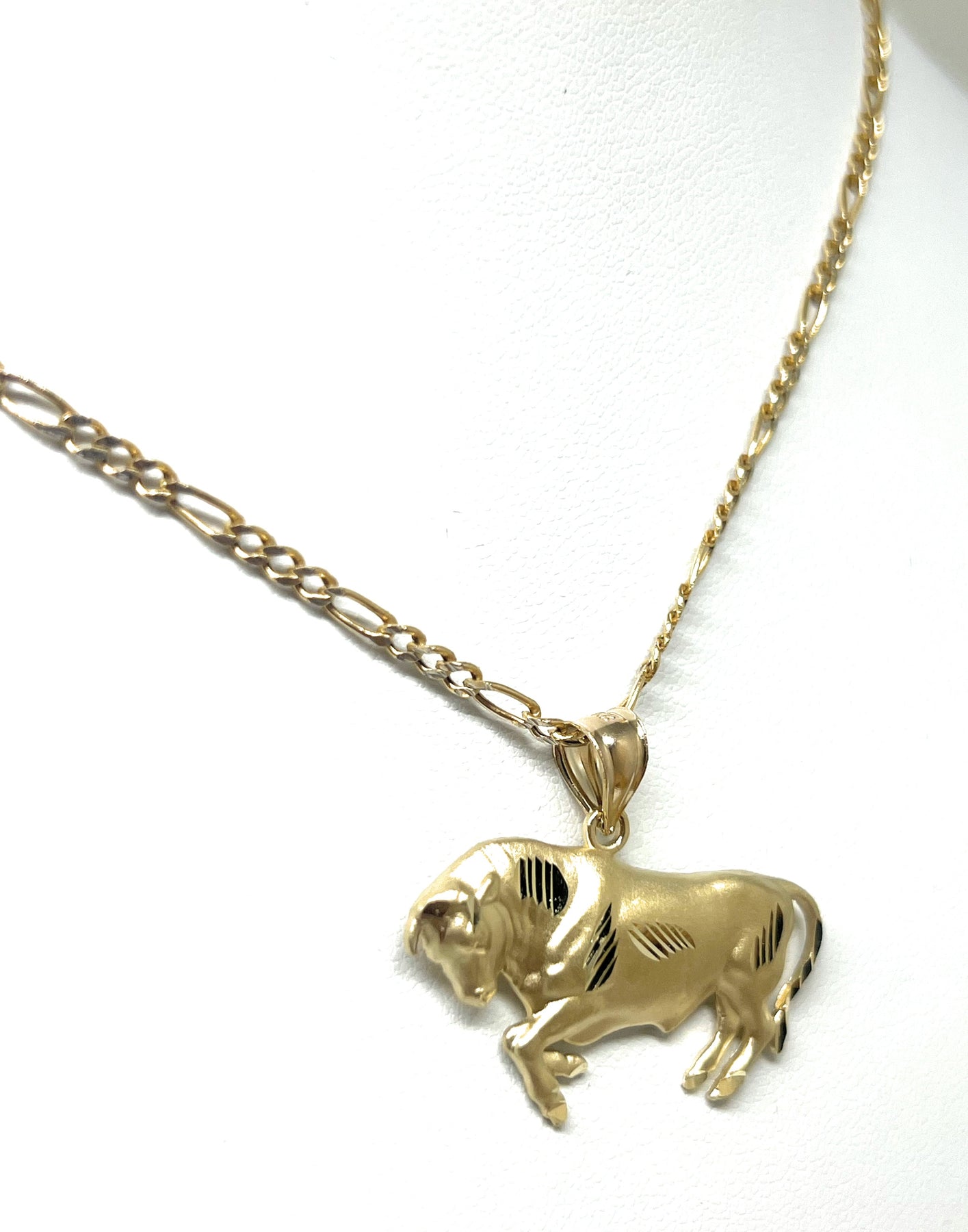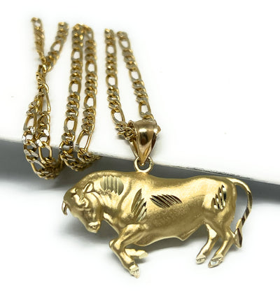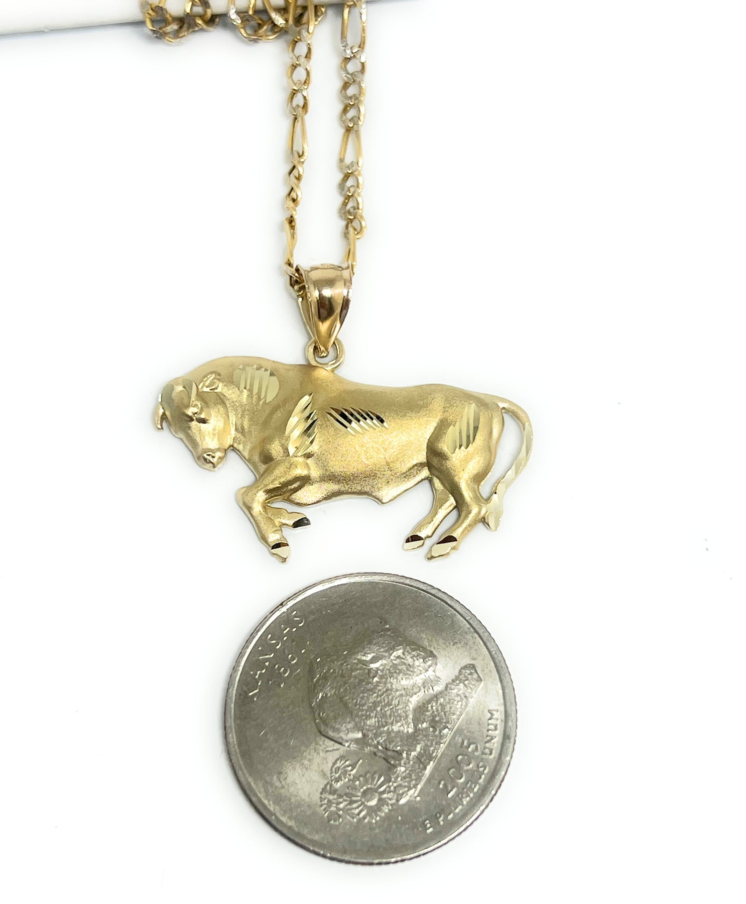 14k Solid Gold Yellow Classic BULL Pendant Necklace
