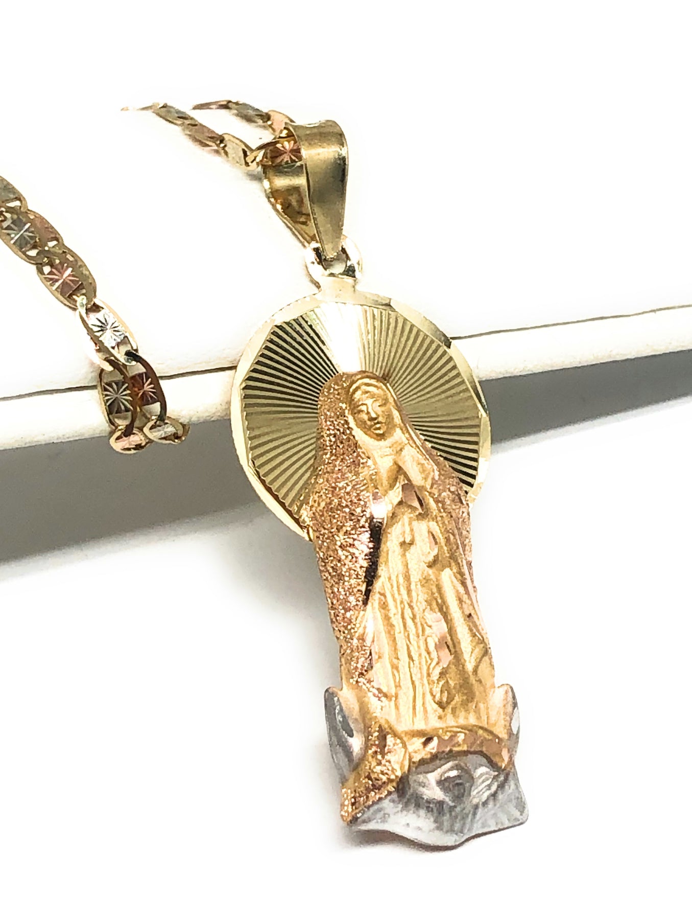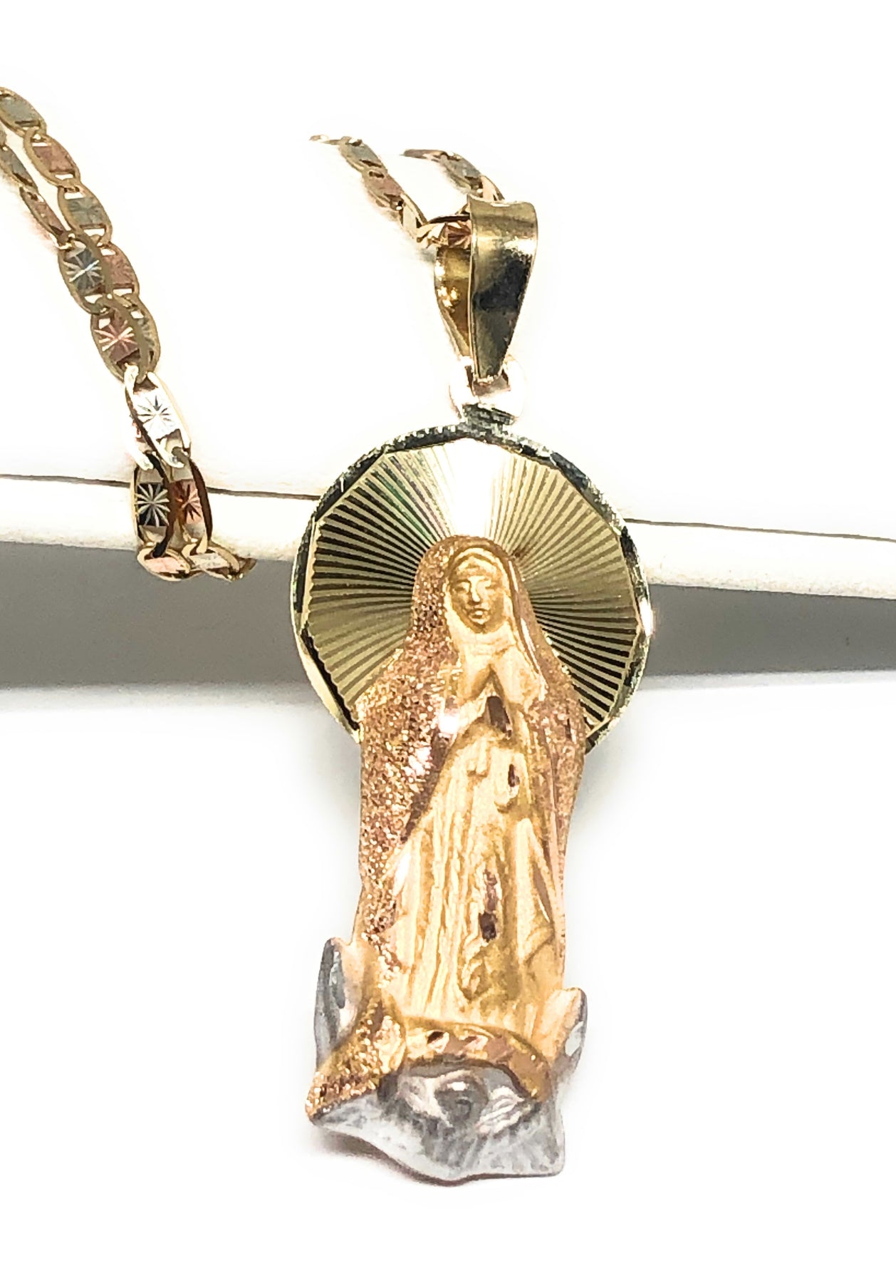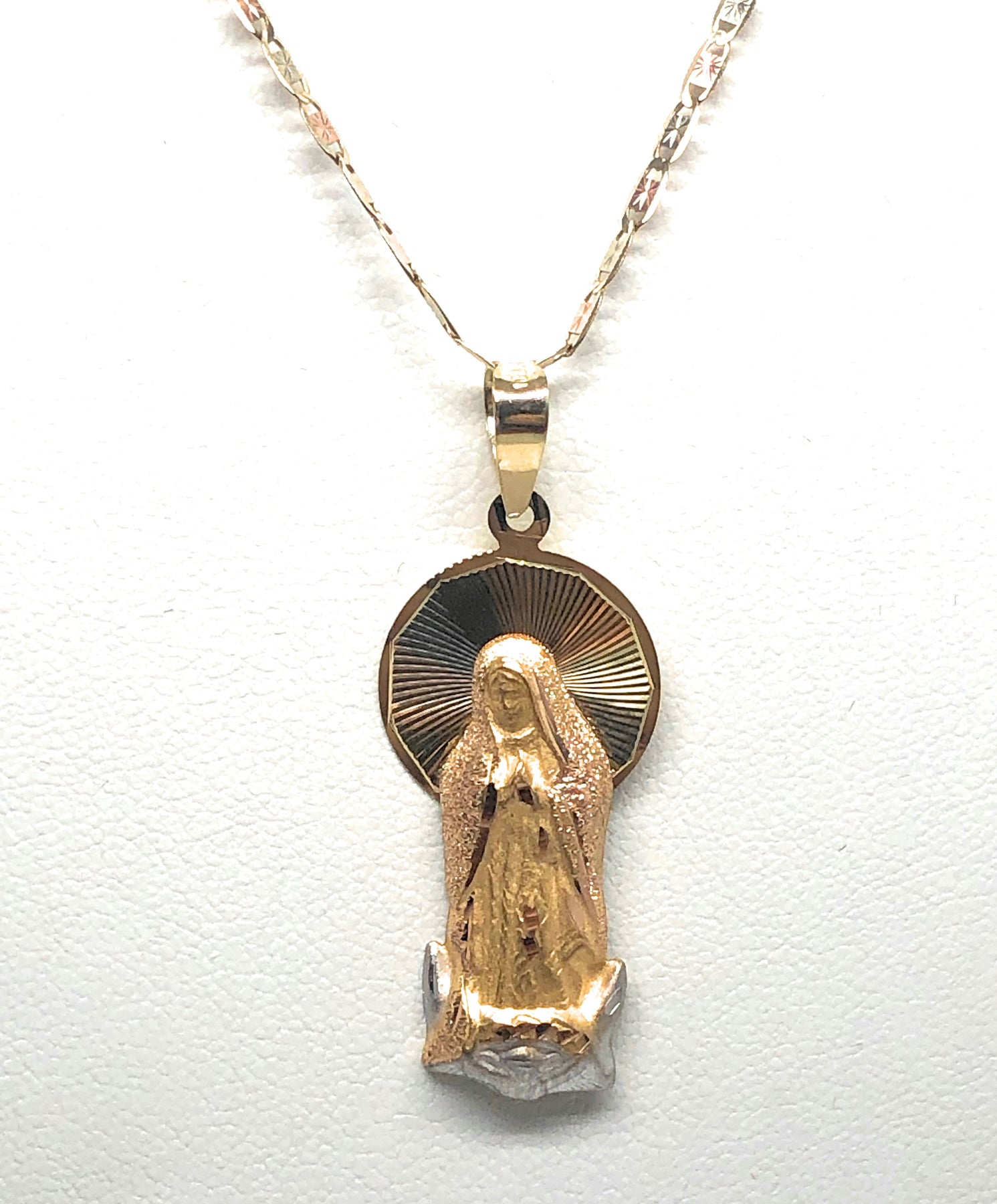 14k Solid Gold Yellow Classic Virrgin Mary Pendant Virrgen Guadalupe W/ Chain Options
