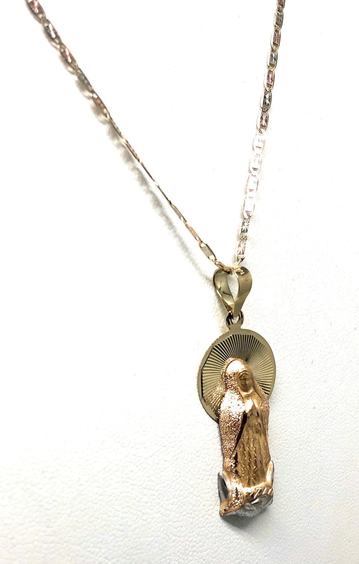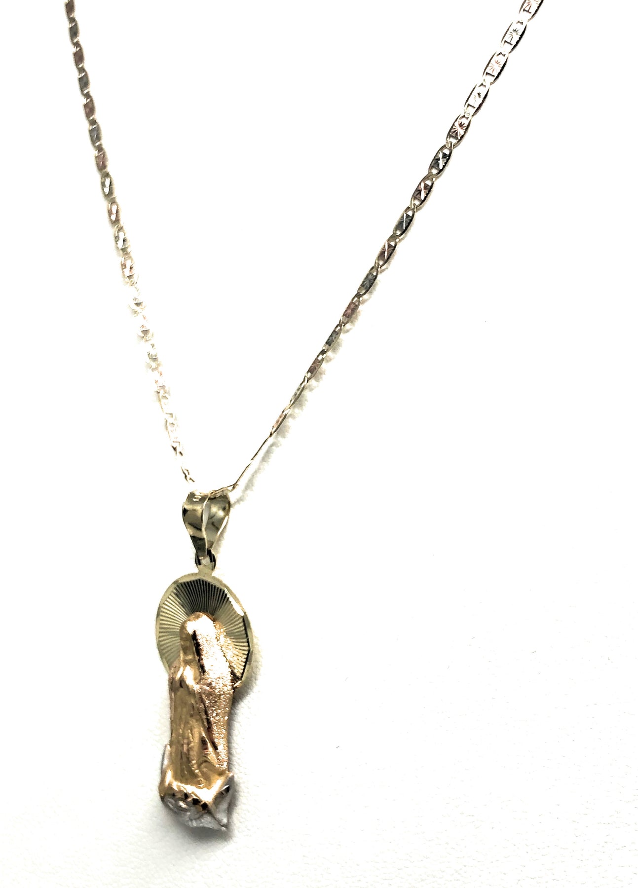 - Virgin Mary pendant and chain and 14k solid gold guaranteed.