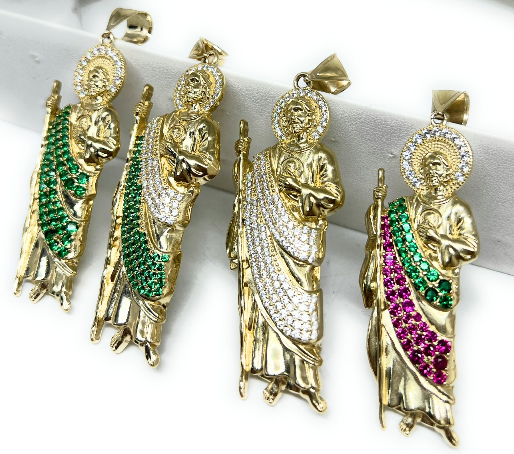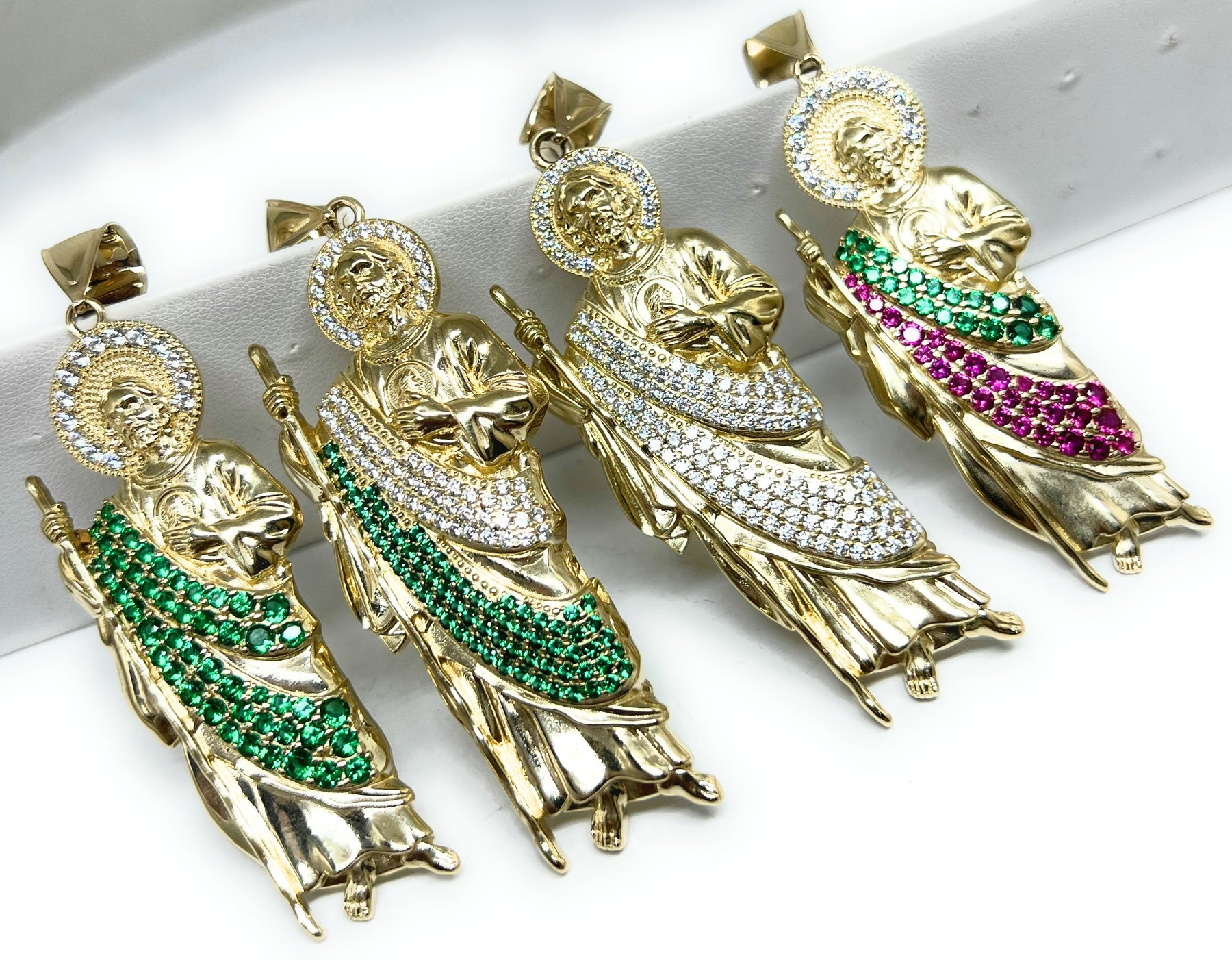 14k Solid Gold Yellow CZ Saan Judas Saaint Jude BIG XL 3 INCH Pendant