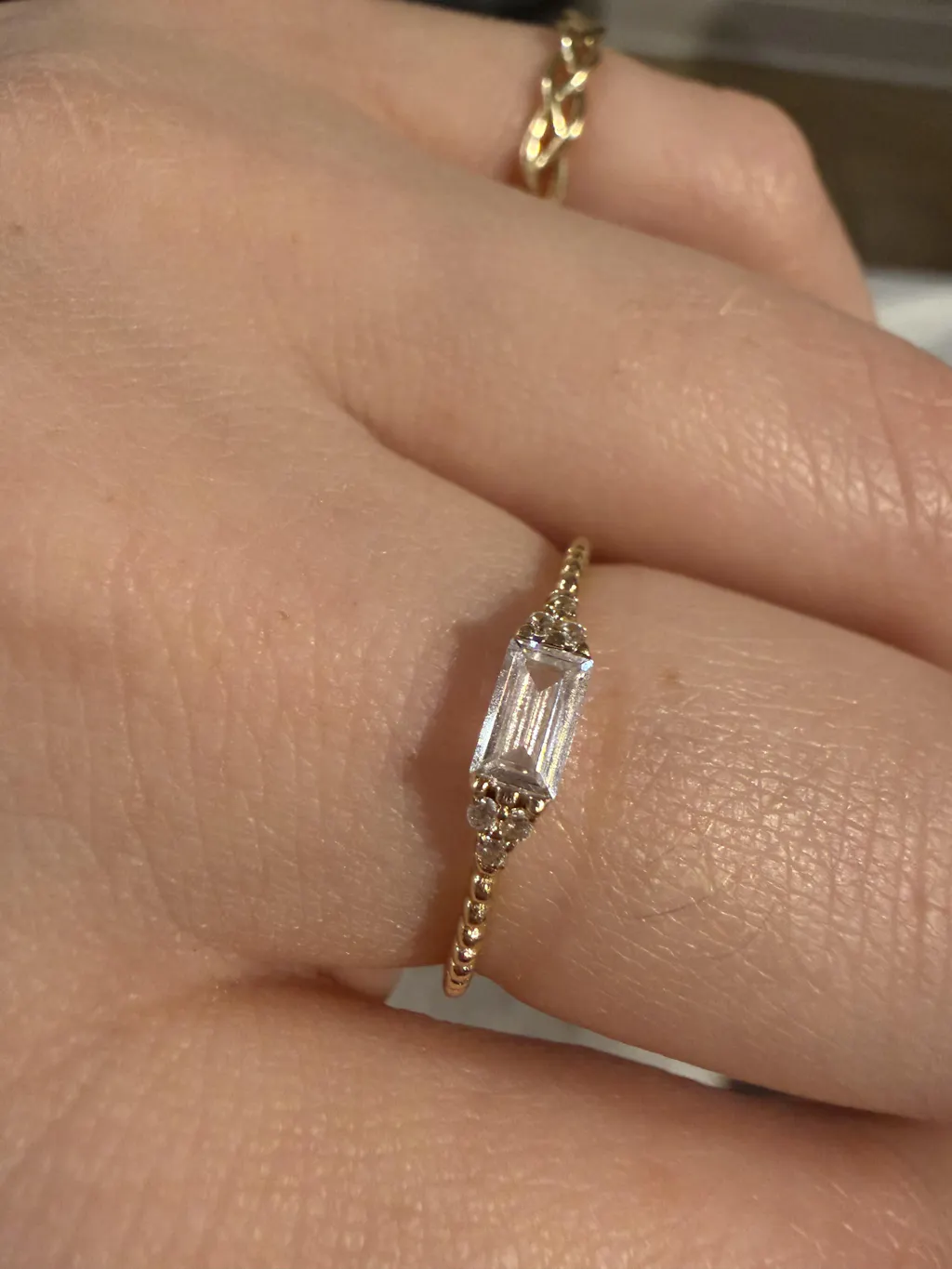 I got a recommendation for this website from my friend, and they are the real deal! I ordered 3 10-14k gold rings, and I love them. This baguette one is my favorite. Great quality solid gold, the cubic zirconia is crystal clear, and the design is unique. Can’t wait to buy more!