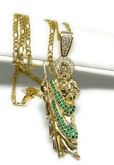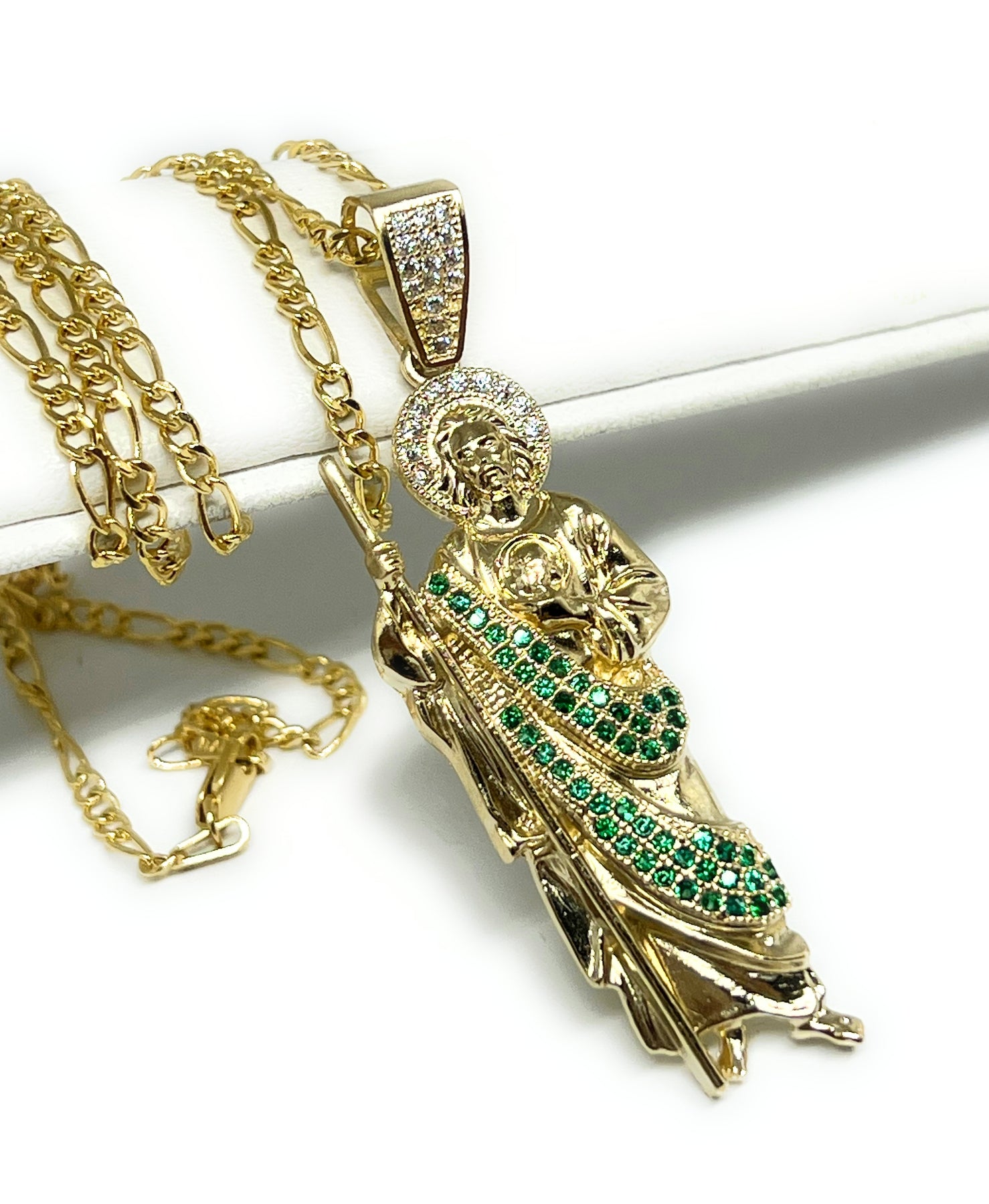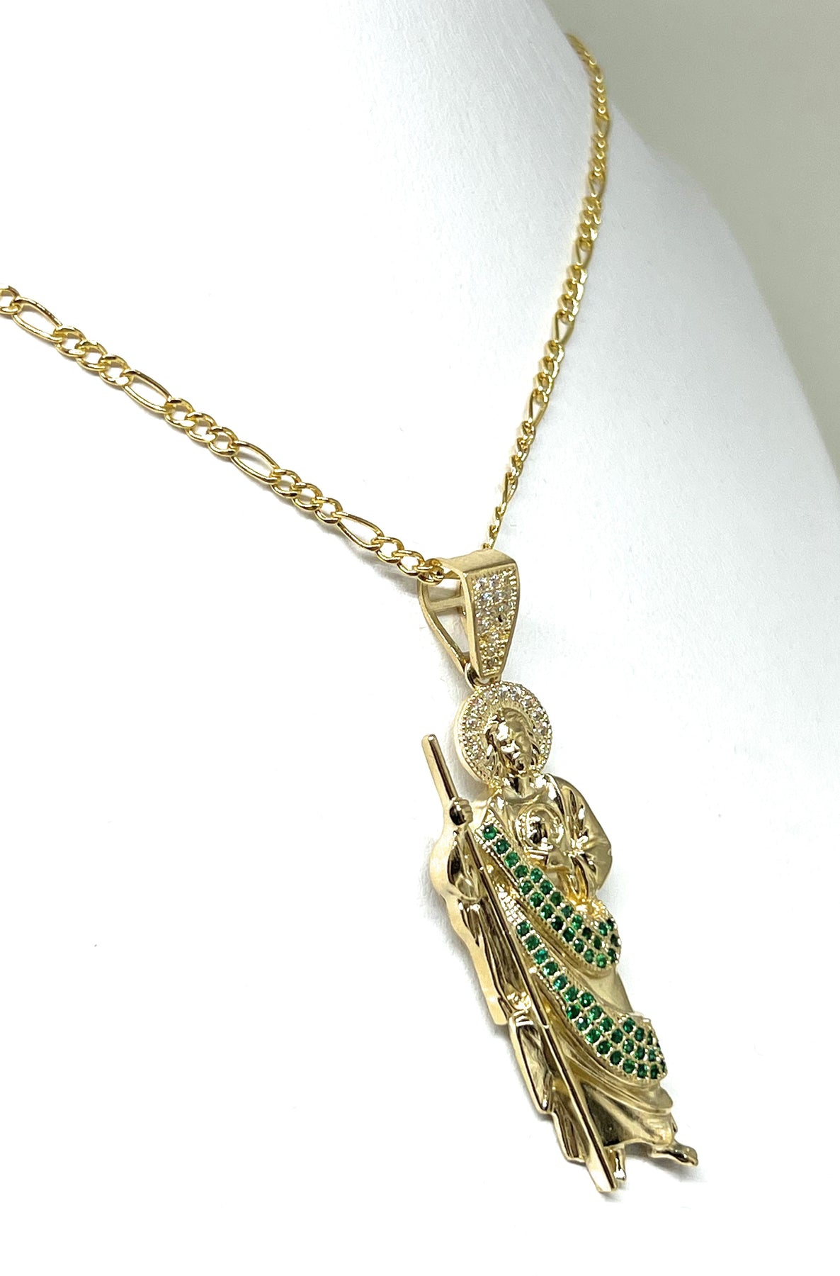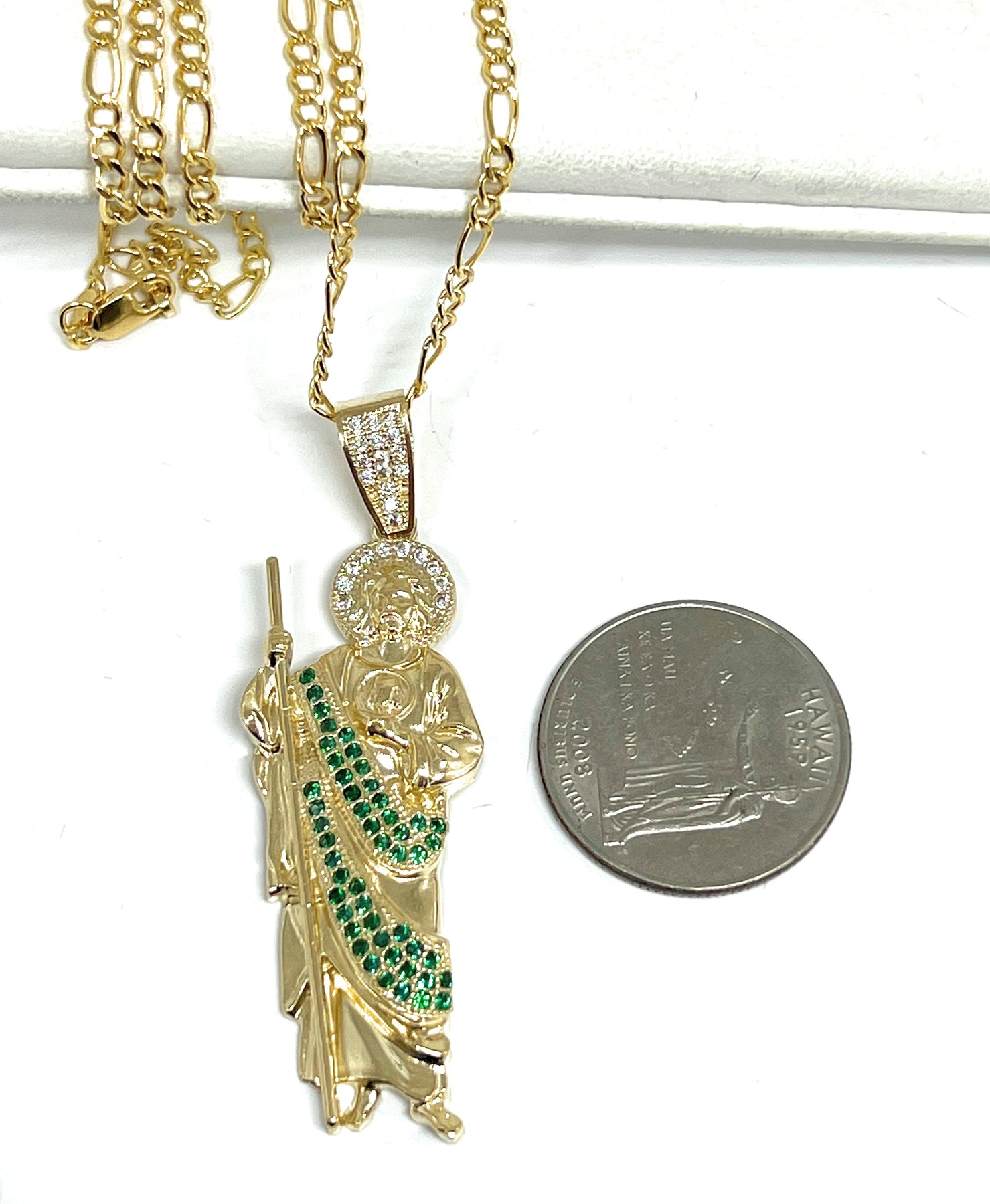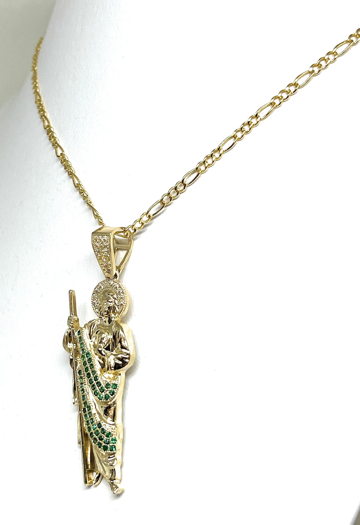 14k Solid Gold Yellow Green, White CZ Saan Judas Saaint Jude Pendant with Chain Optional