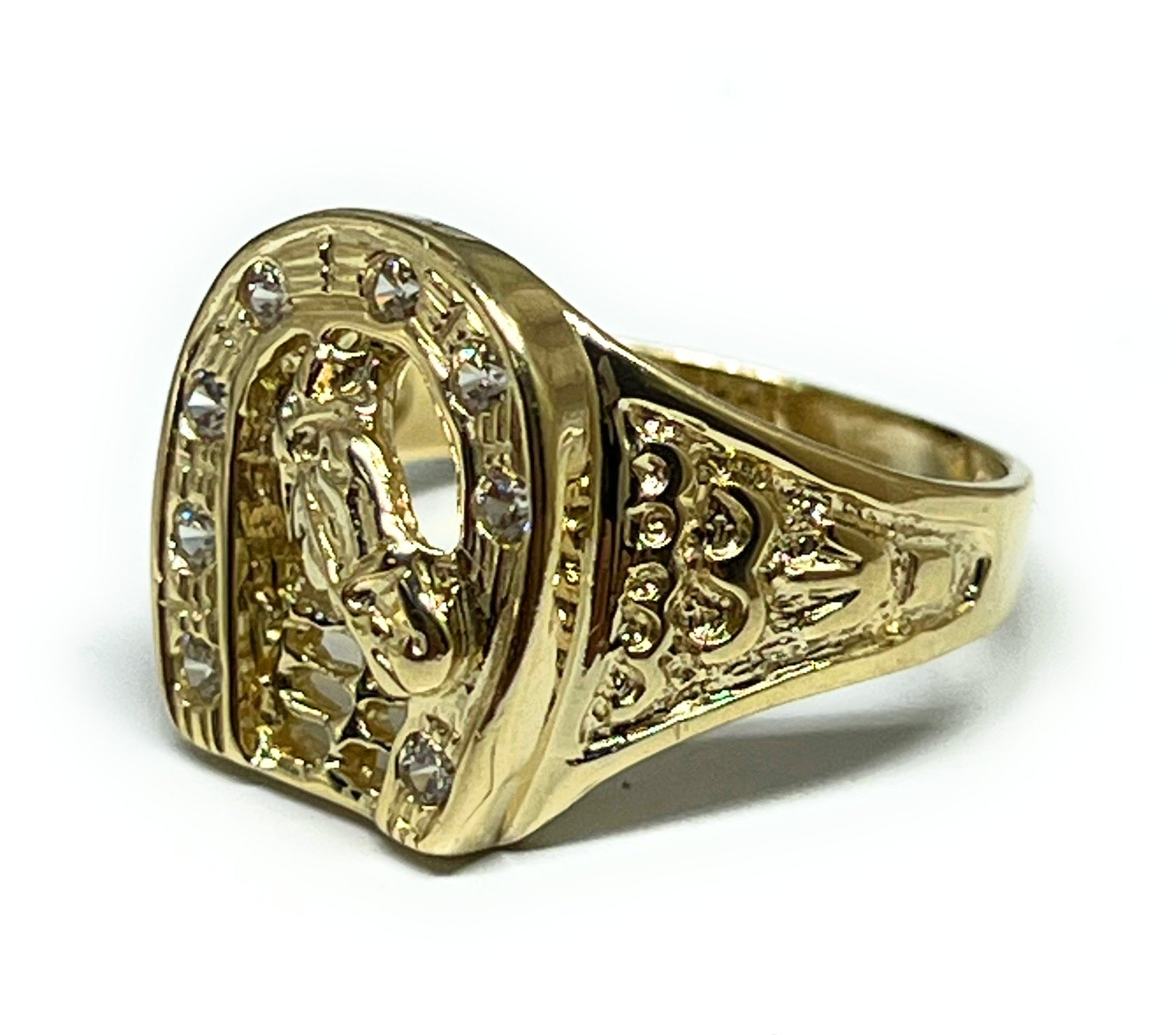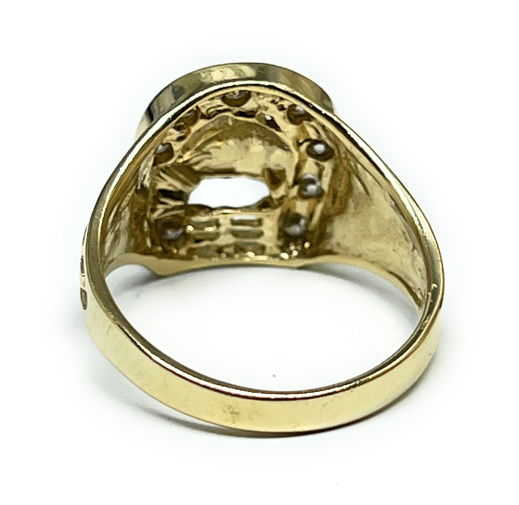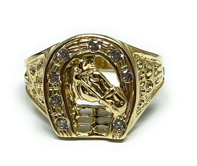 14k Solid Gold Yellow Horse Horseshoe CZ Ring (7.2g)