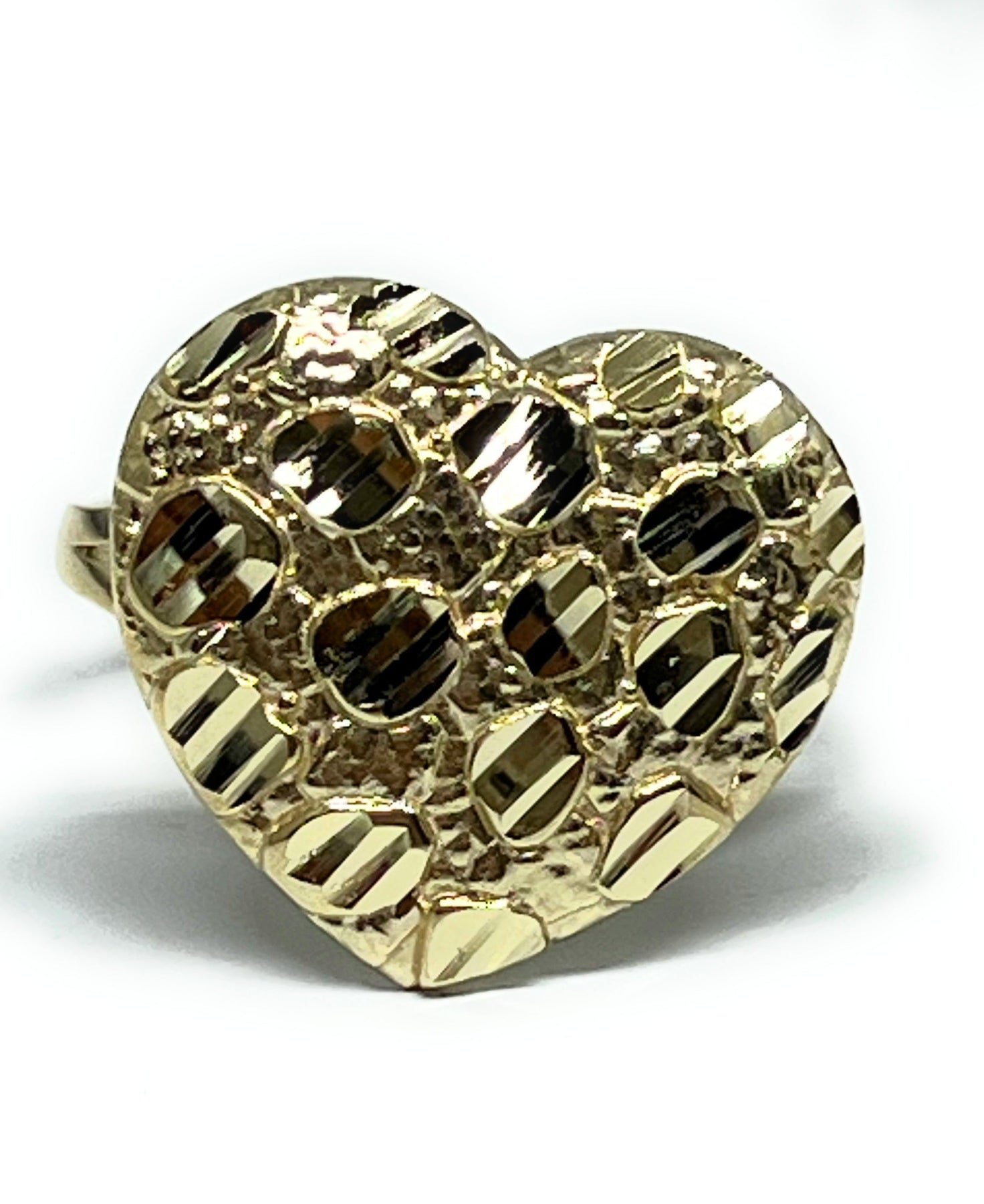 14k Solid Gold Yellow PUFFY Nugget Heart Ring (LG)