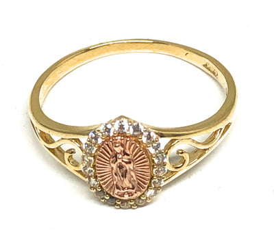 14k Solid Gold Yellow & Rose Gold Virrgin Mary CZ Ring
