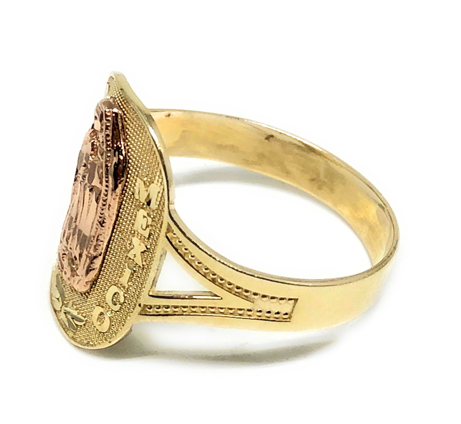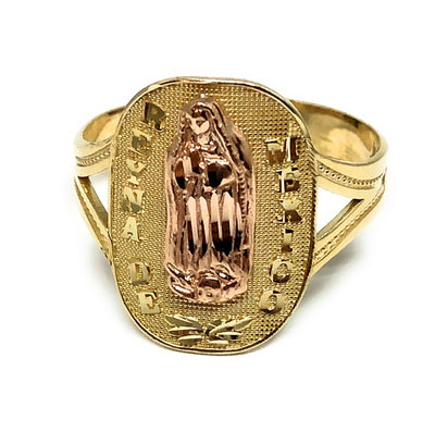 14k Solid Gold Yellow & Rose Gold Virrgin Mary "Reyna de Mexico" Ring