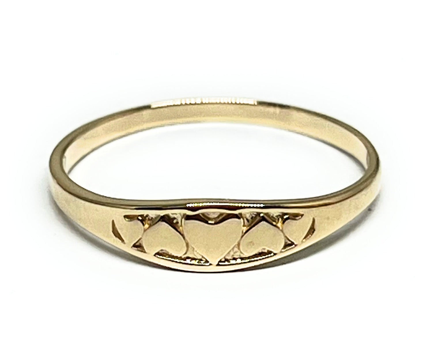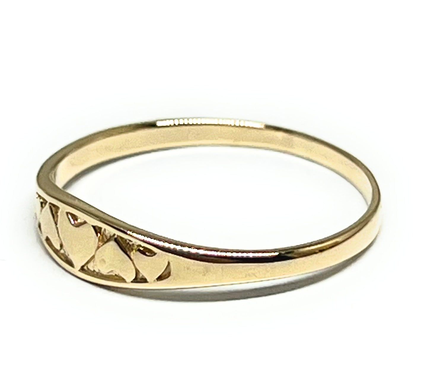 14k Solid Gold Yellow Small Dainty Hearts Band Ring (FC 312)