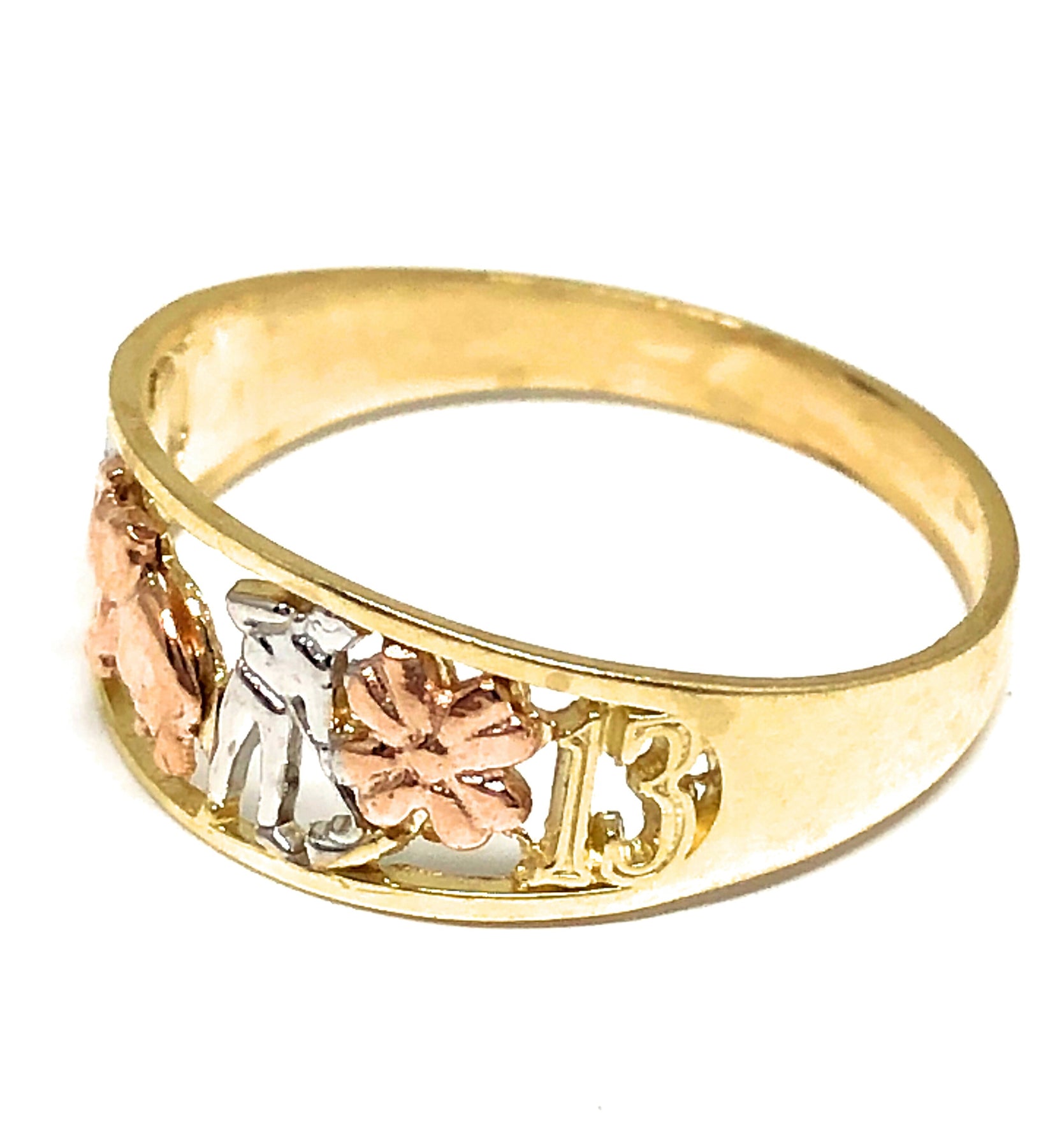 14k Solid Gold Yellow Tri-Color Lucky Symbols Ring Suerte