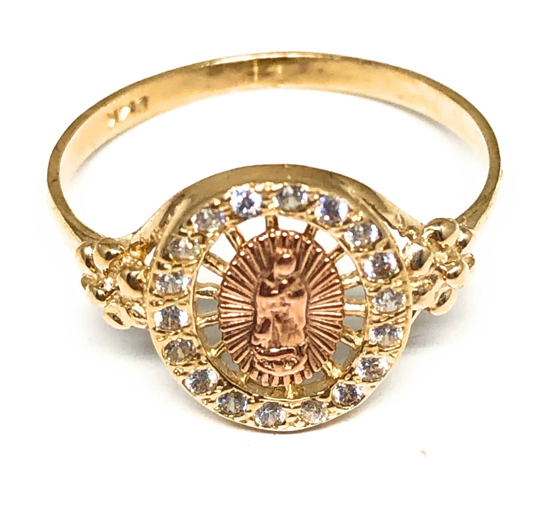 - Yellow & Rose Gold Virgin Mary CZ Ring 14k solid gold guaranteed.
