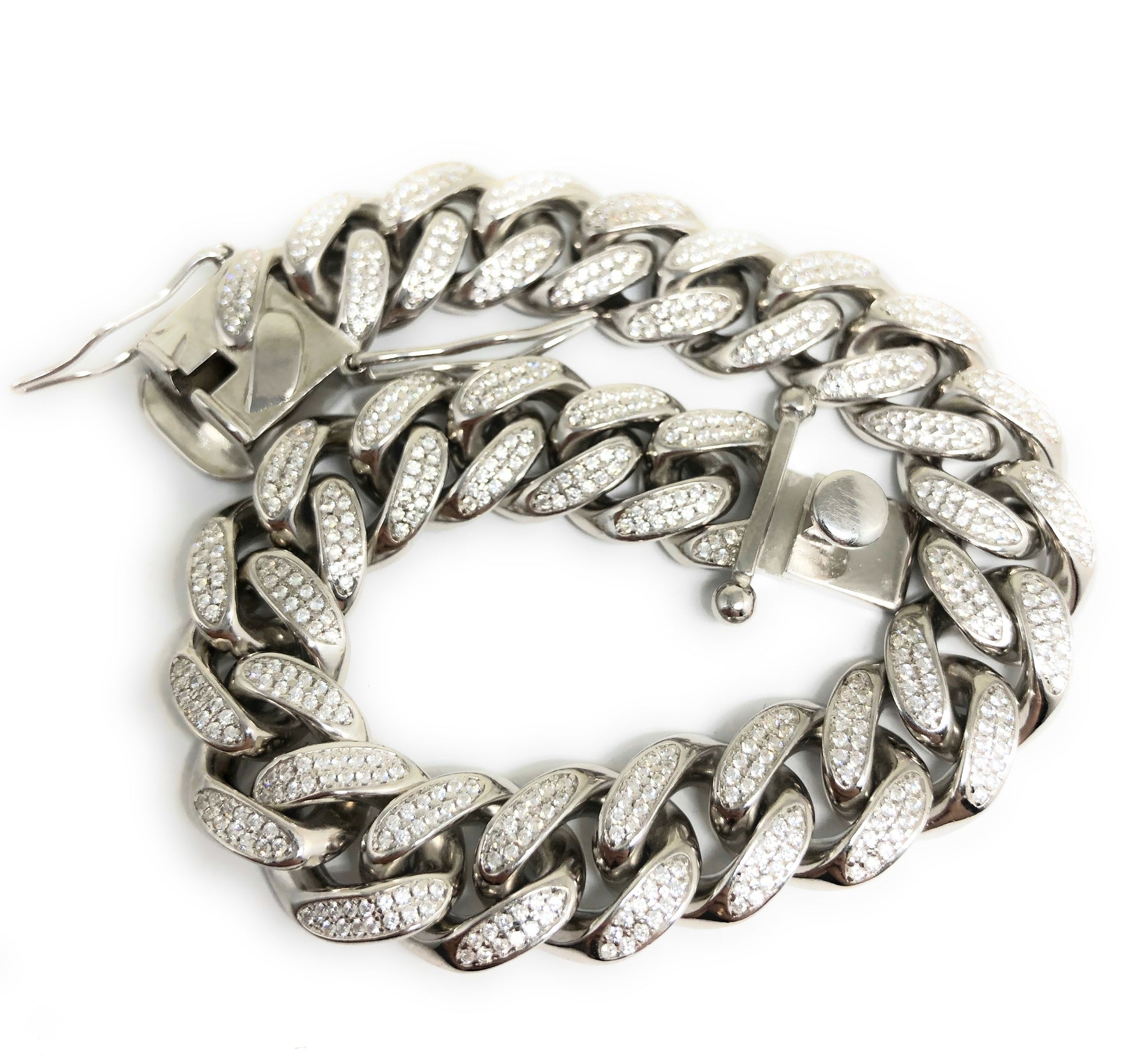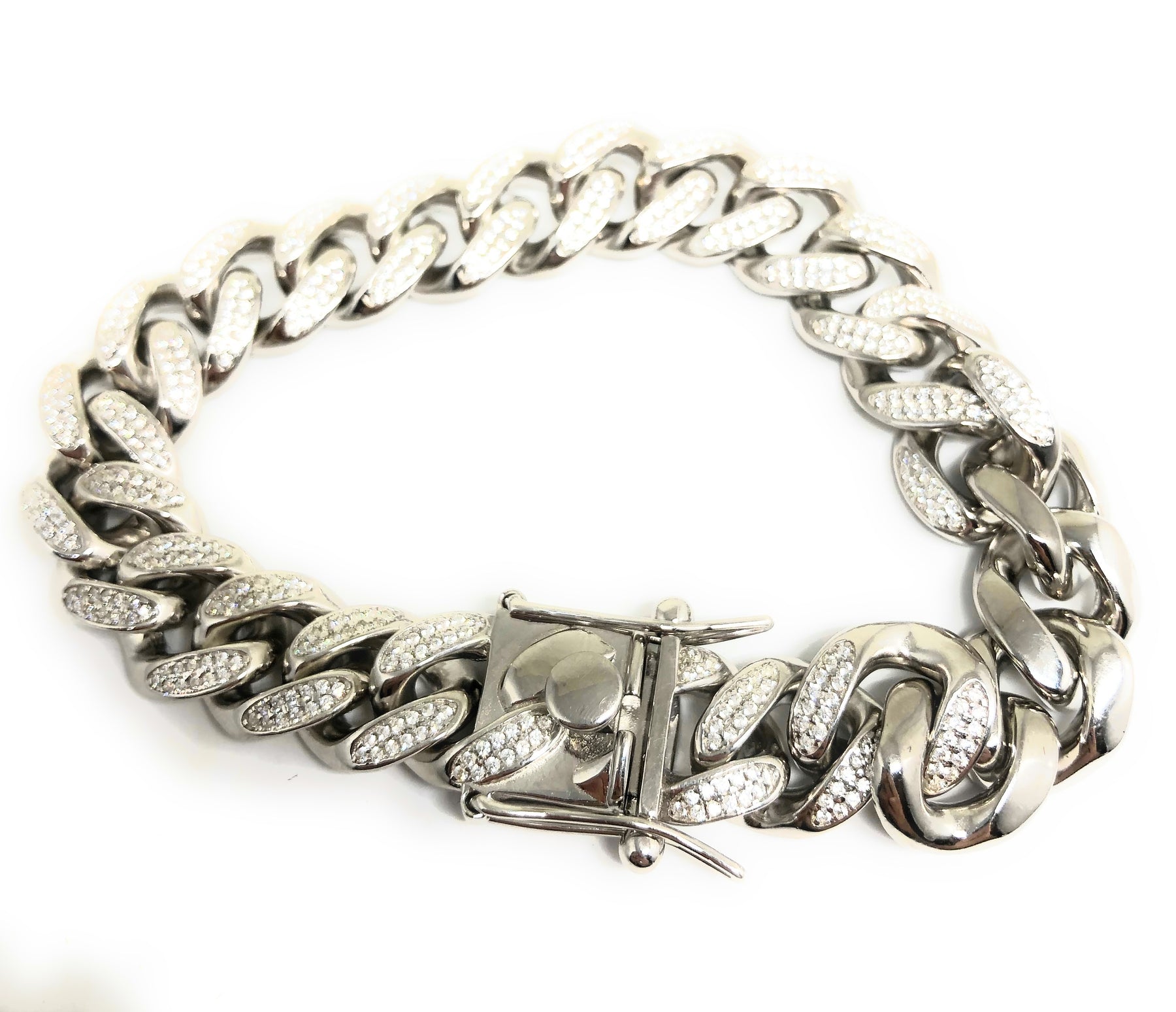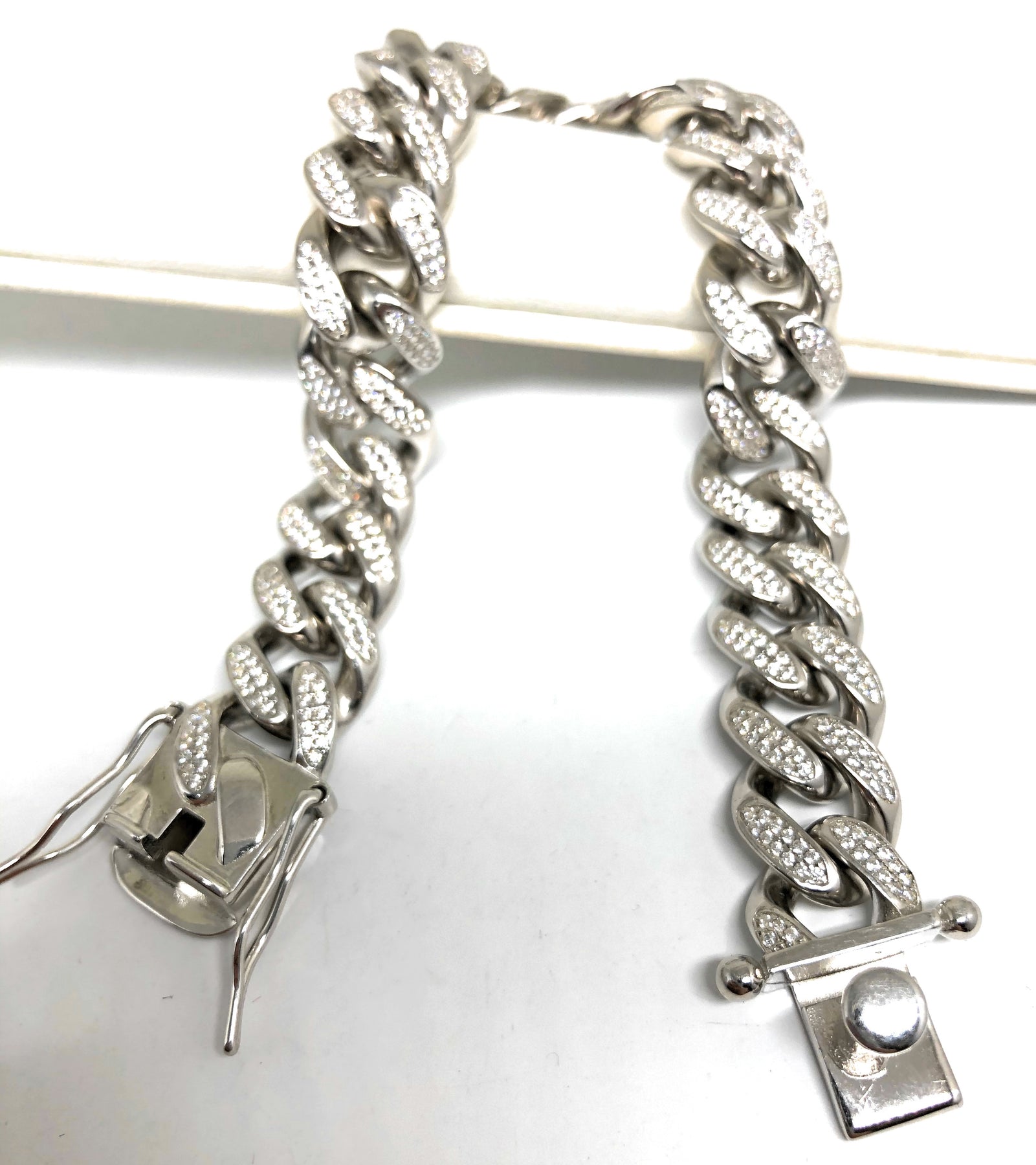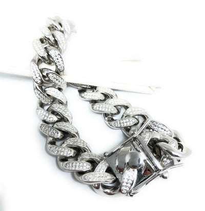 .925 Silver Icced Out CZ Big Cuban Link 8-9 inch 12mm width Braccelet