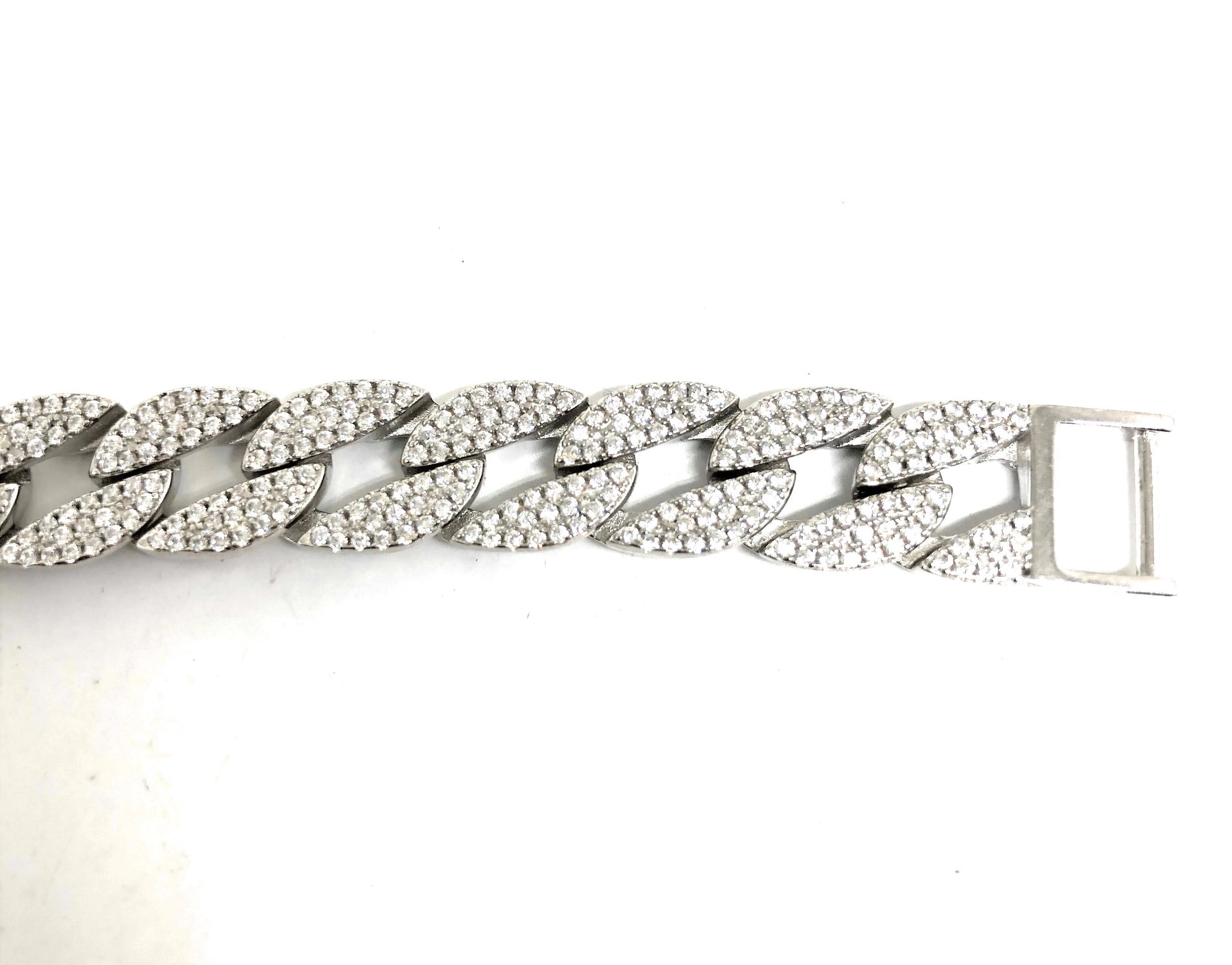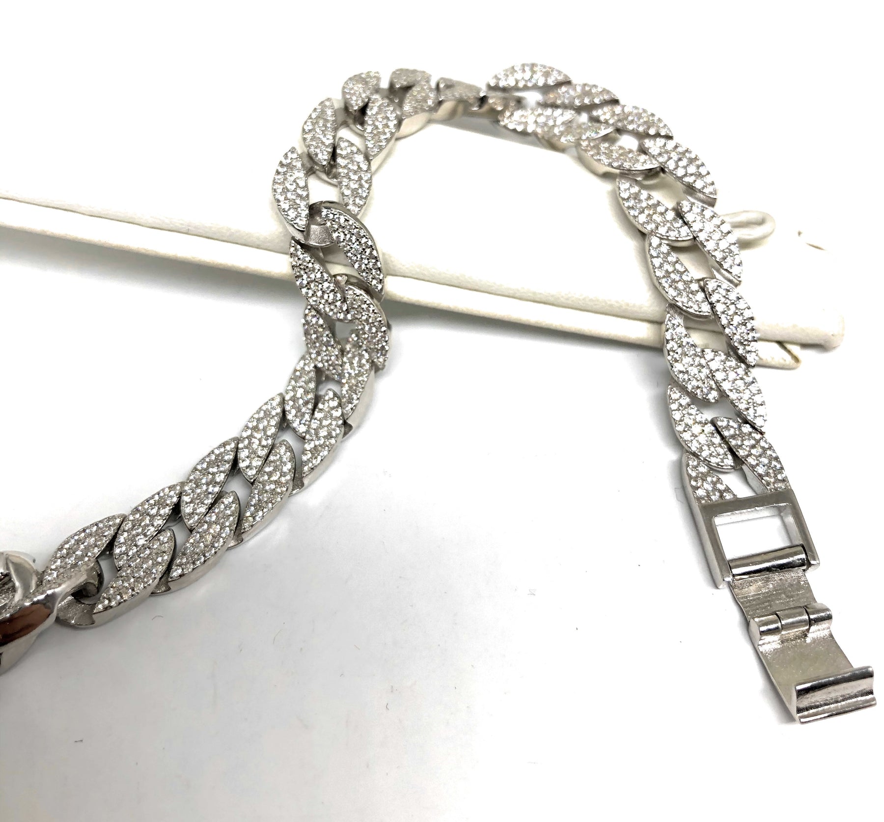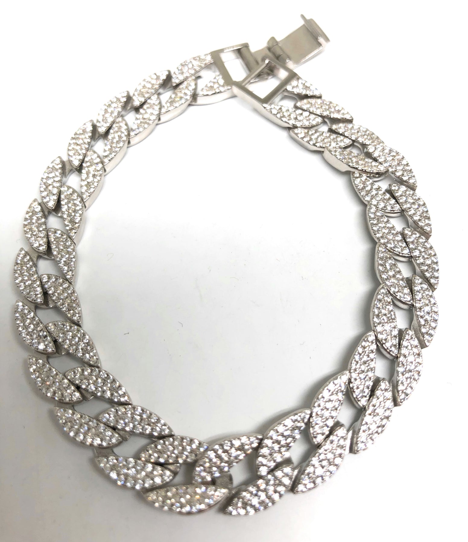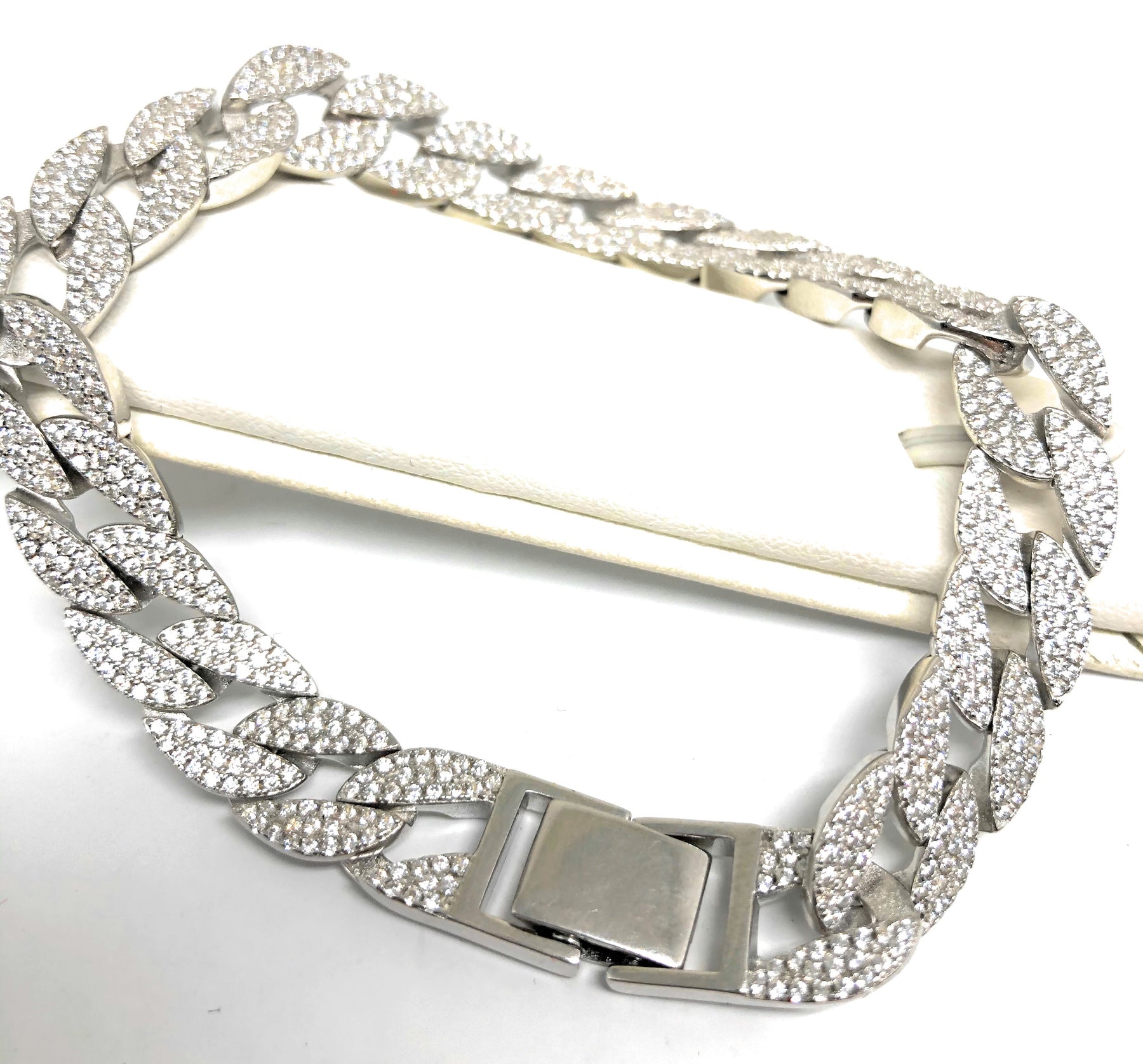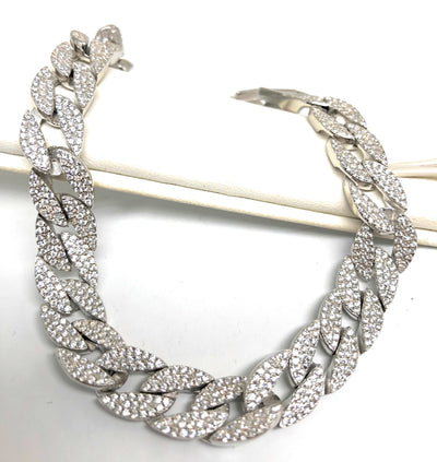 .925 Silver Icced Out CZ Cuban Link 8 inch 9.5mm width Braccelet