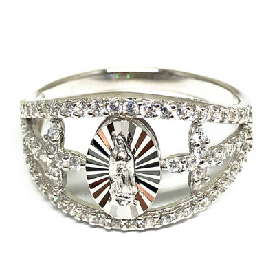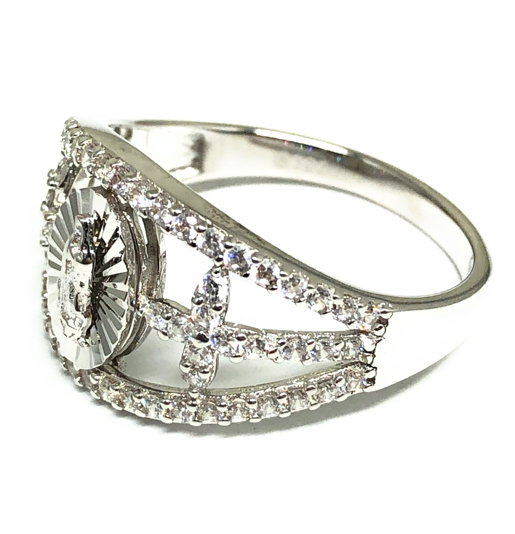 .925 Silver Viirgin Mary Virrgen Guadalupe Cubic Zirconia Cross Ring